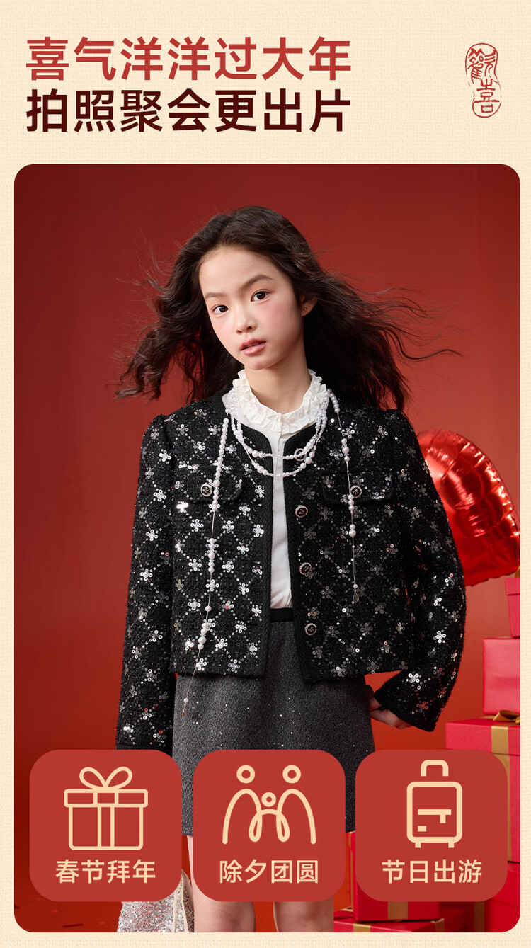 栀了成长记童装女童红色可爱亮片套装2025冬季儿童新年加绒两件套 红色 套装 100 cm