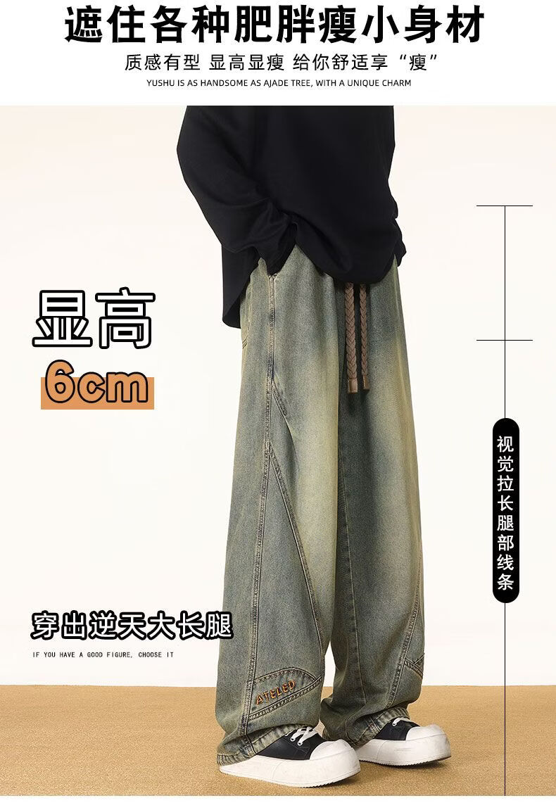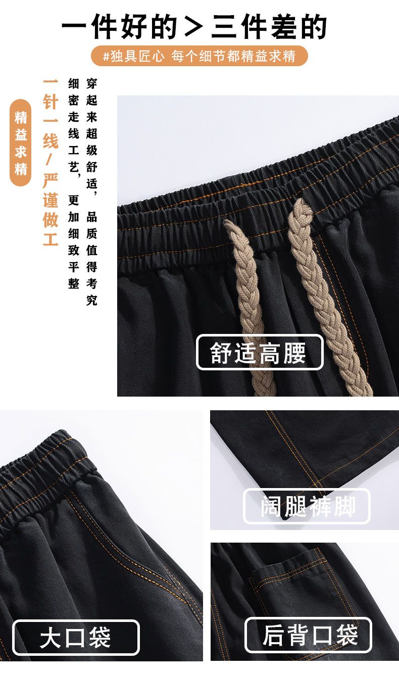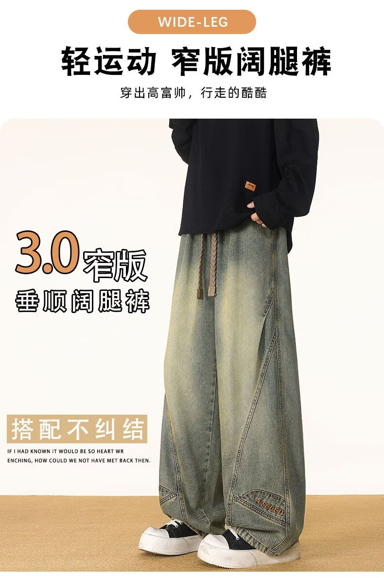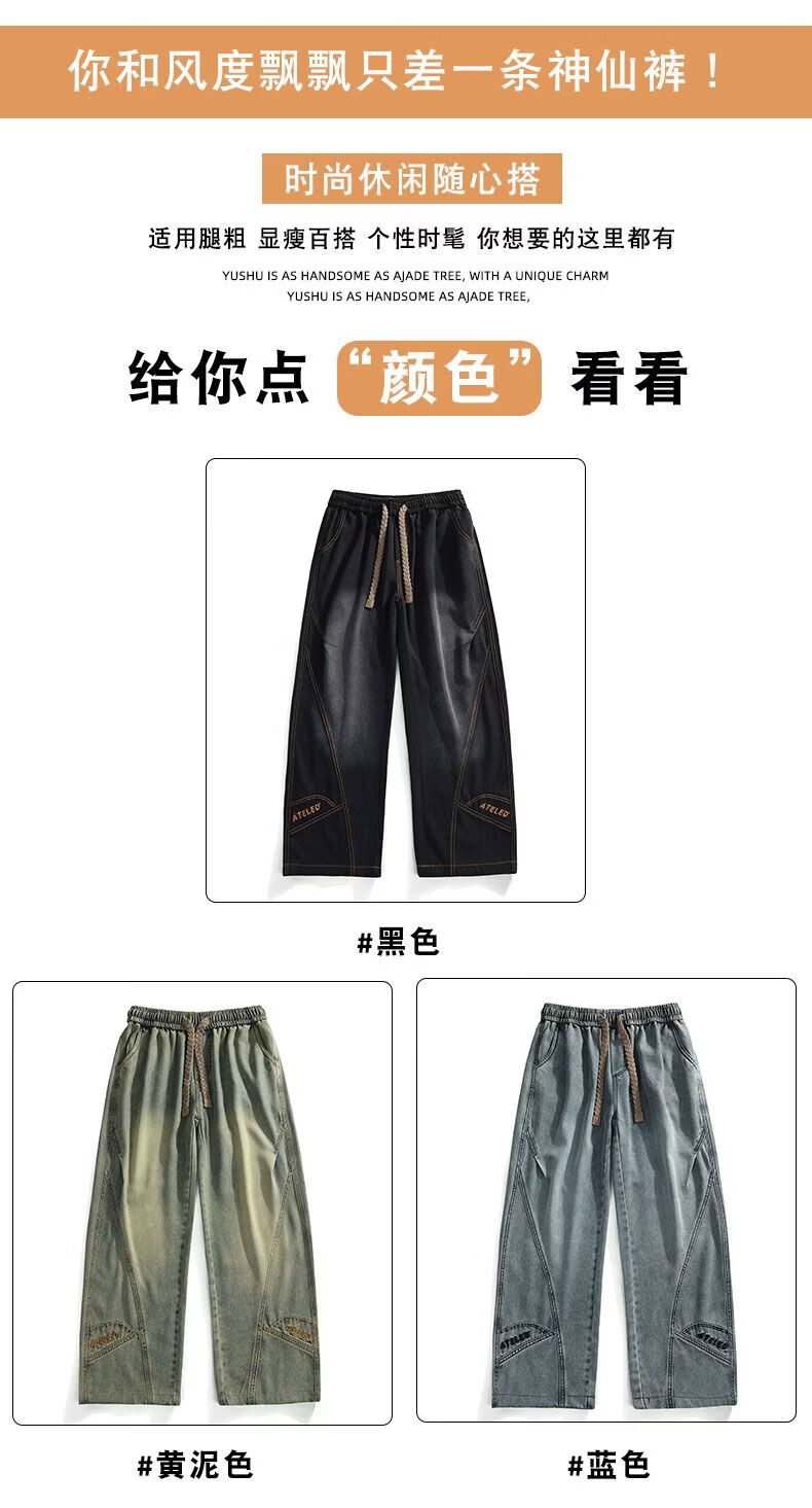 啄木鸟阔腿弯刀牛仔裤男款秋冬季加绒美式直筒休闲长裤加肥加大码裤子男 黑色 L