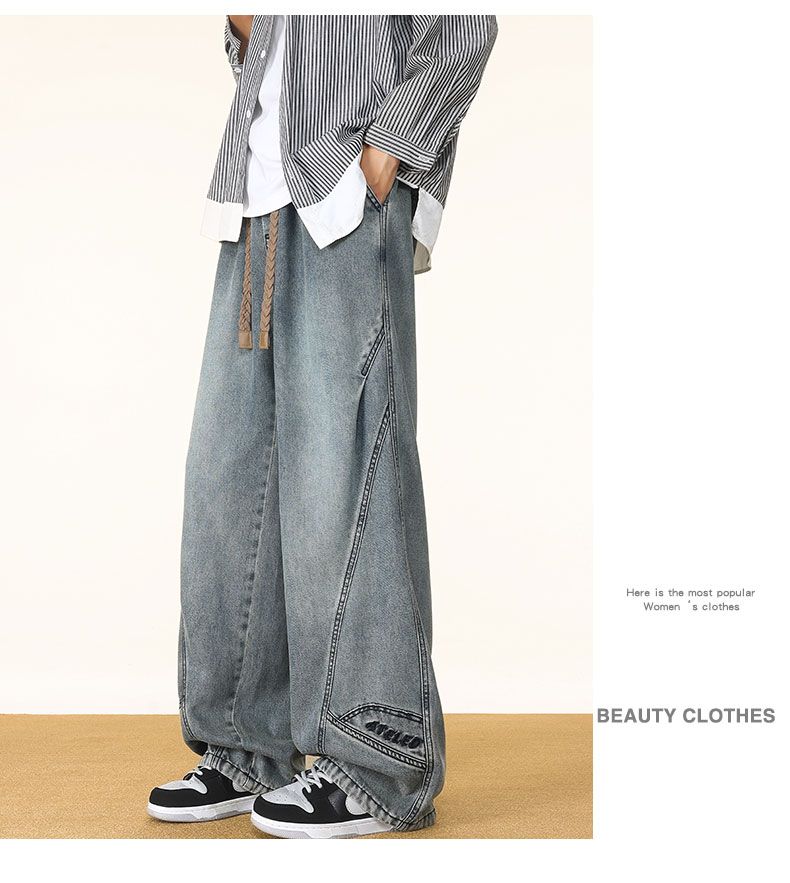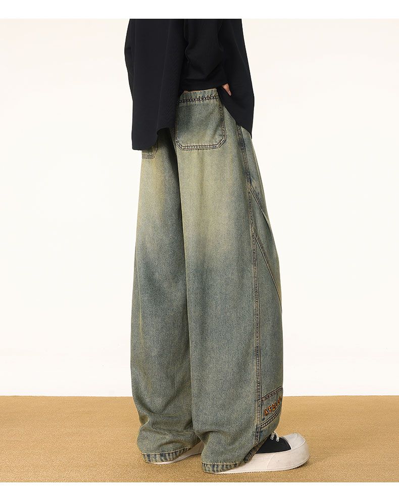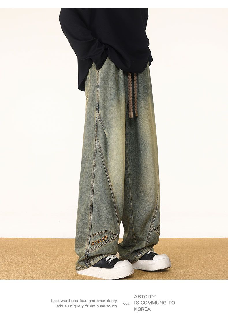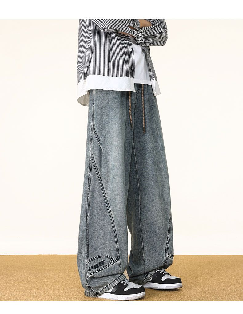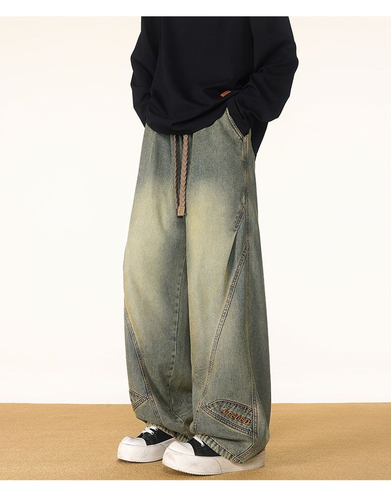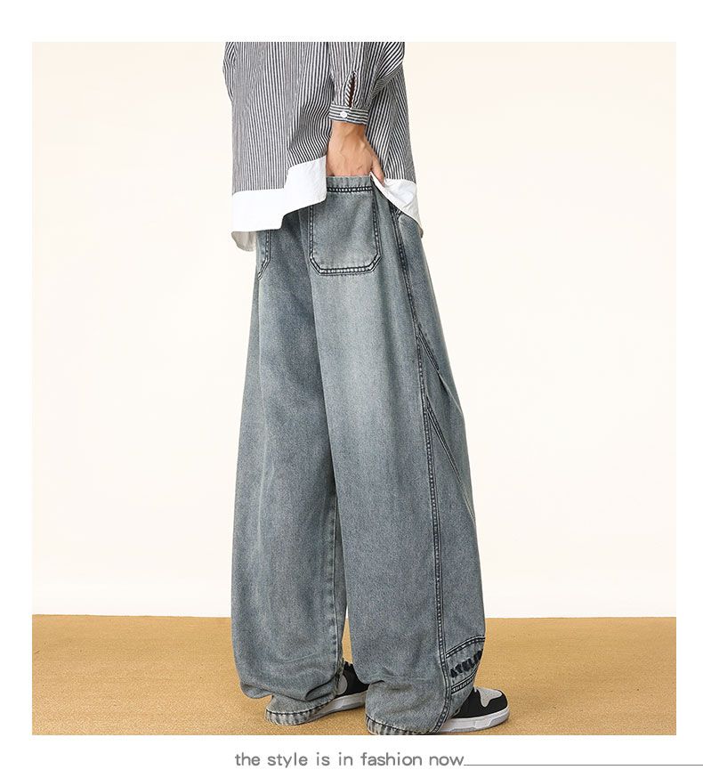 啄木鸟阔腿弯刀牛仔裤男款秋冬季加绒美式直筒休闲长裤加肥加大码裤子男 黑色 L