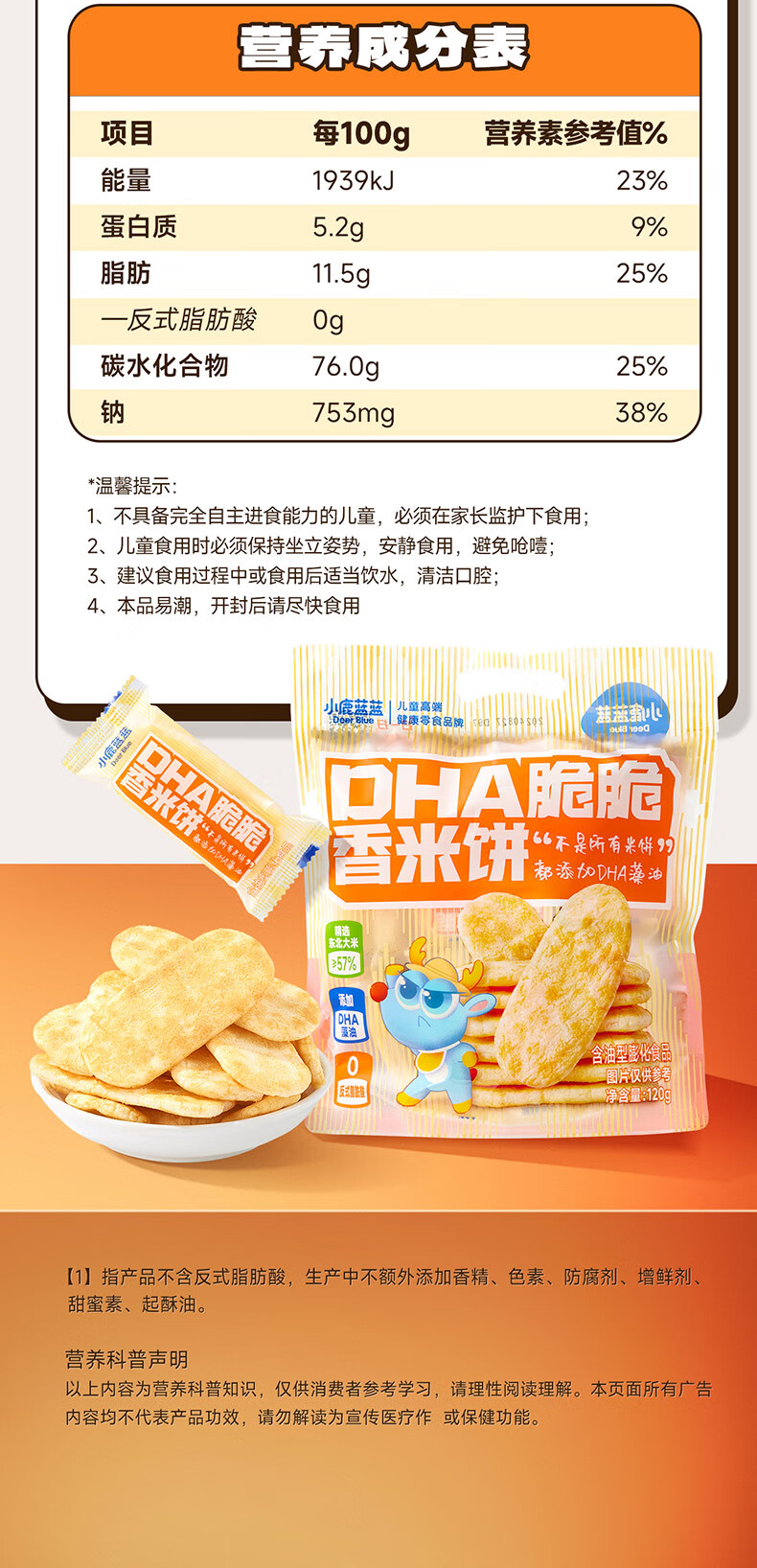 小鹿蓝蓝DHA脆脆香米饼特添加DHA藻油儿童营养米饼磨牙饼干宝宝零食 【1袋分享装】DHA脆脆香米饼1袋/120g