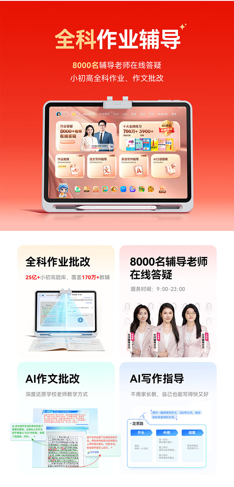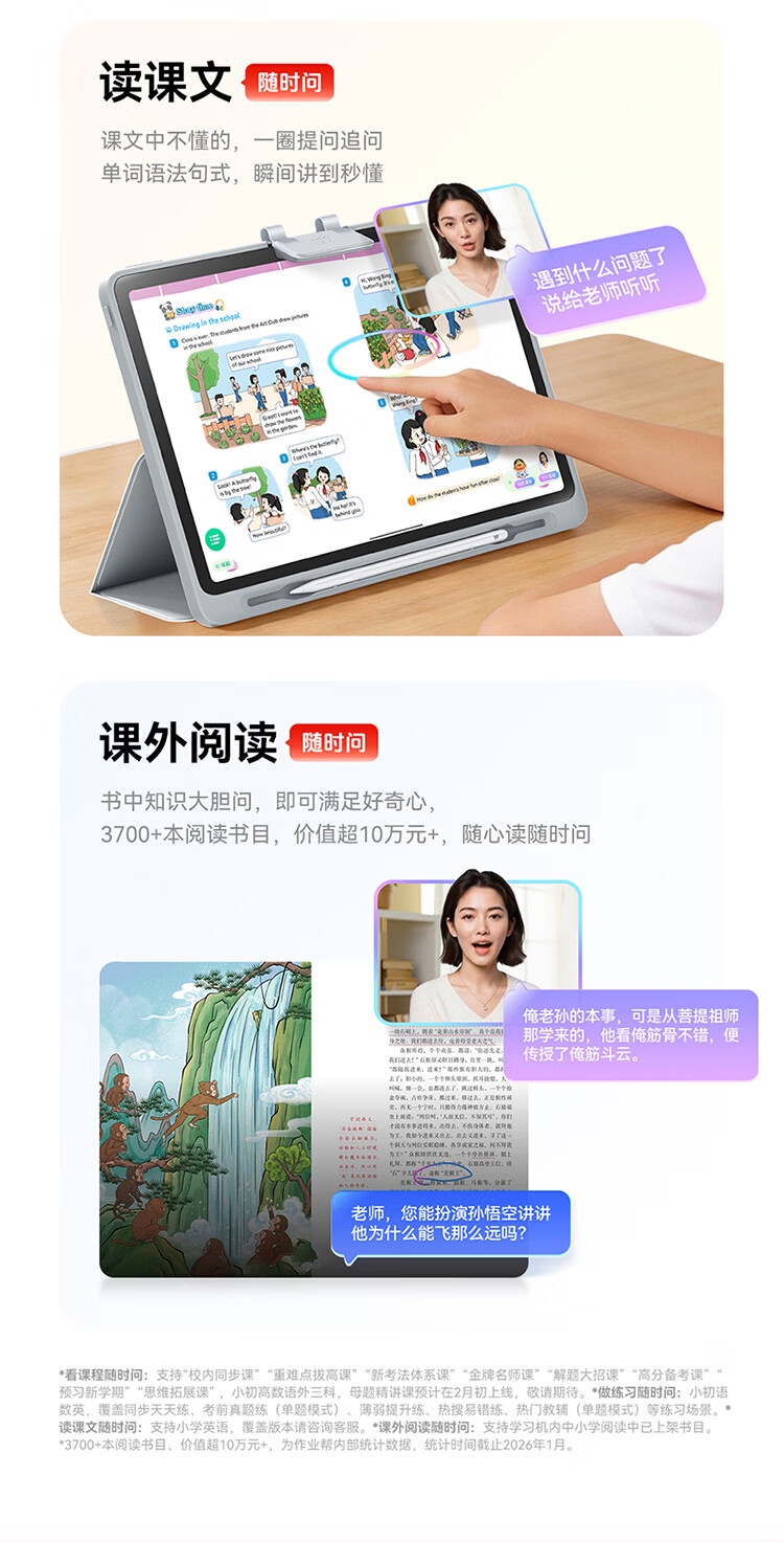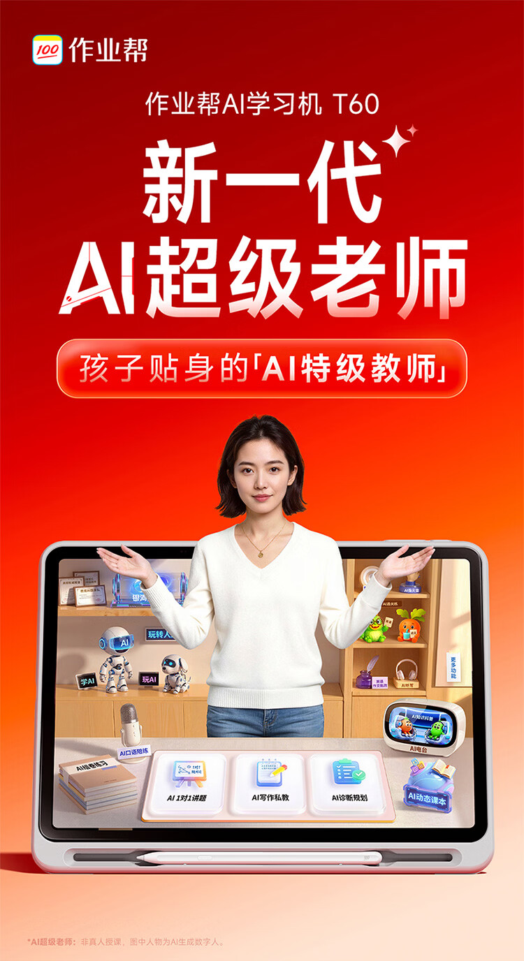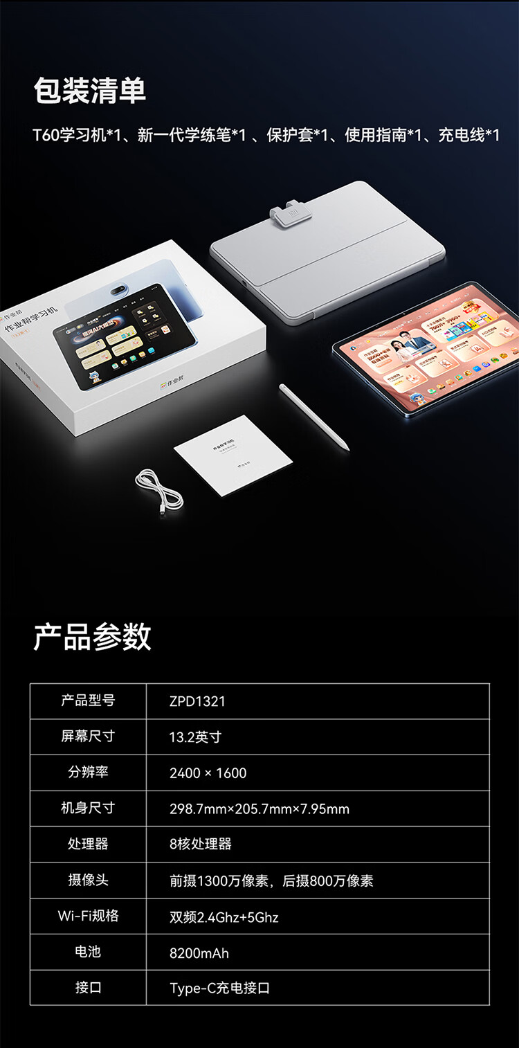 作业帮学习机T60 8+256G 全新一代AI超级老师 1对1名师大招课平板电脑小学到高中学练辅导家教早教13.2''