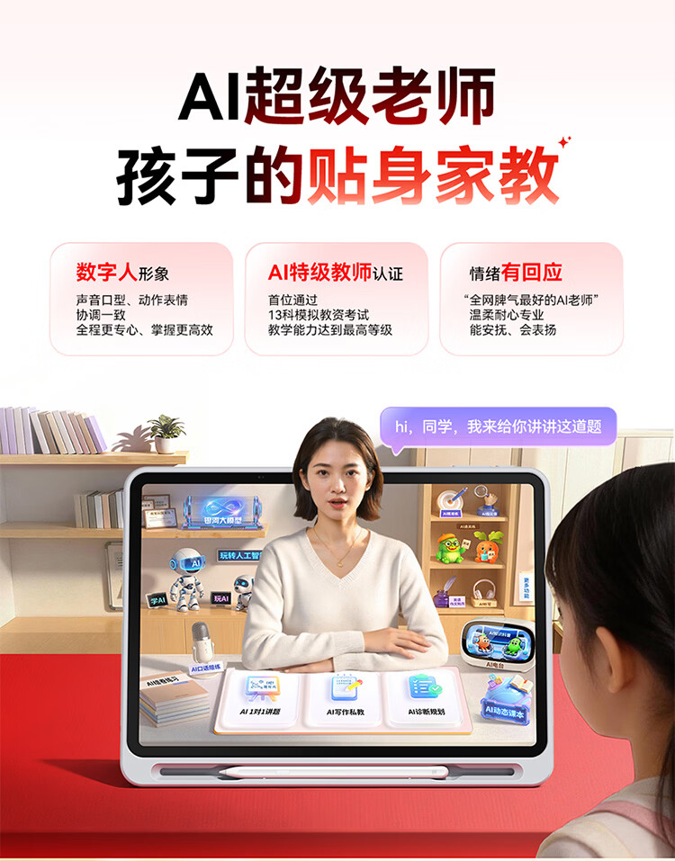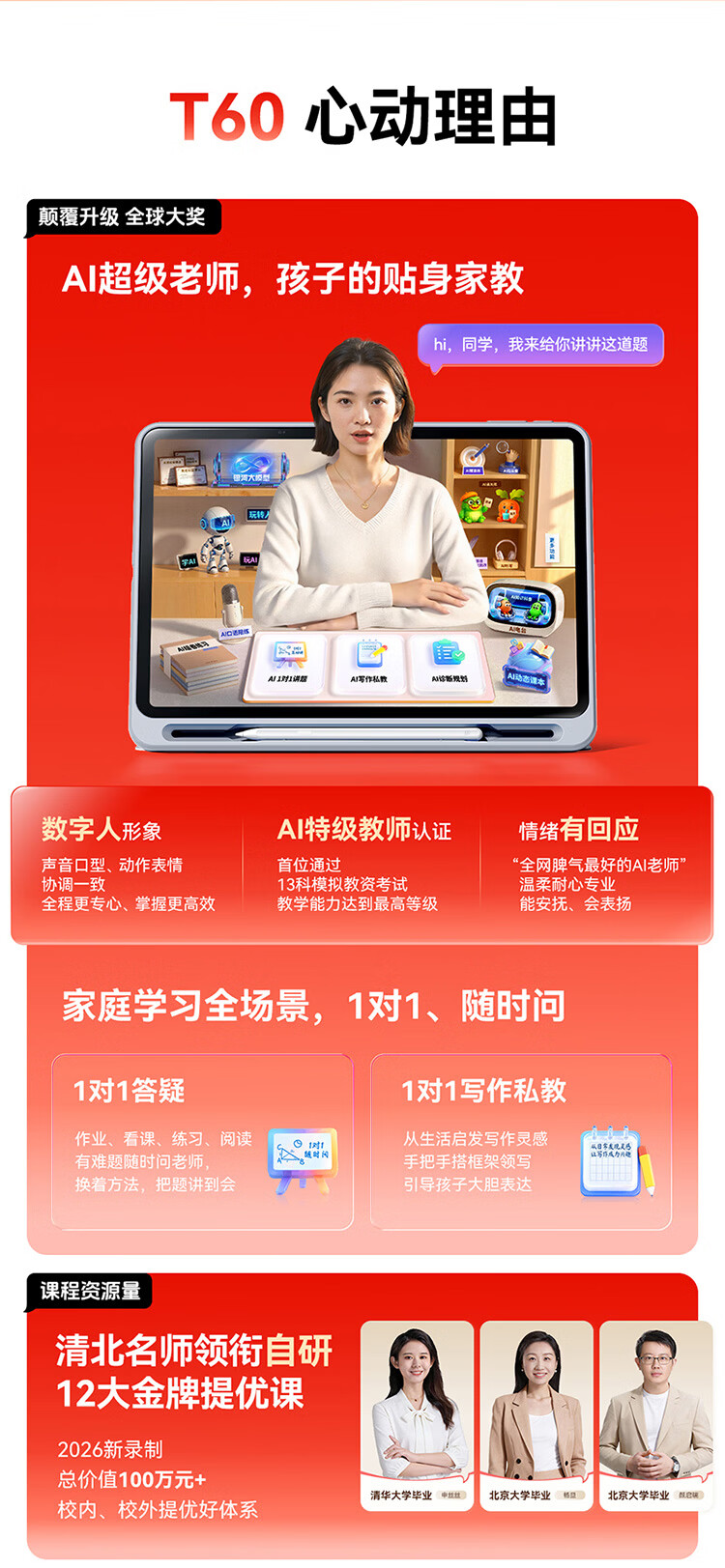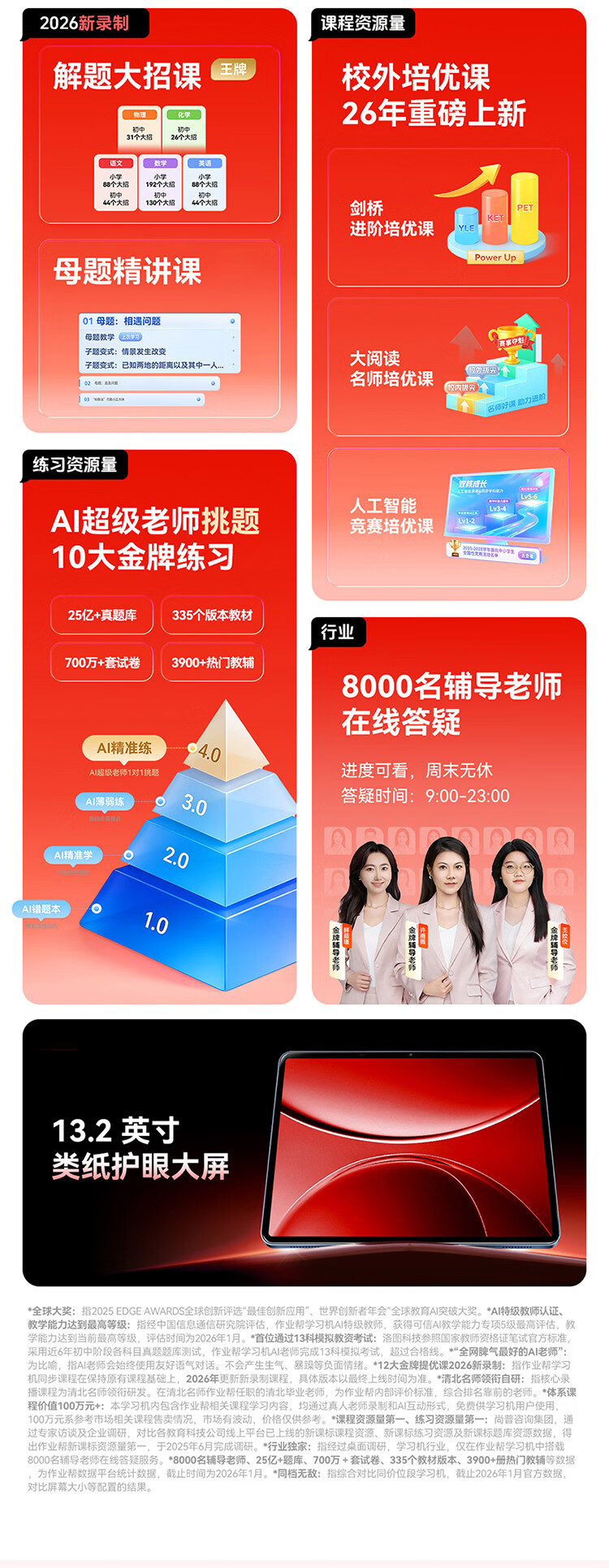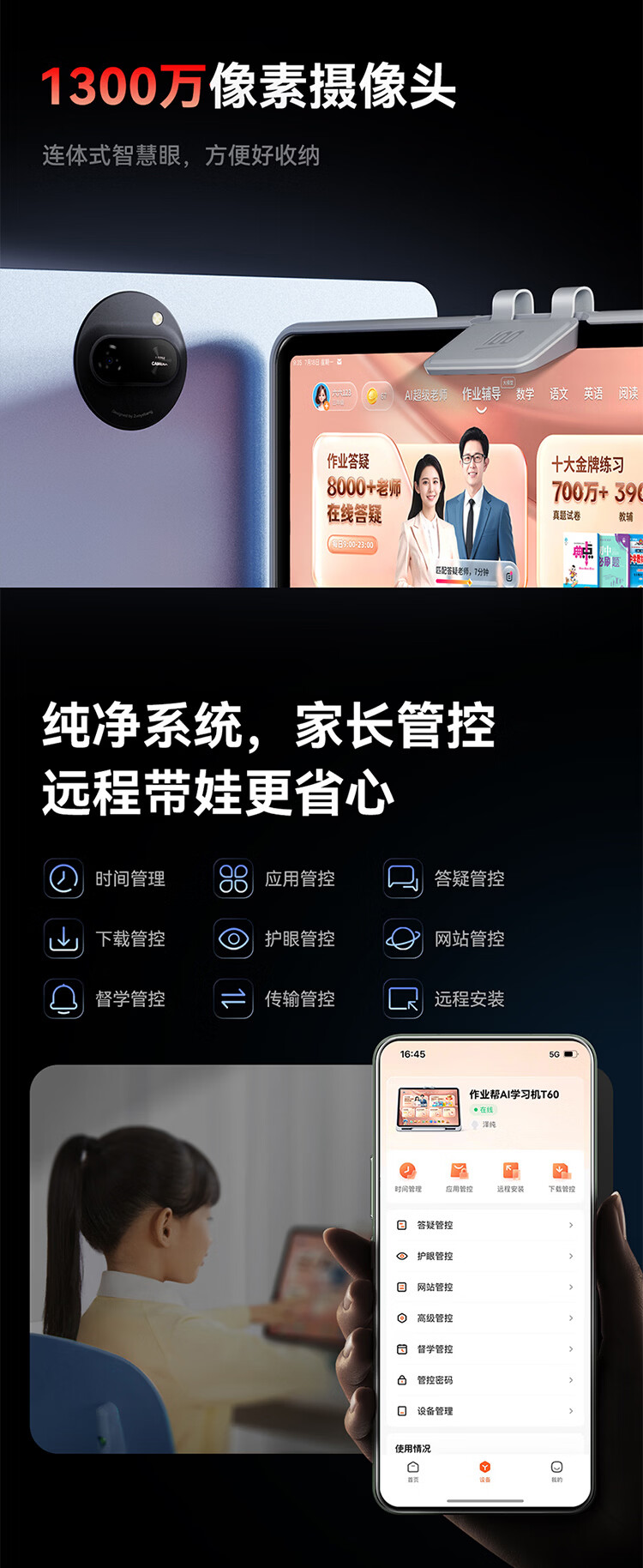 作业帮学习机T60 8+256G 全新一代AI超级老师 1对1名师大招课平板电脑小学到高中学练辅导家教早教13.2''