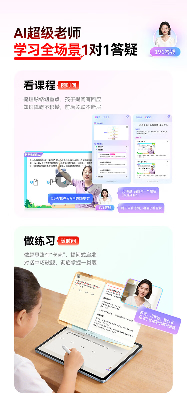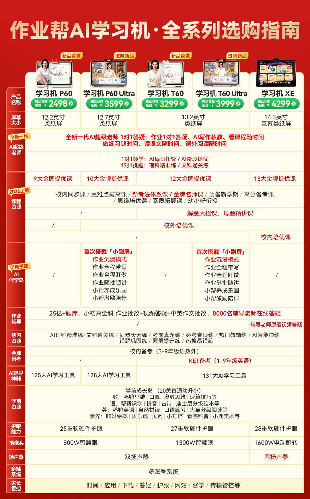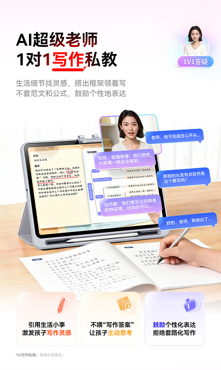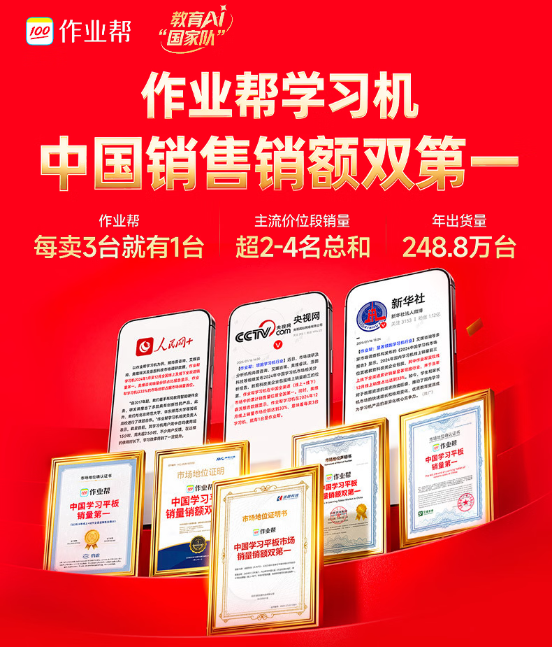 作业帮学习机T60 8+256G 全新一代AI超级老师 1对1名师大招课平板电脑小学到高中学练辅导家教早教13.2''