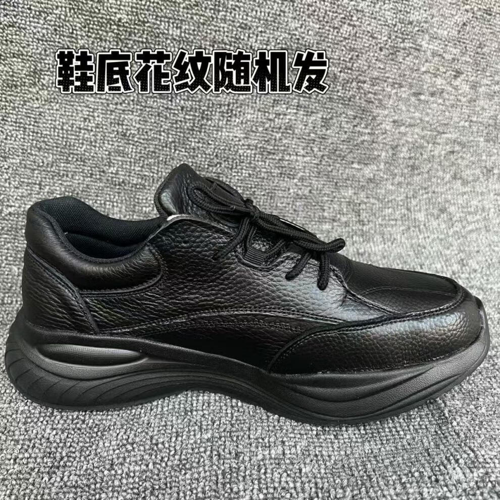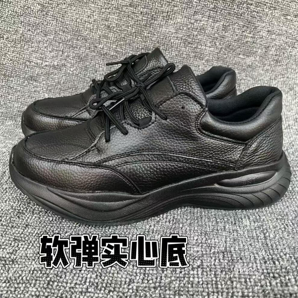 稻草人(MEXICAN)品牌秋冬加绒原单头层牛皮休闲鞋男厚底增高老爹鞋新款真皮运动鞋 黑色【加绒款】 黑色鞋底花样随机发 41