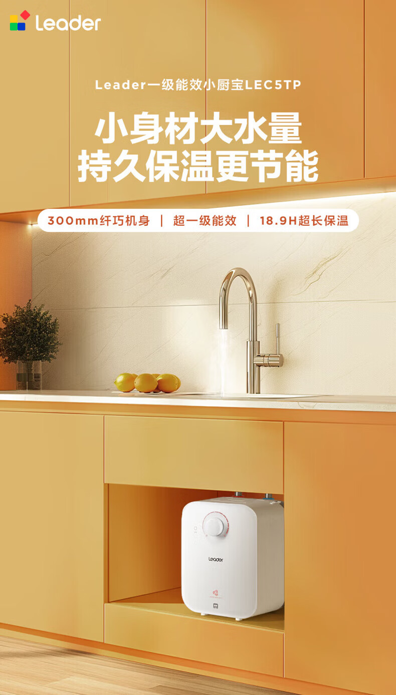 海尔(Haier)出品统帅(Leader)电热水器5升小厨宝DA/TP家用厨房速热长效保温储水式小尺寸 5L 1750W DA厨宝【性价比首选80%客户选择】