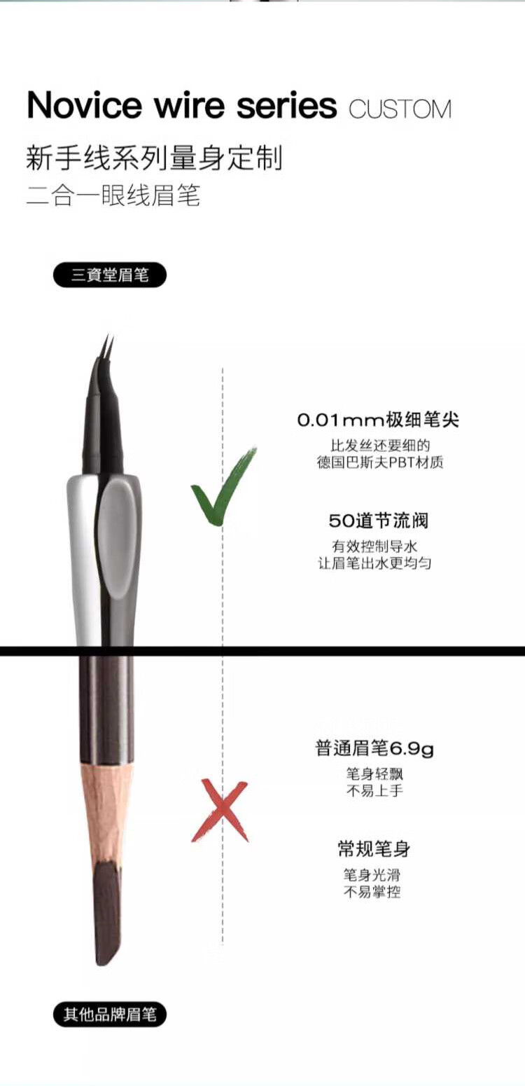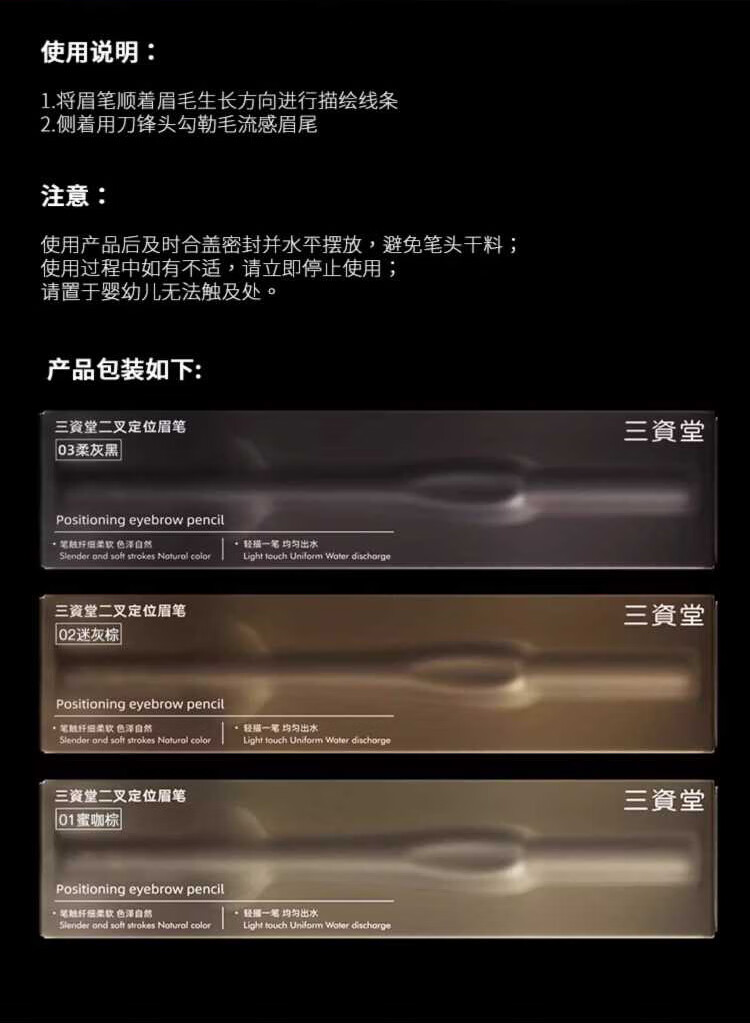三资堂二叉眉笔弯头迷灰棕 百搭热门 防水防汗不掉色野生眉易上手