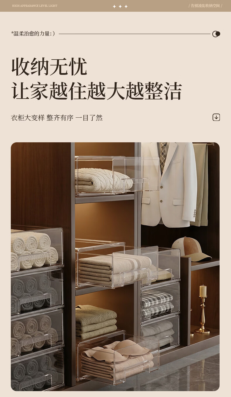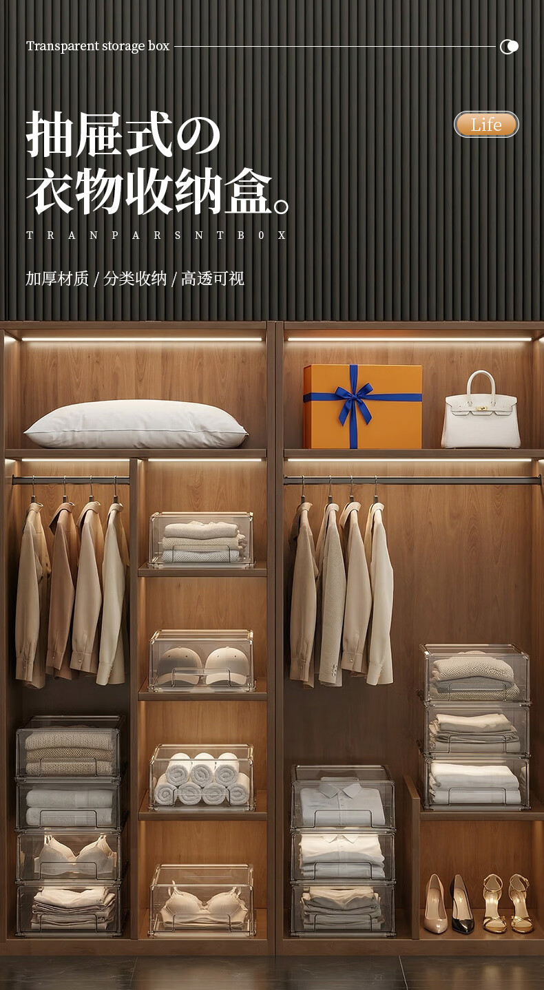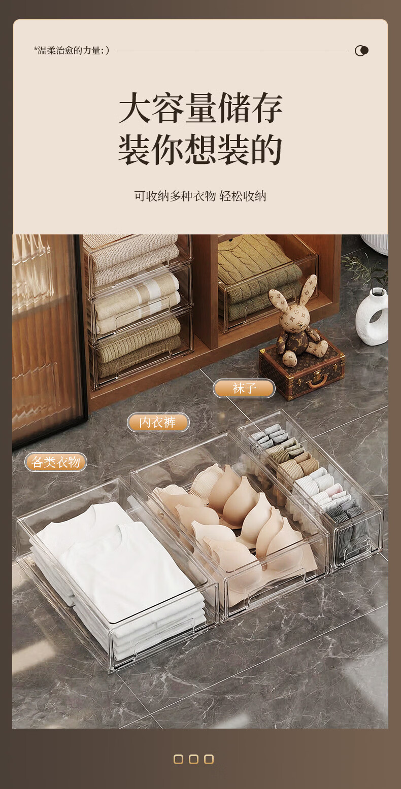 稻草熊抽屉式内衣收纳盒家用衣柜内衣物整理盒分装小盒子整理神器收纳箱 小号【1个装】