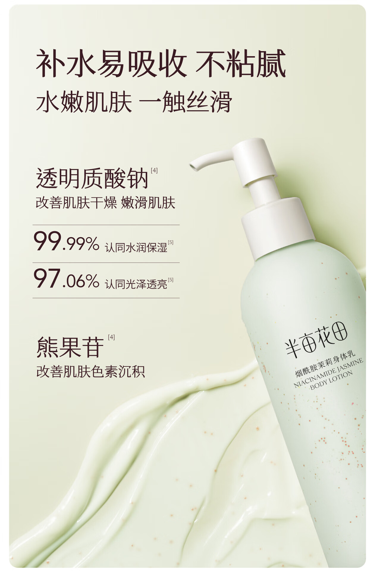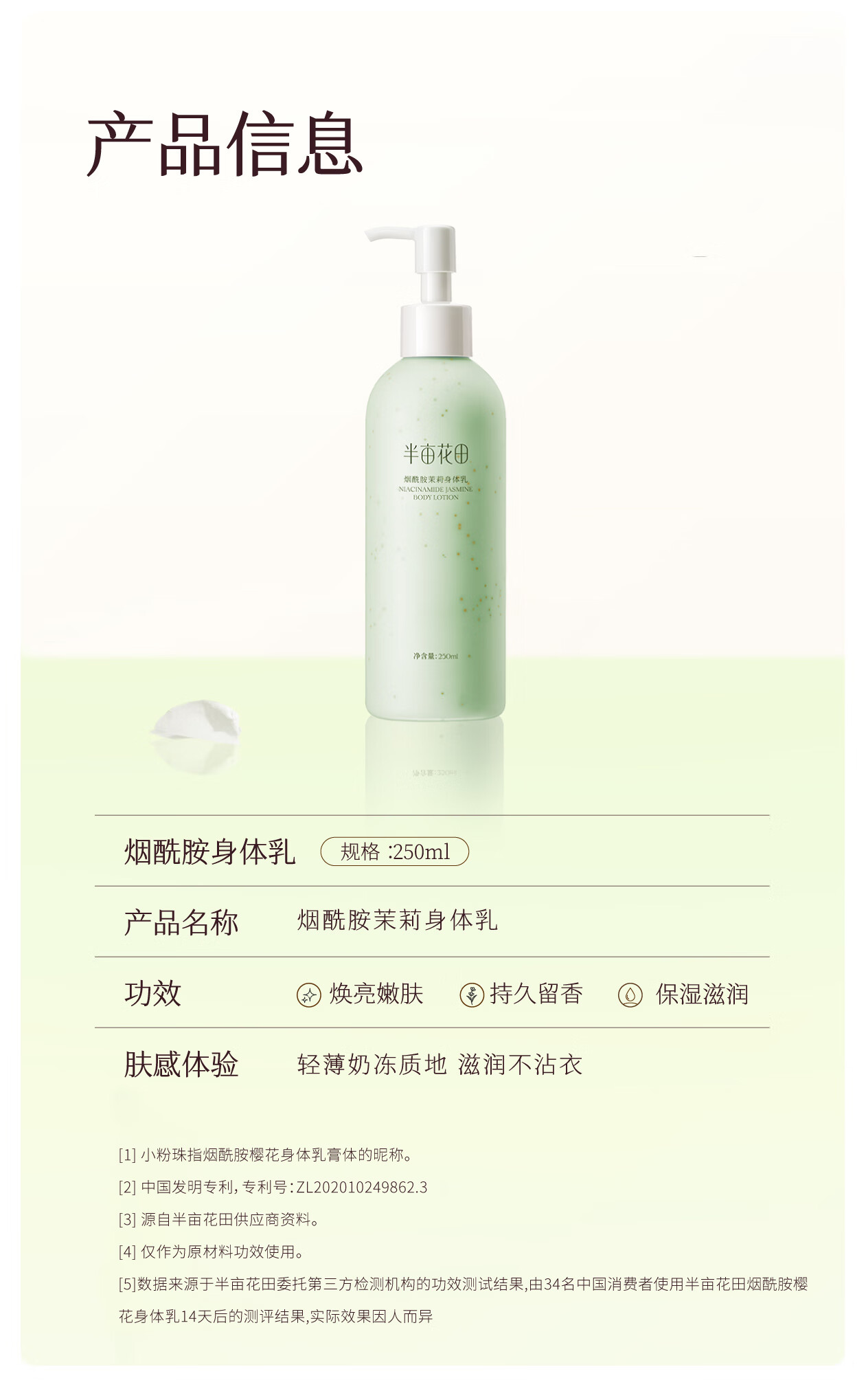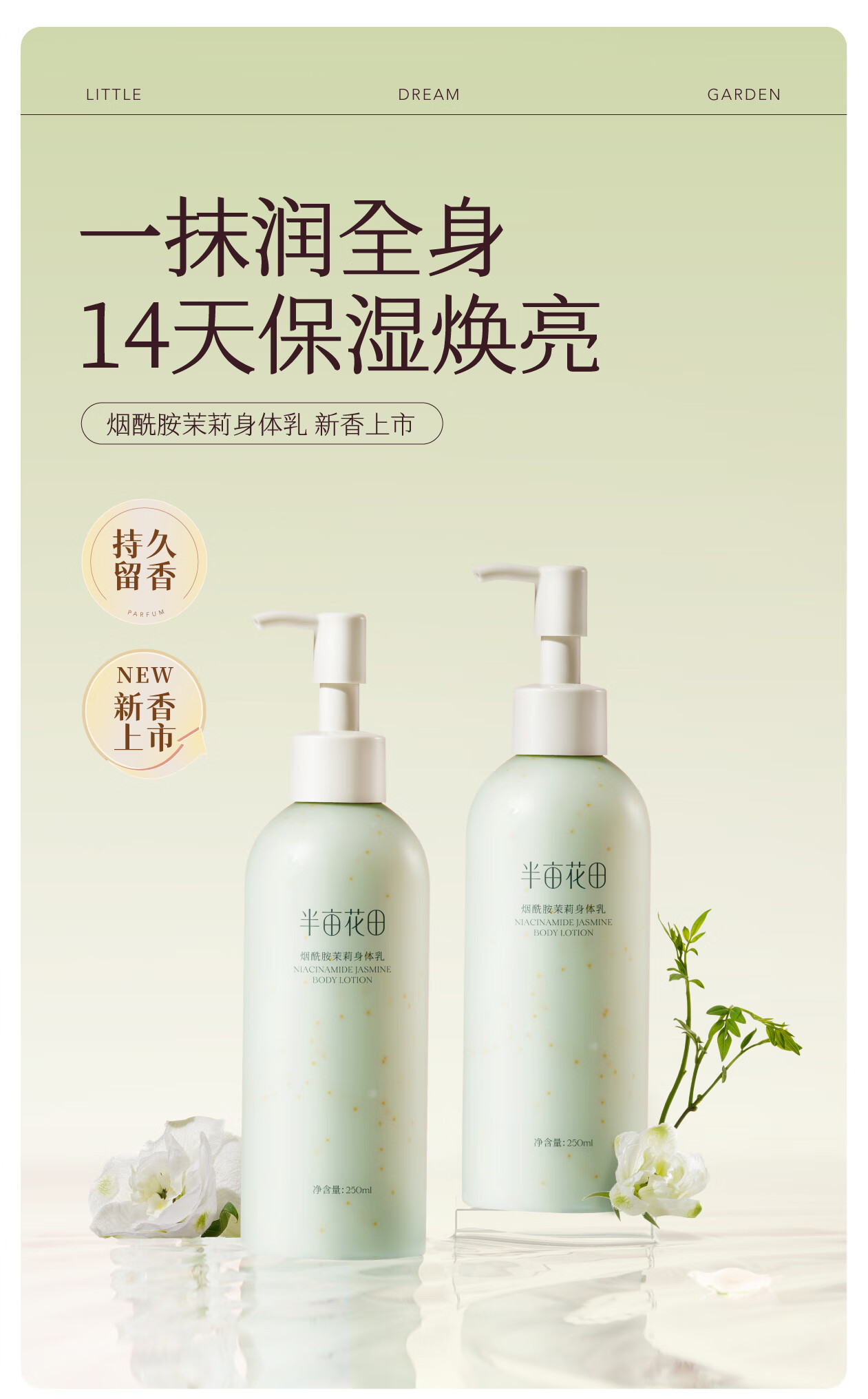 半亩花田【一抹润全身 14天保湿焕亮】烟酰胺茉莉身体乳持久留香250ml