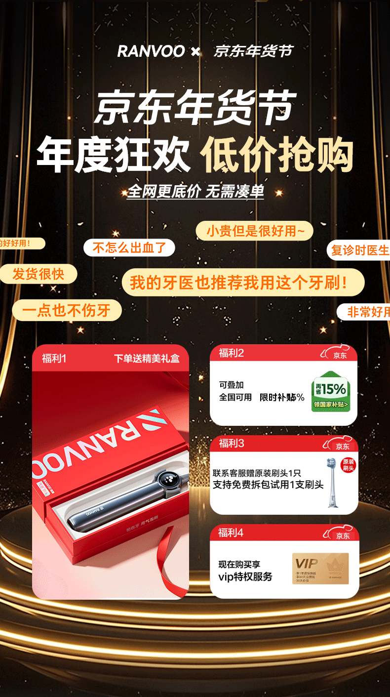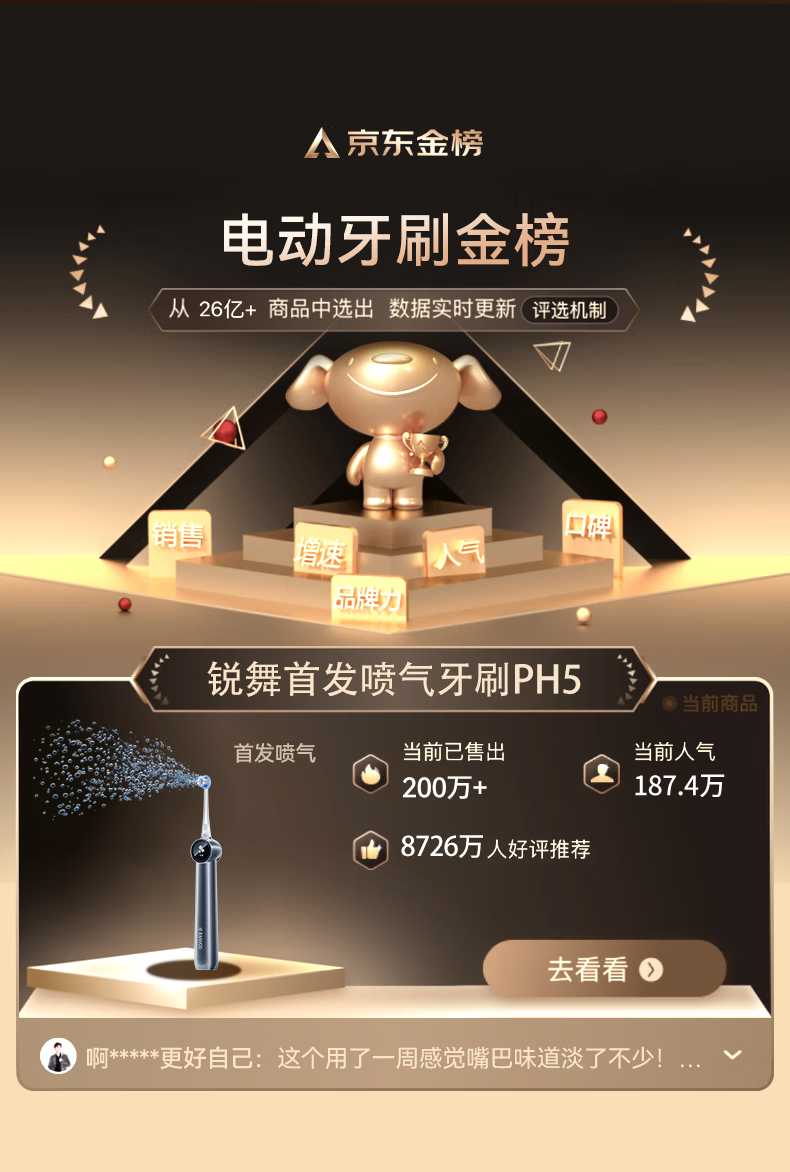 锐舞(RANVOO)【全网热销200万 | 26年顶配升级款】电动牙刷成人喷气电动牙刷儿童扫振气泡牙龈男女正畸新年礼物