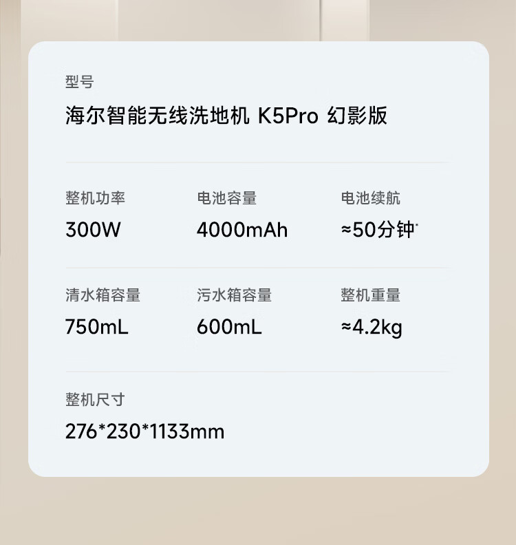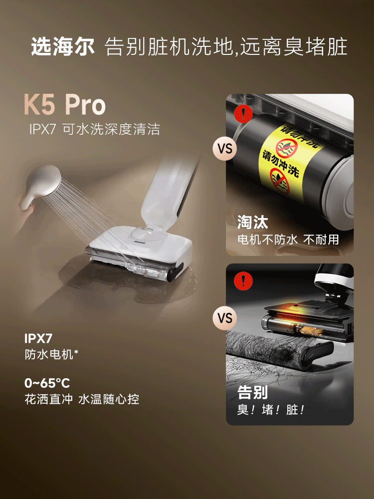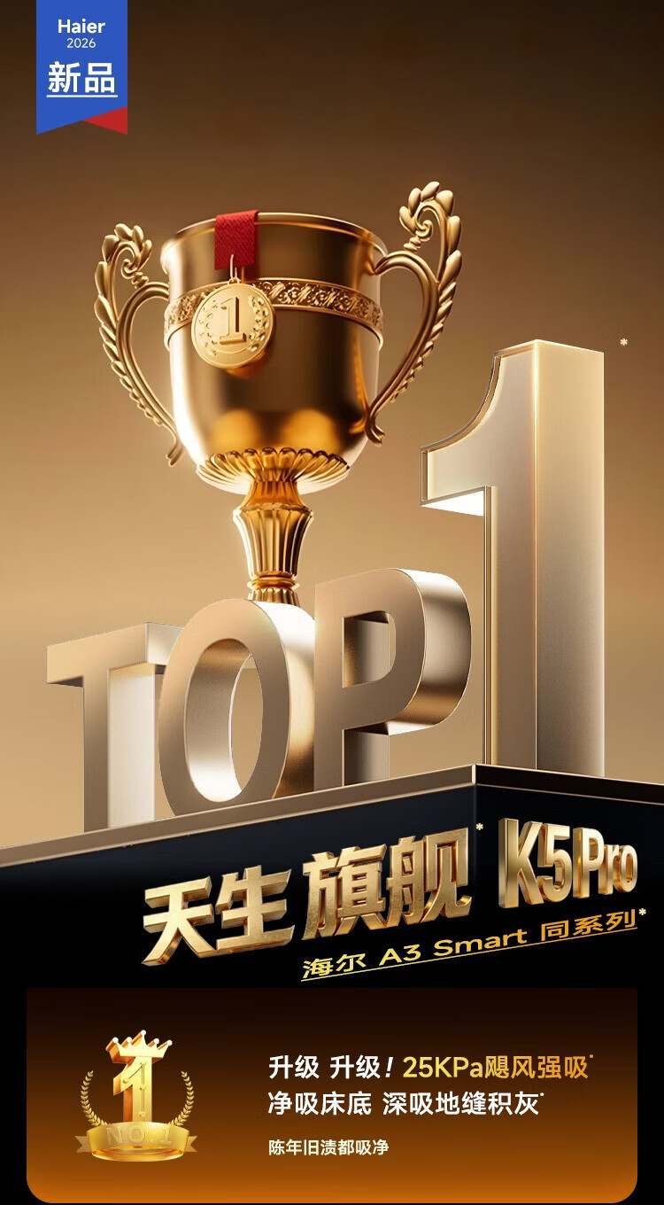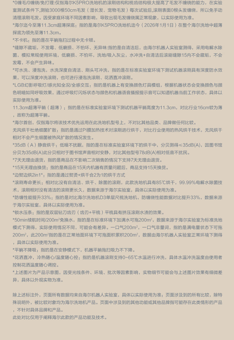 海尔洗地机K5Pro【25KPa吸力 95℃静音烘 0缠毛 IPX7防水】A3Smart系列智能家用吸拖洗一体拖地机器人 【K5 Pro】25KPa吸力|95℃静音熨烘
