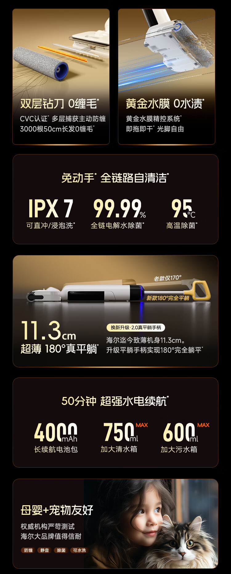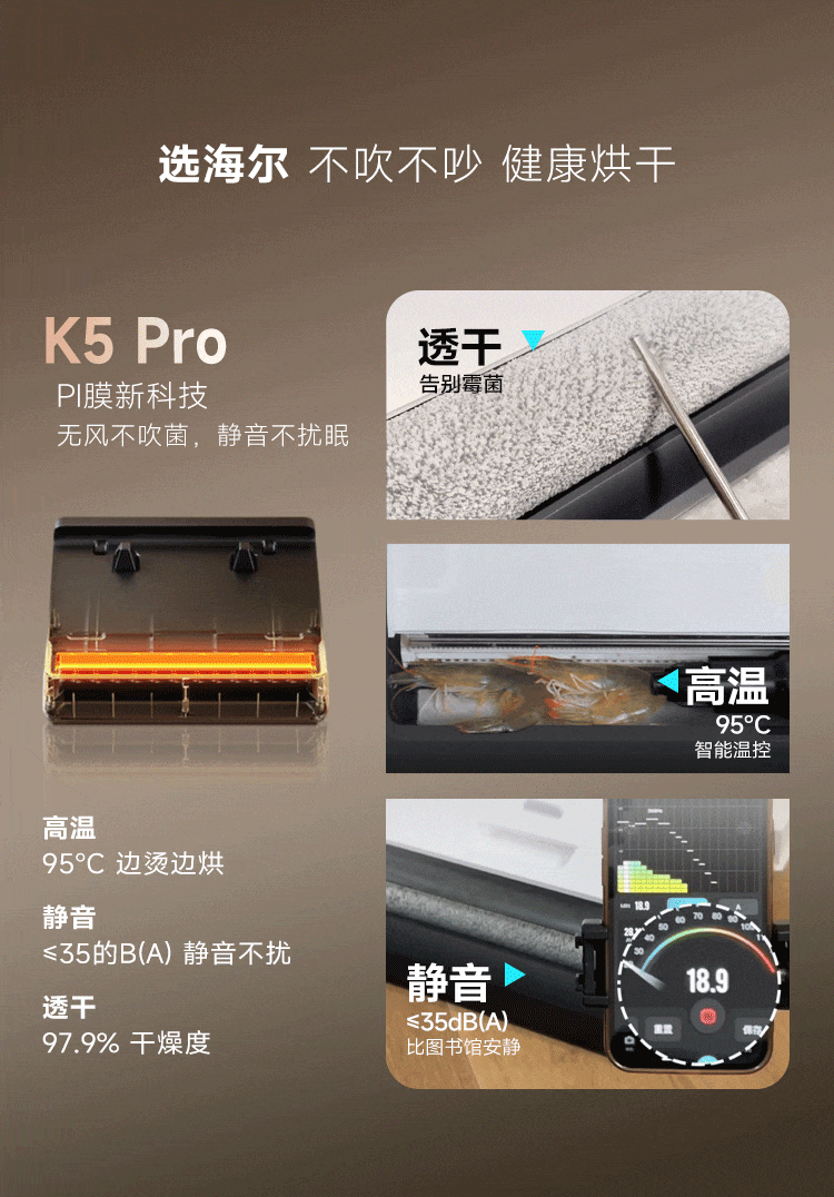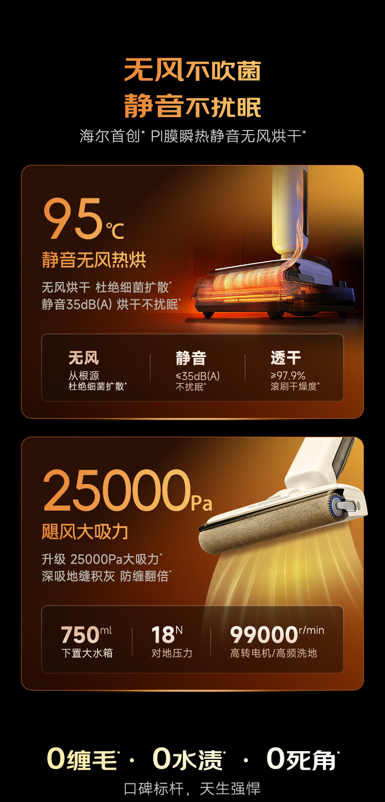 海尔洗地机K5Pro【25KPa吸力 95℃静音烘 0缠毛 IPX7防水】A3Smart系列智能家用吸拖洗一体拖地机器人 【K5 Pro】25KPa吸力|95℃静音熨烘