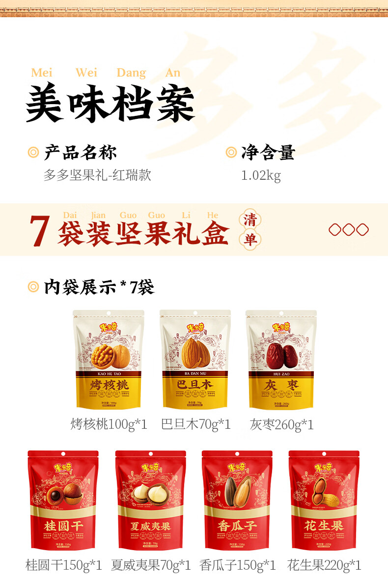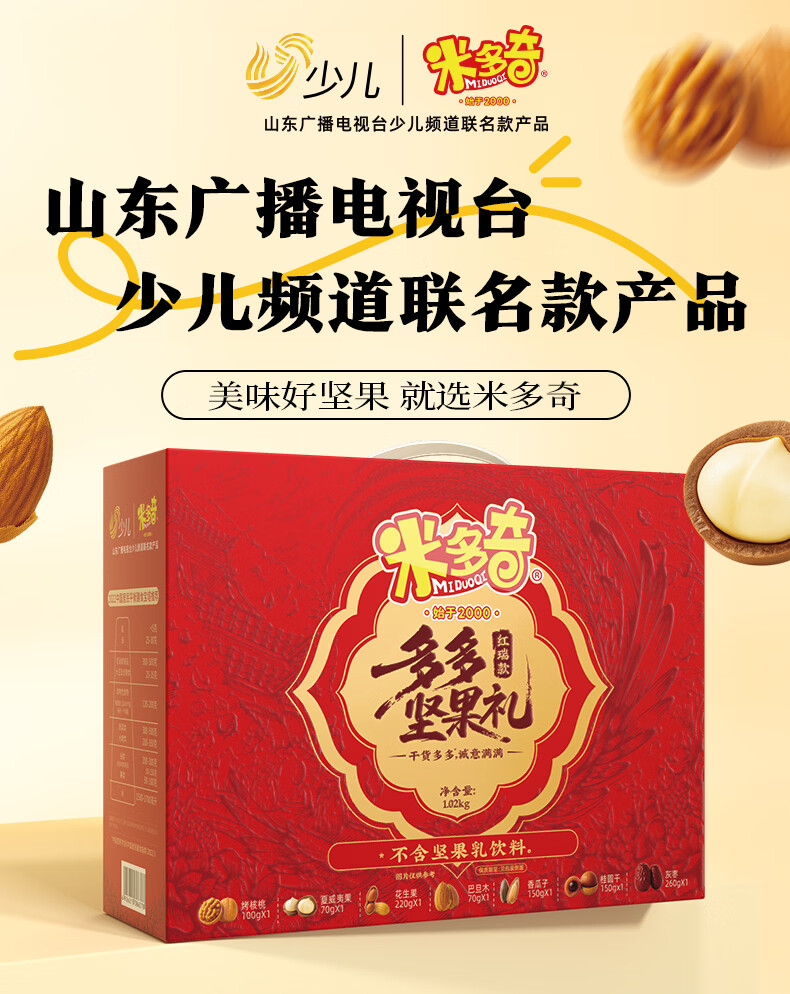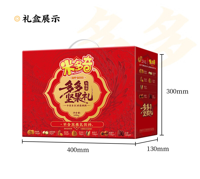 米多奇红瑞款坚果礼盒 1.02kg 不含饮料凑重量年货礼品团购