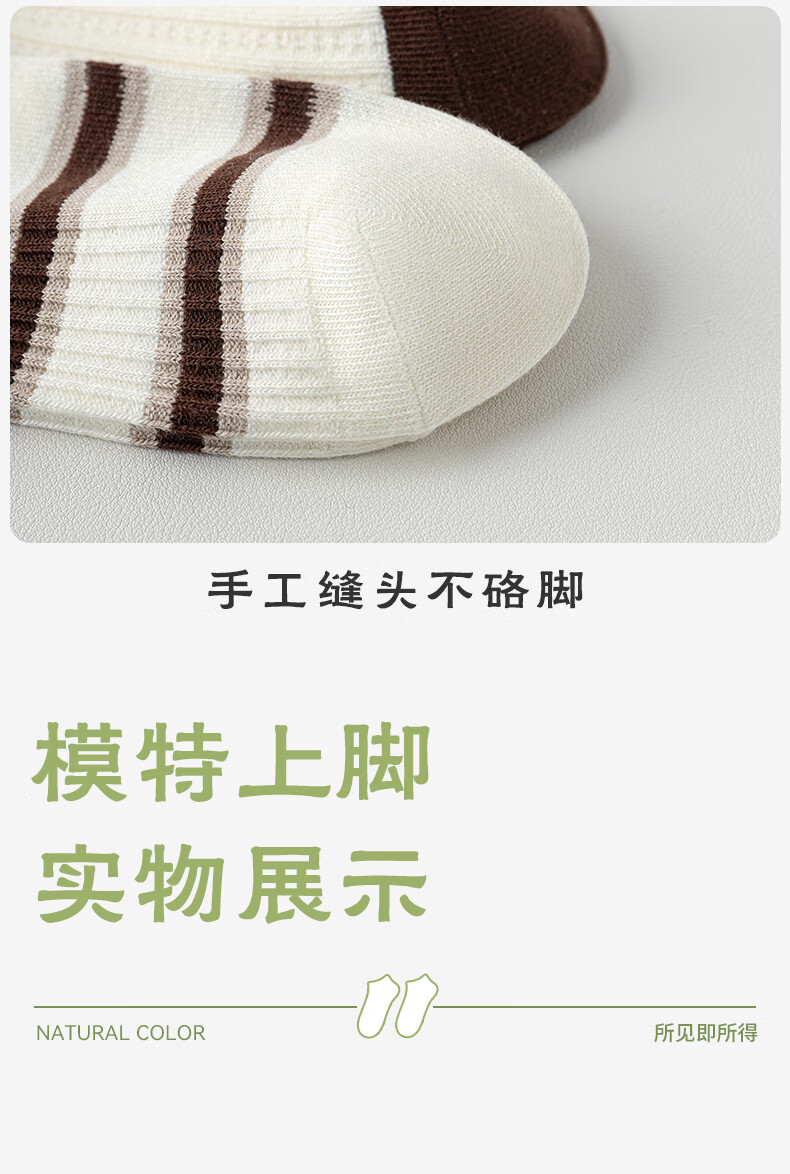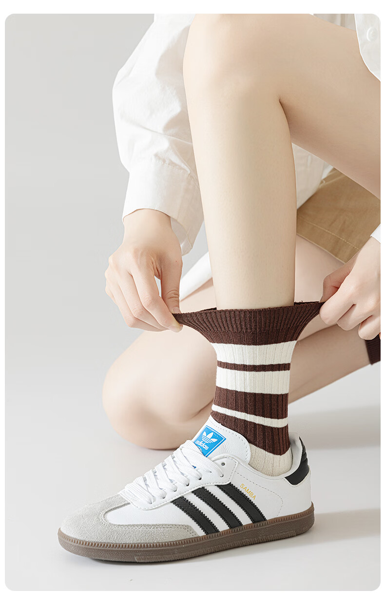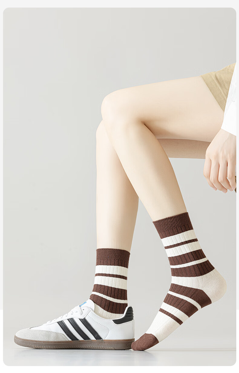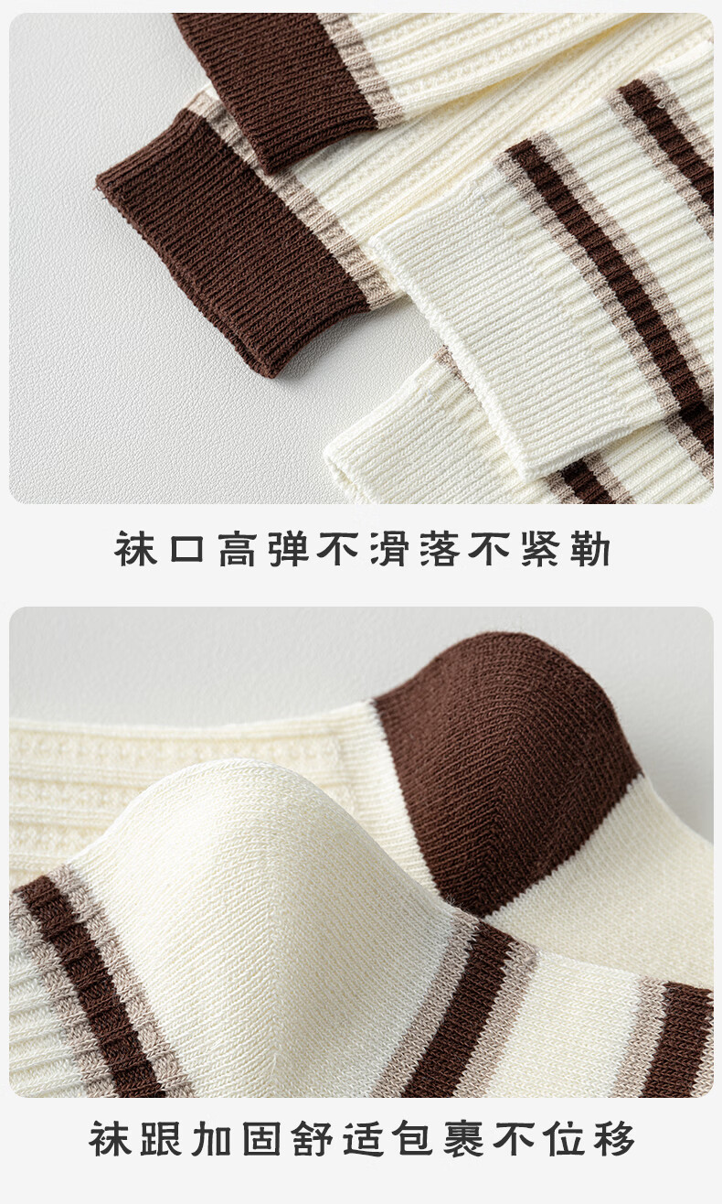 宜而爽秋冬季女中筒堆堆袜亲肤无刺激轻柔软糯舒适高弹力细线美观好穿搭 浅棕条3 条纹2 5双装 均码 34-39码(22-24cm)
