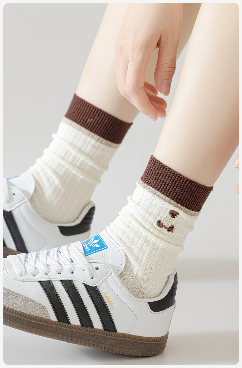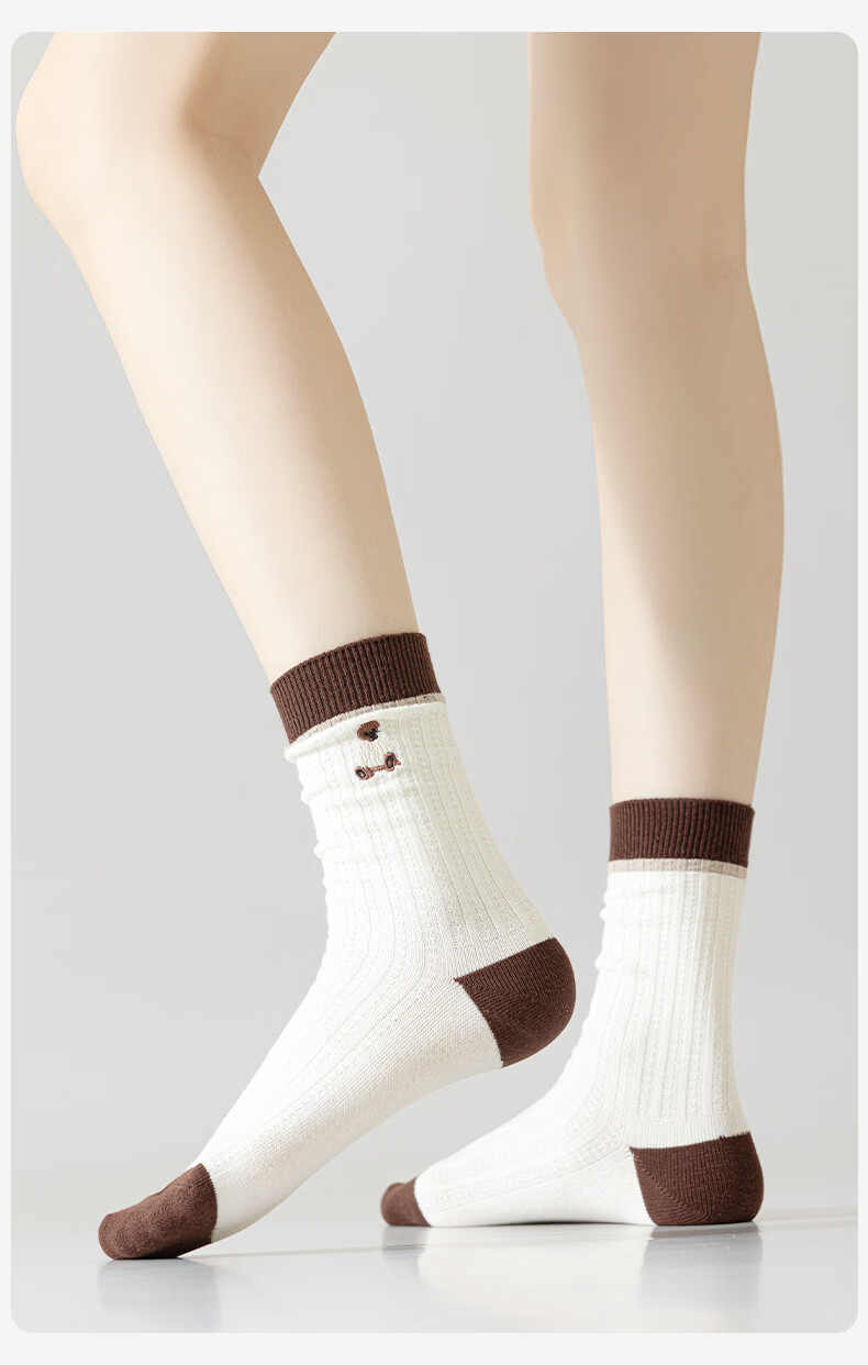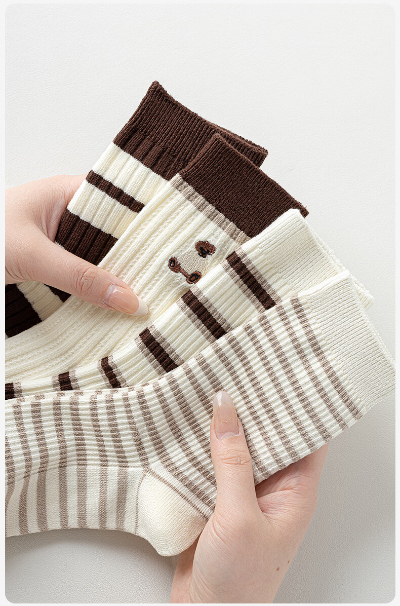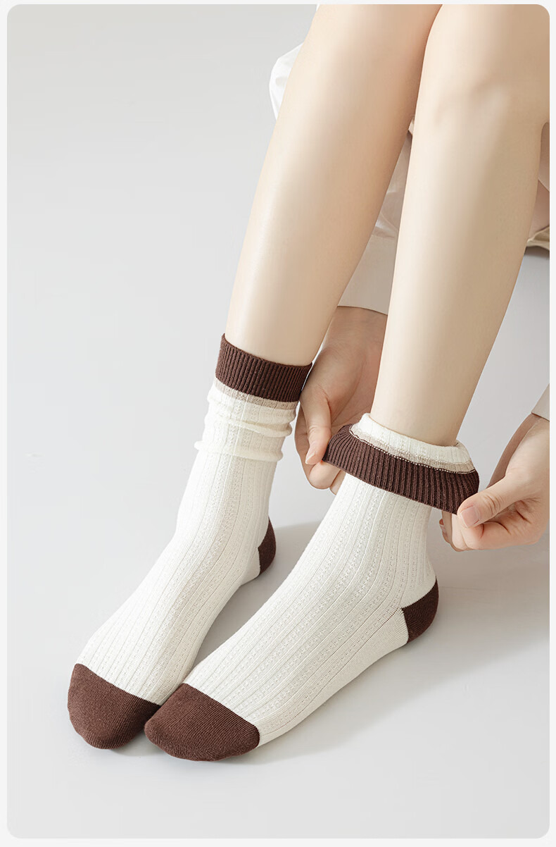 宜而爽秋冬季女中筒堆堆袜亲肤无刺激轻柔软糯舒适高弹力细线美观好穿搭 浅棕条3 条纹2 5双装 均码 34-39码(22-24cm)