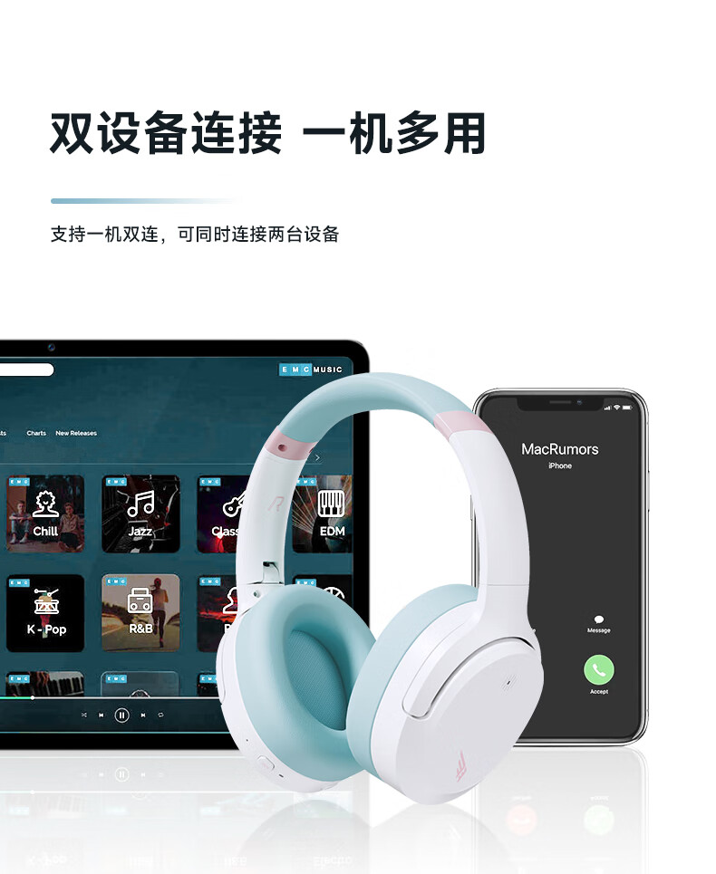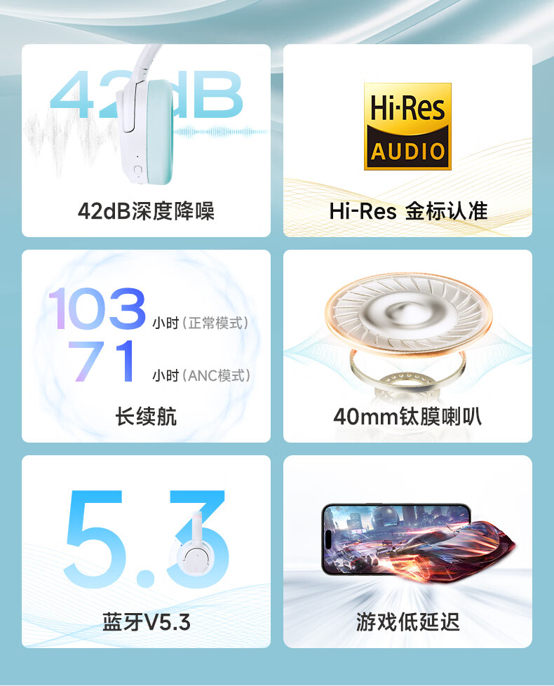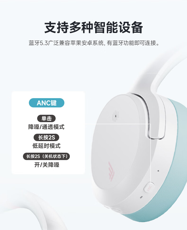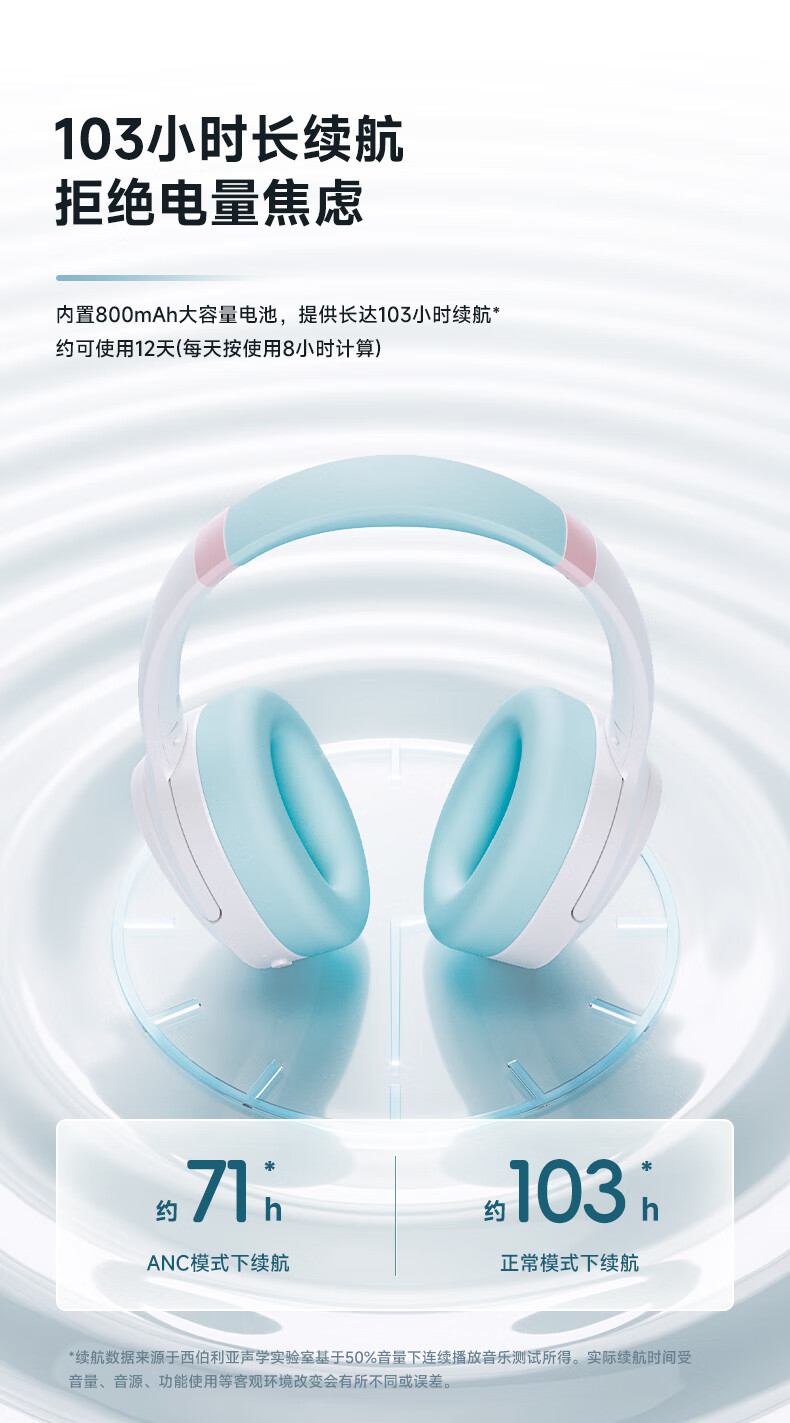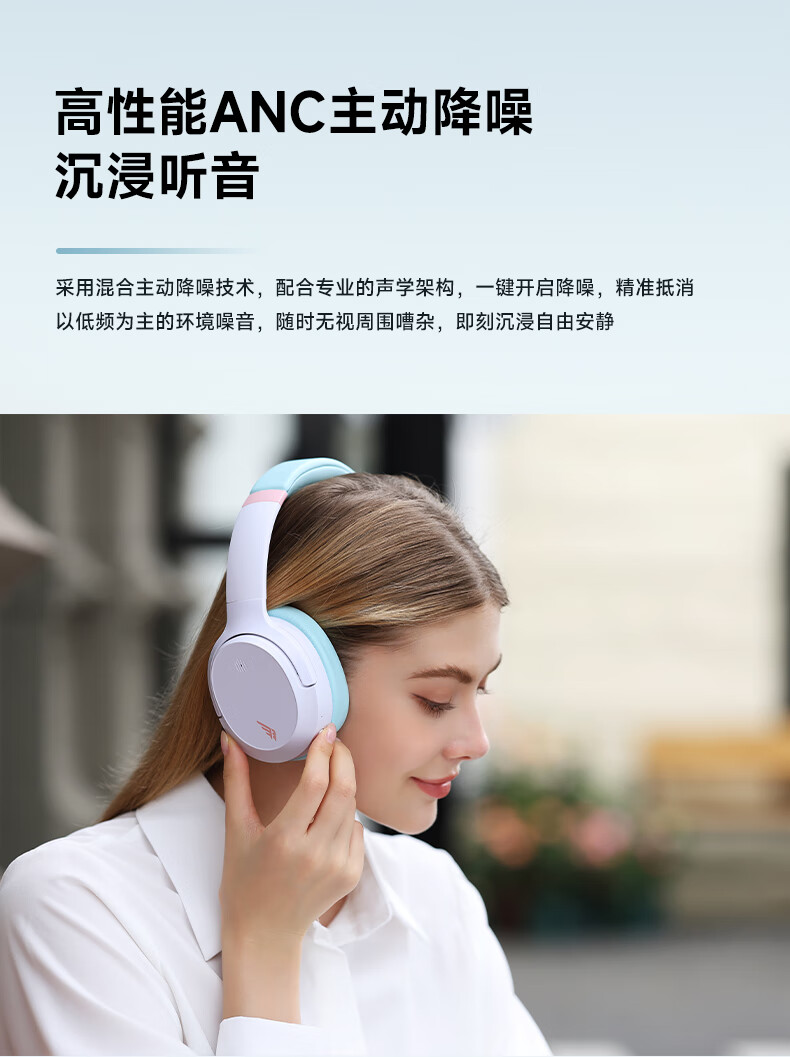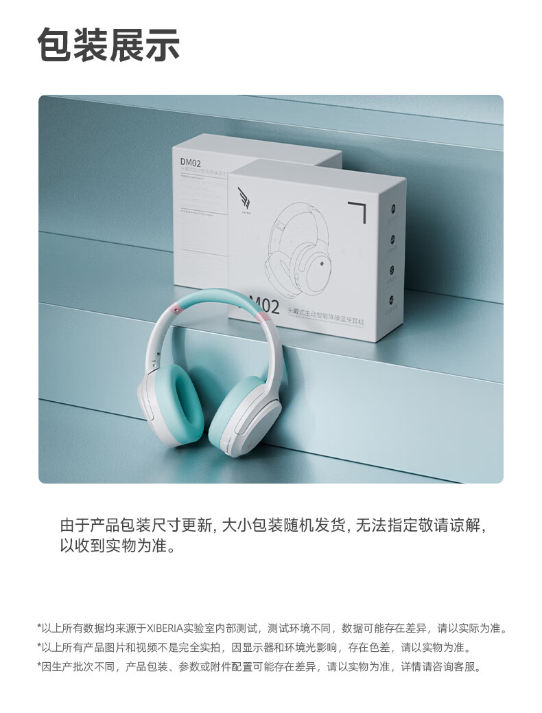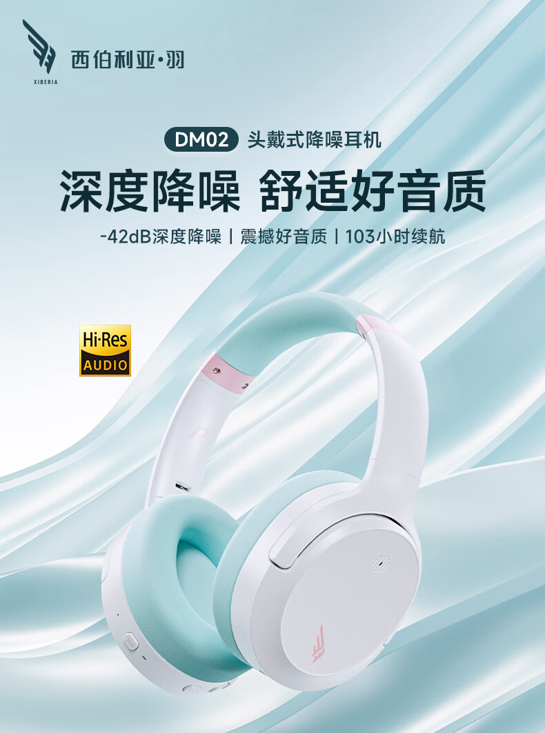 西伯利亚(XIBERIA)西伯利亚 DM02主动降噪金标认证无线头戴式蓝牙耳机超长续航降噪音乐游戏运动耳机天青白全网热销