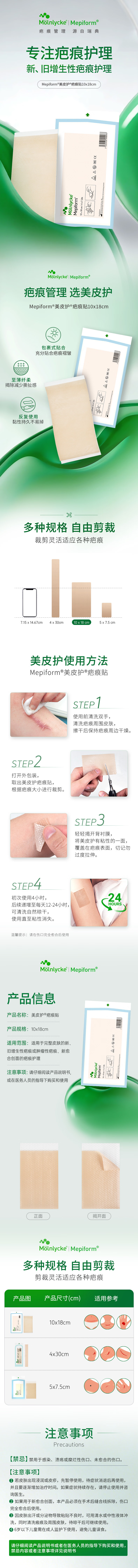 美皮护Mepiform美皮护疤痕贴祛疤痕专用剖腹产手术烧伤烫伤10*18cm