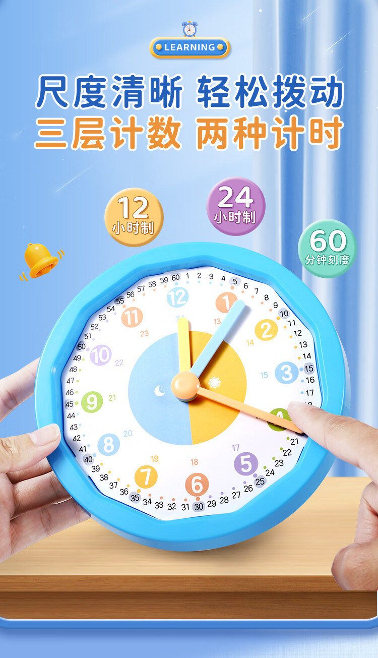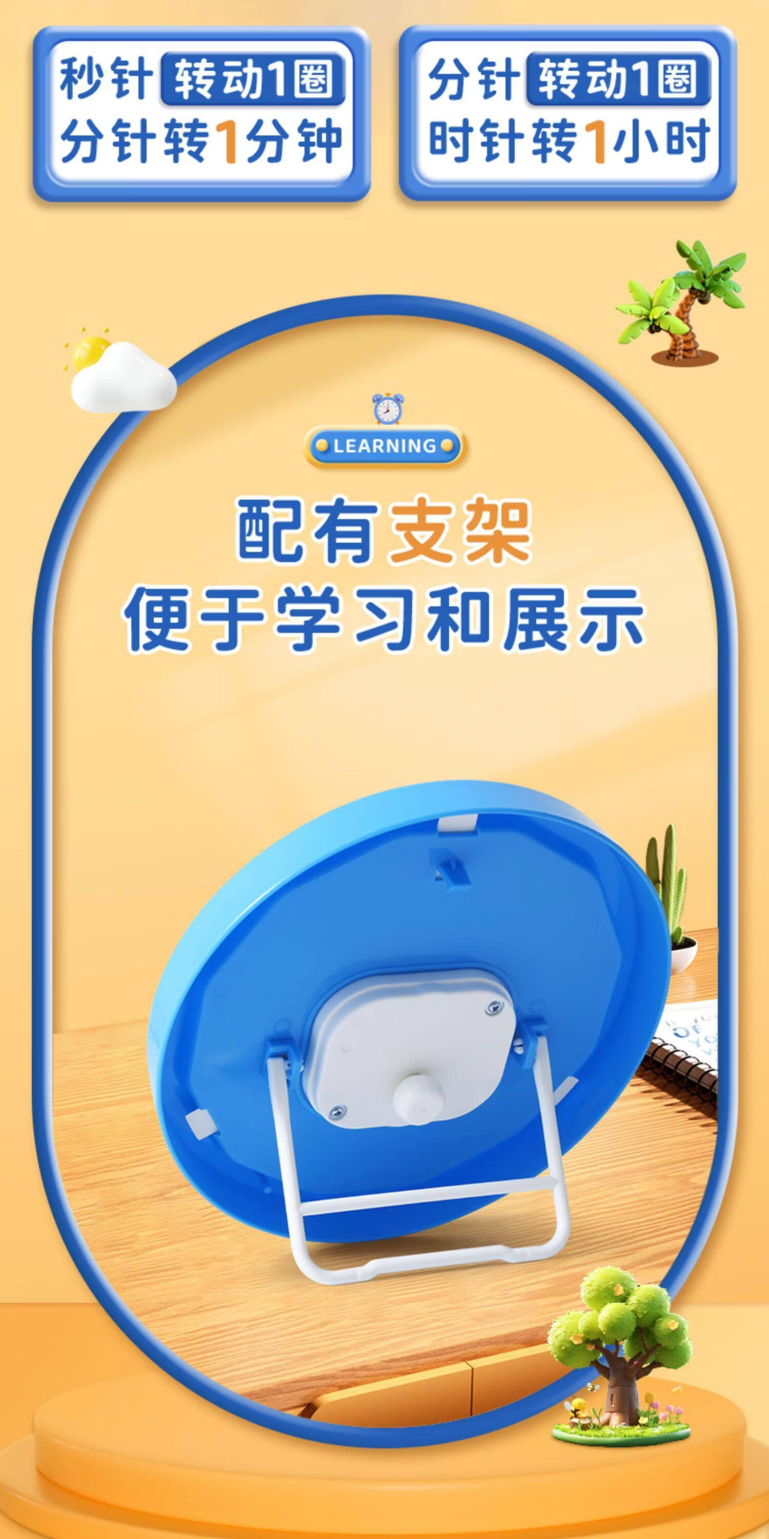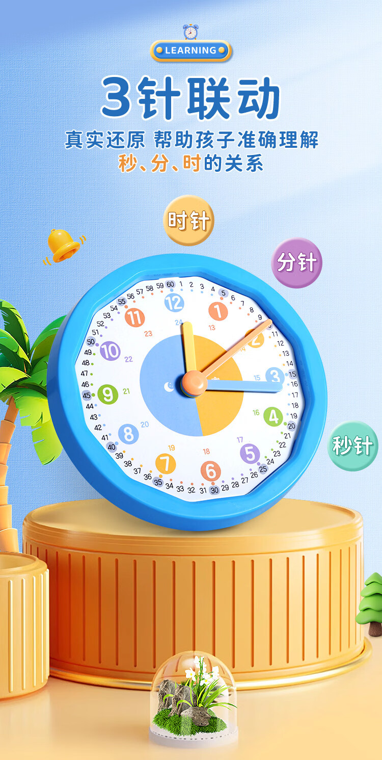 晨光(M&G)文具儿童钟点钟表学习器 三针联动时钟闹钟模型 老师推荐 幼儿园时间认知益智教具 开学文具