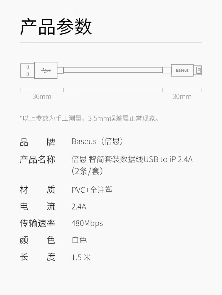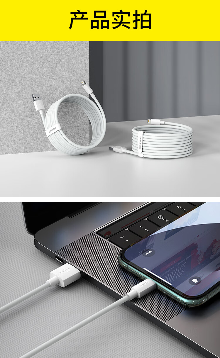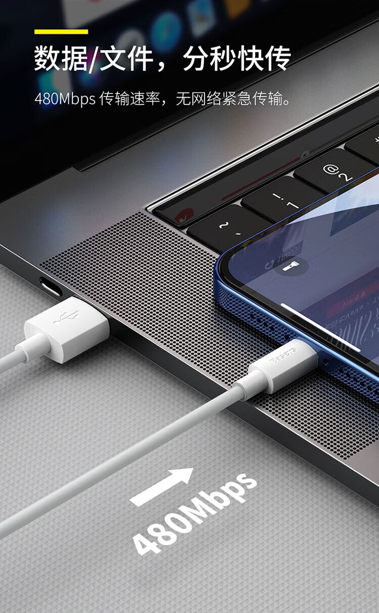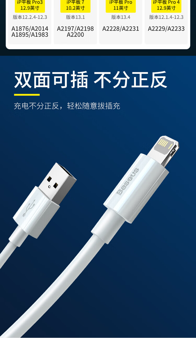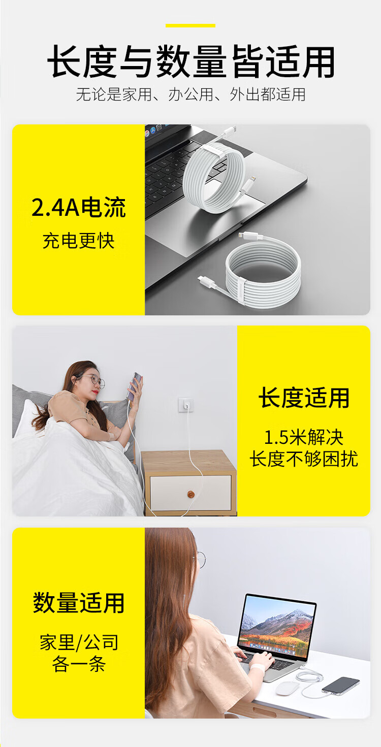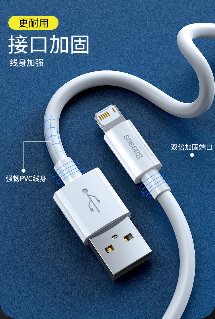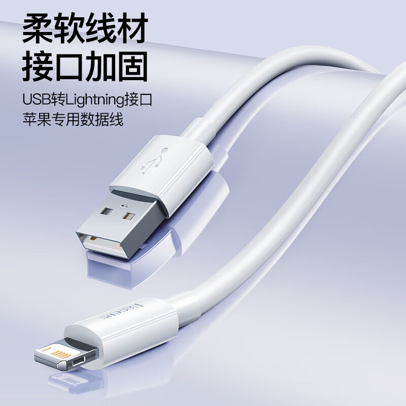 倍思苹果快充数据线2.4A充电线适用iPhone14/13/12Pro Max/XR/Xs/11/8手机ipad平板车载1.5米【2条装】