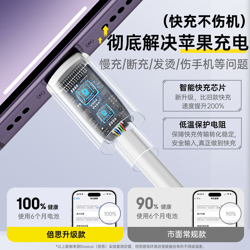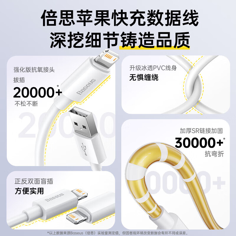 倍思苹果数据线PD30/20W快充线Type-c to lightning充电线适用iPhone14/13Pro Max/12/11手机车载1.5米