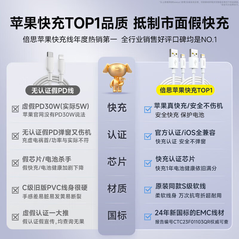 品胜苹果数据线PD30w快充充电线Type-C适用iPhone14pro/13/12手机iPad车载USB-C充电器线to Lightning