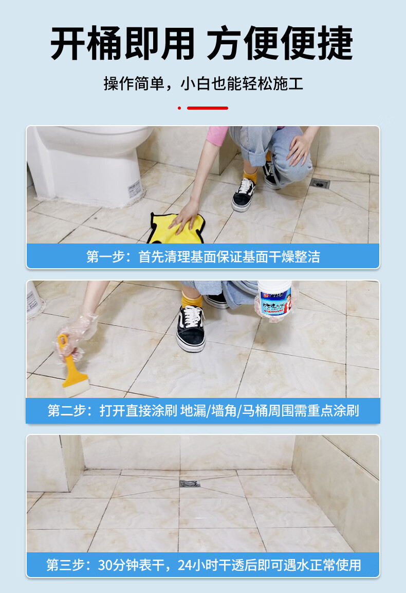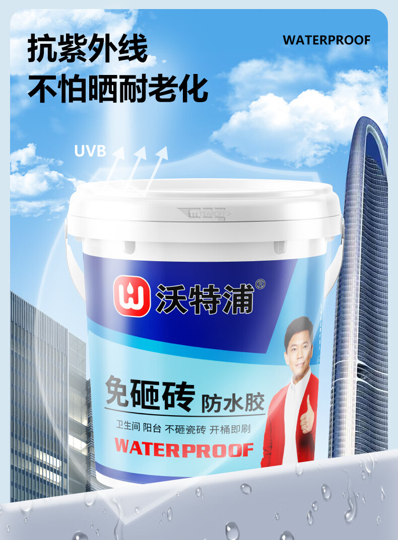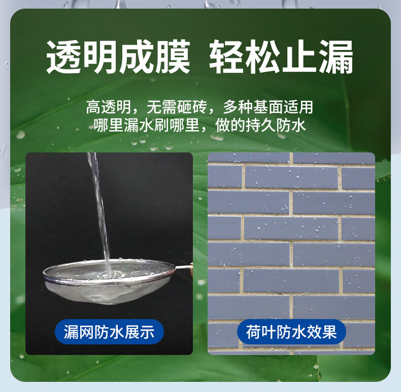 沃特浦卫生间专用透明防水胶漏水免砸砖渗透剂堵漏王马桶厕所防水涂料 2斤免砸砖 送填缝粉