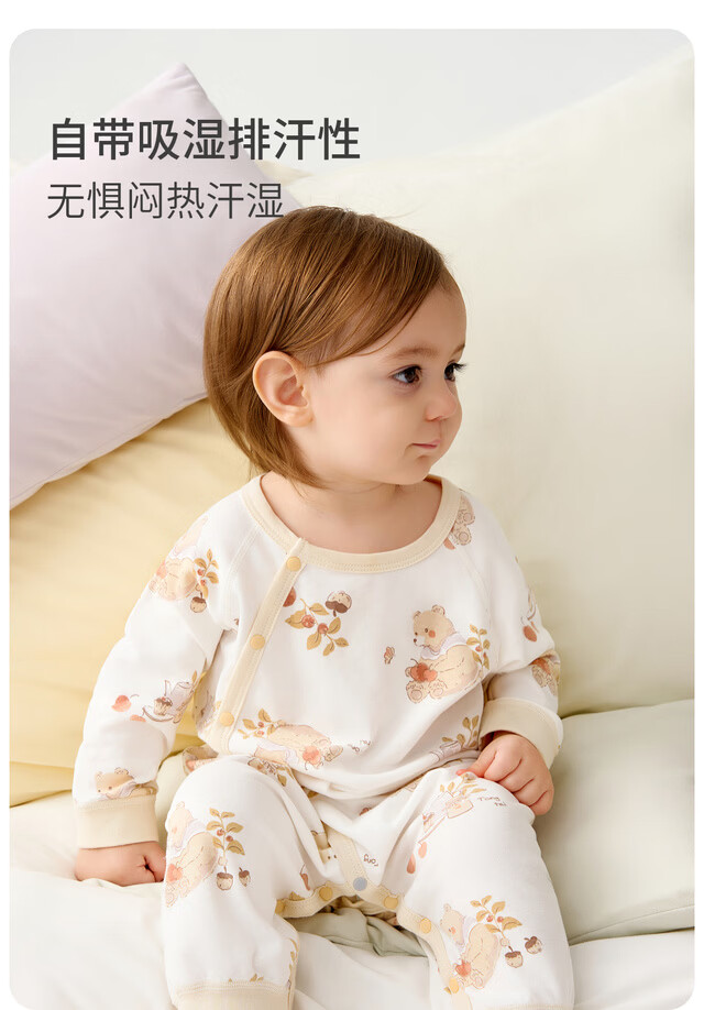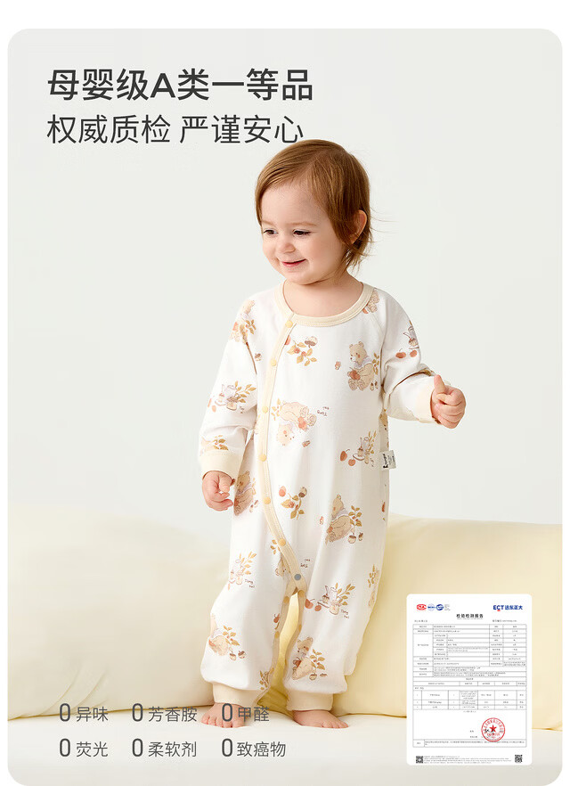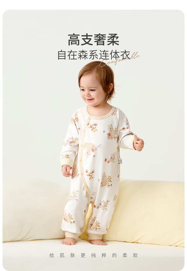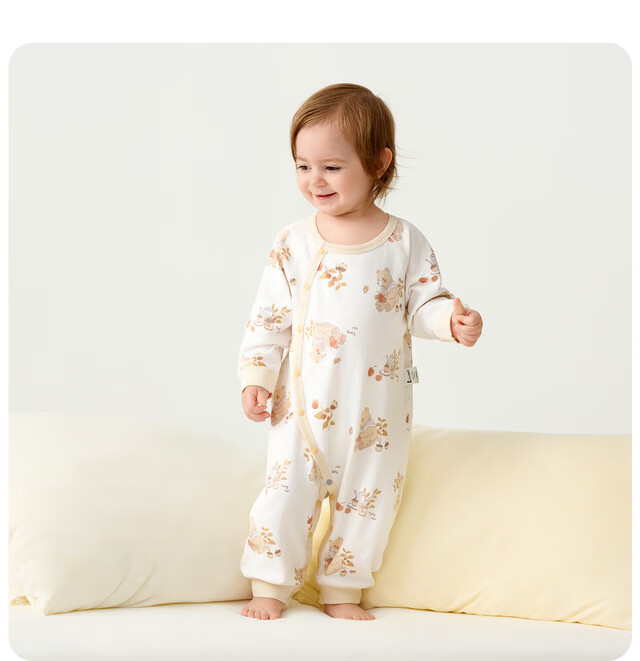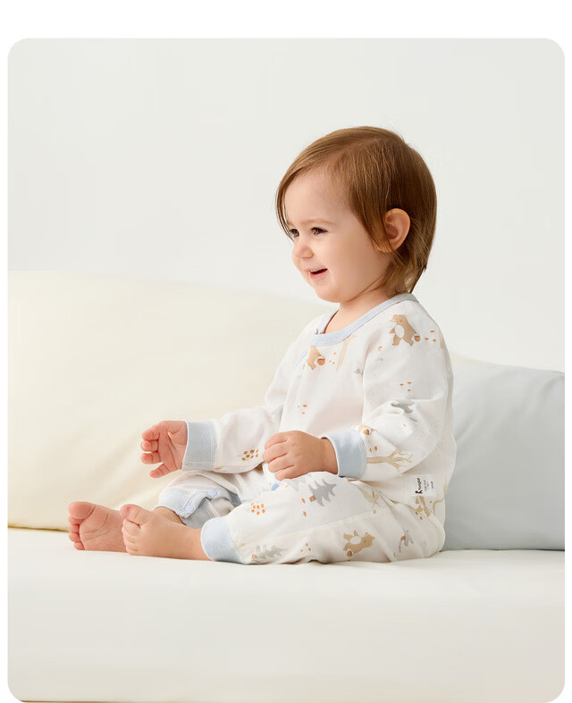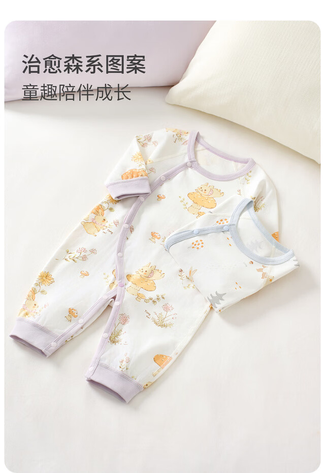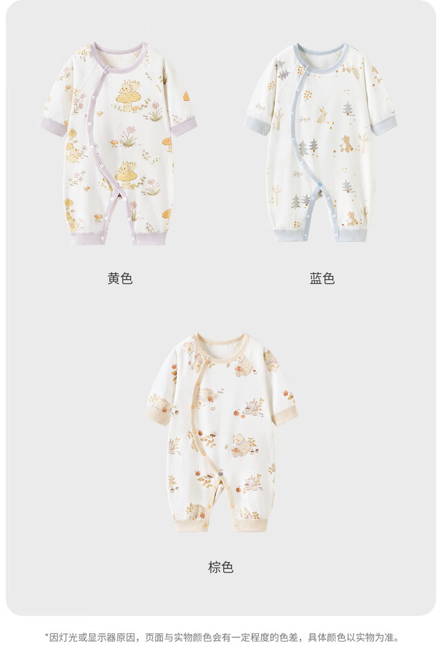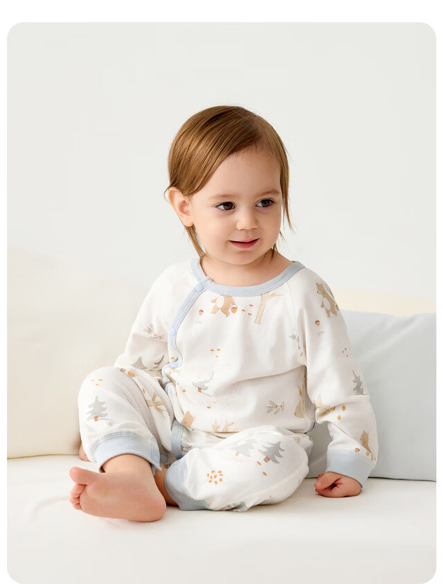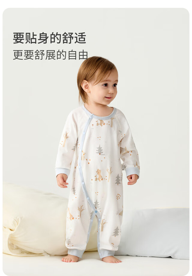 童泰婴儿连体衣春秋季纯棉宝宝衣服新生儿偏开哈衣爬服睡衣蓝色73cm