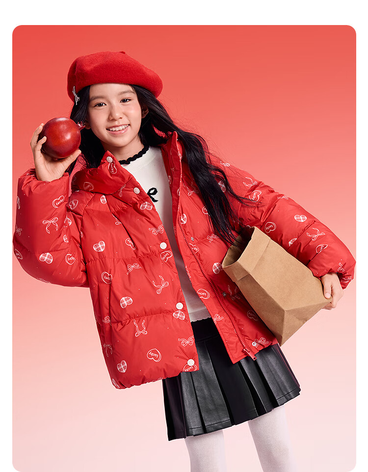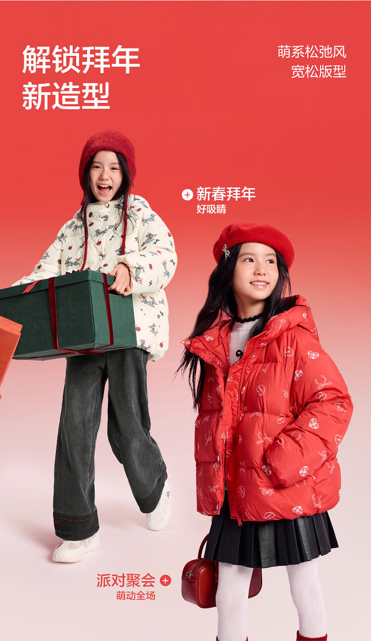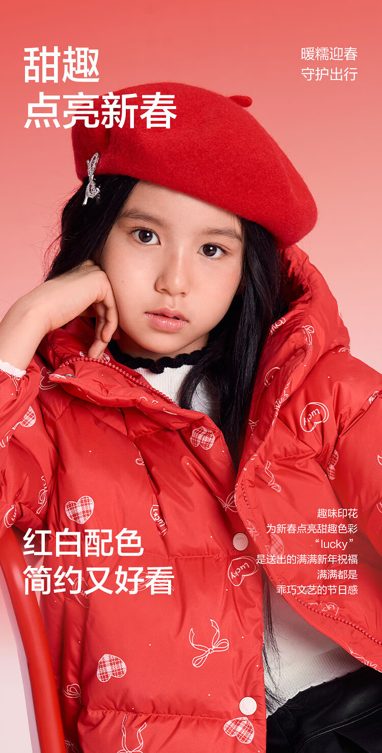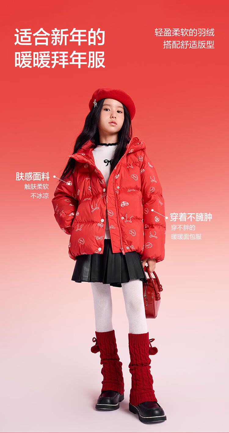 巴拉巴拉童装儿童羽绒服女童2025新款春装红色拜年服甜美外套大童新年衣服