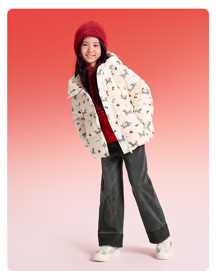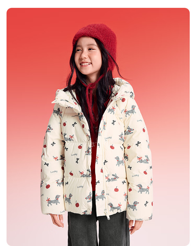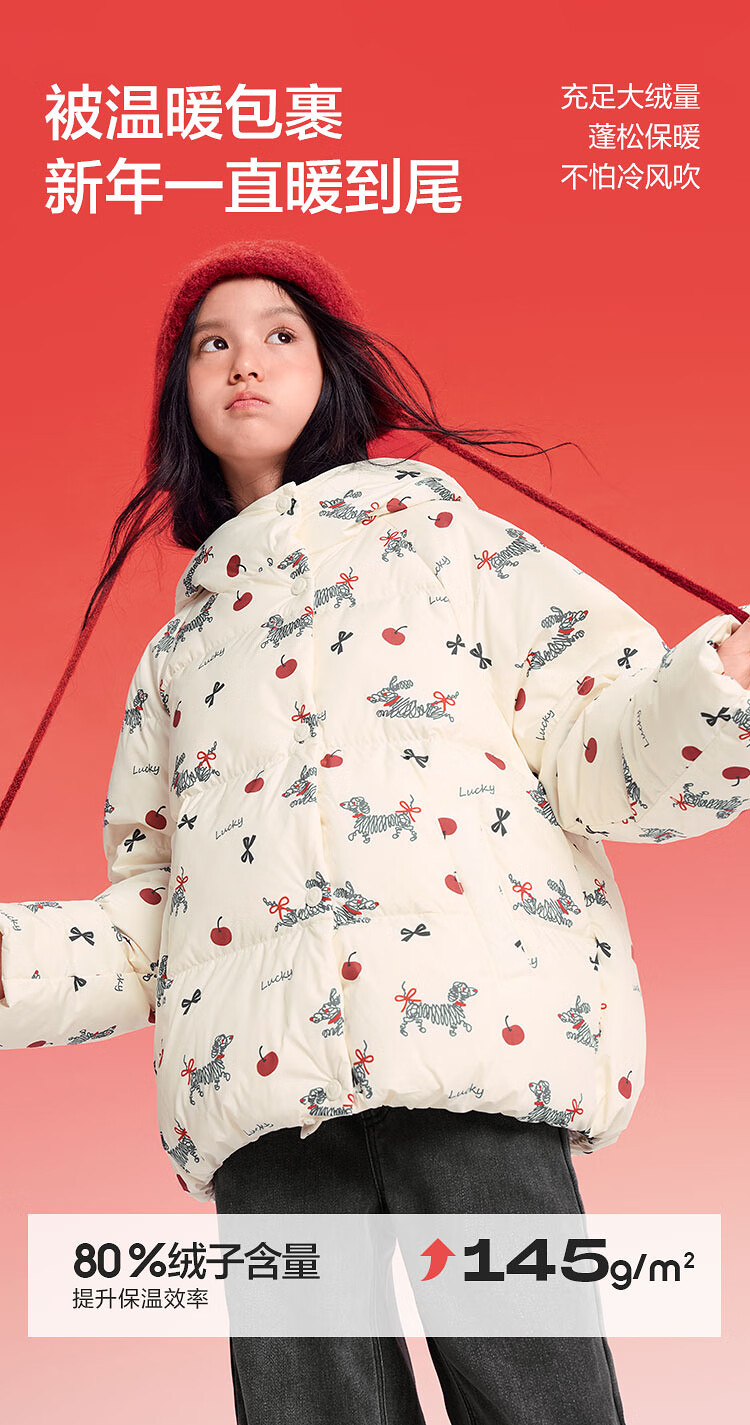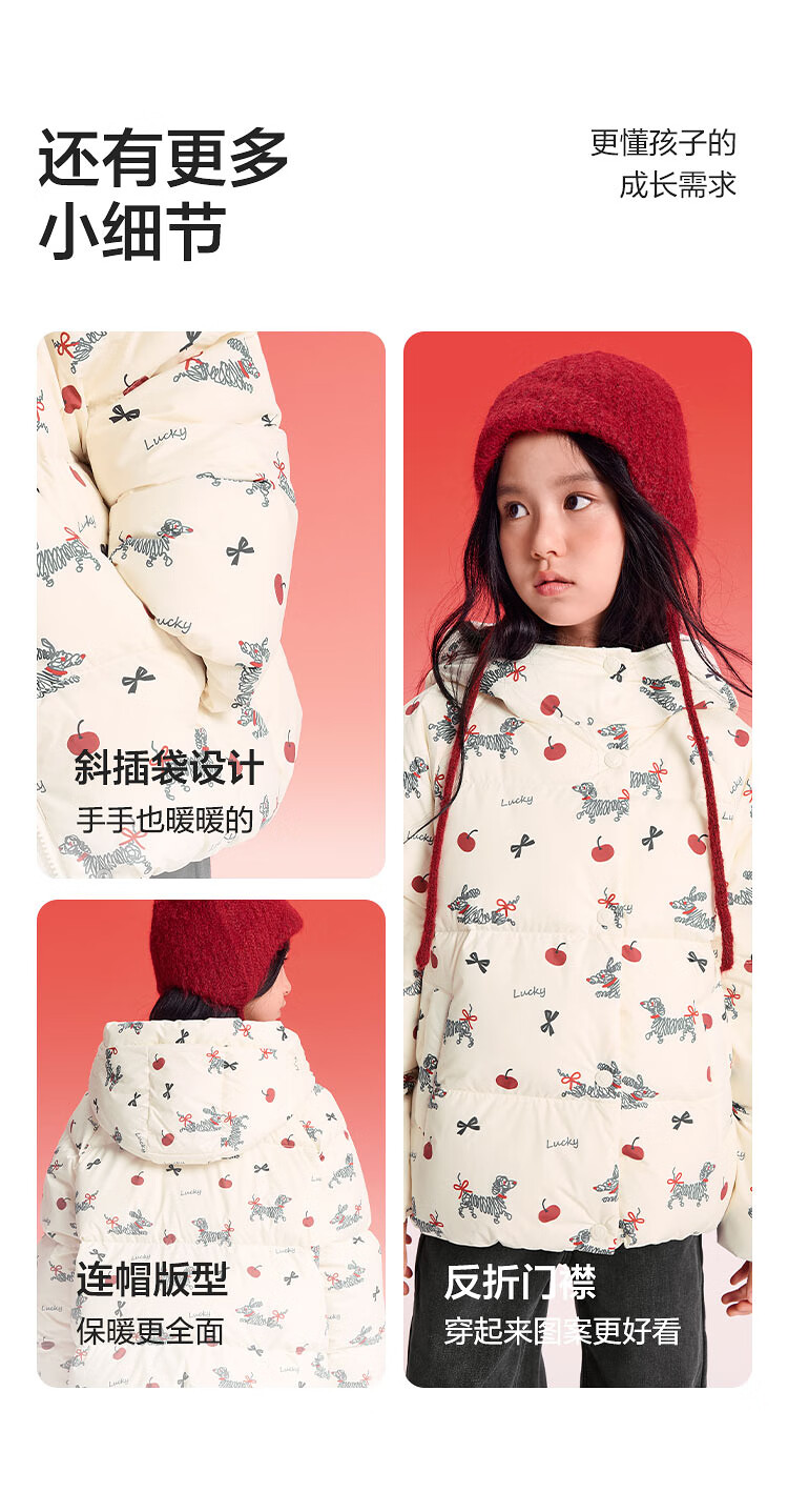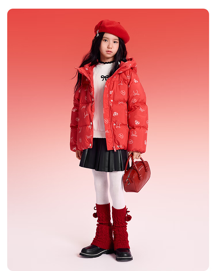 巴拉巴拉童装儿童羽绒服女童2025新款春装红色拜年服甜美外套大童新年衣服