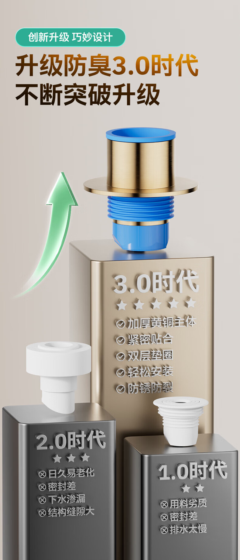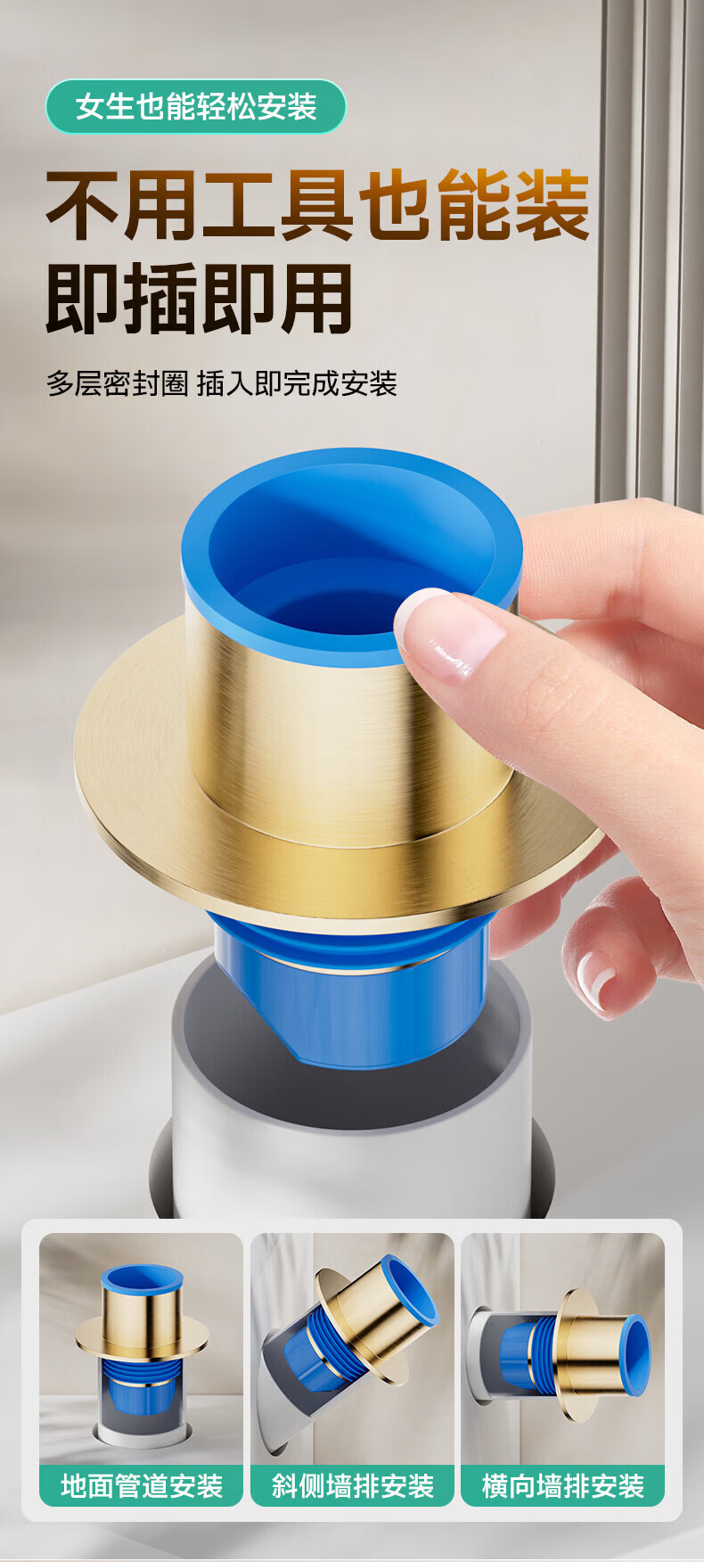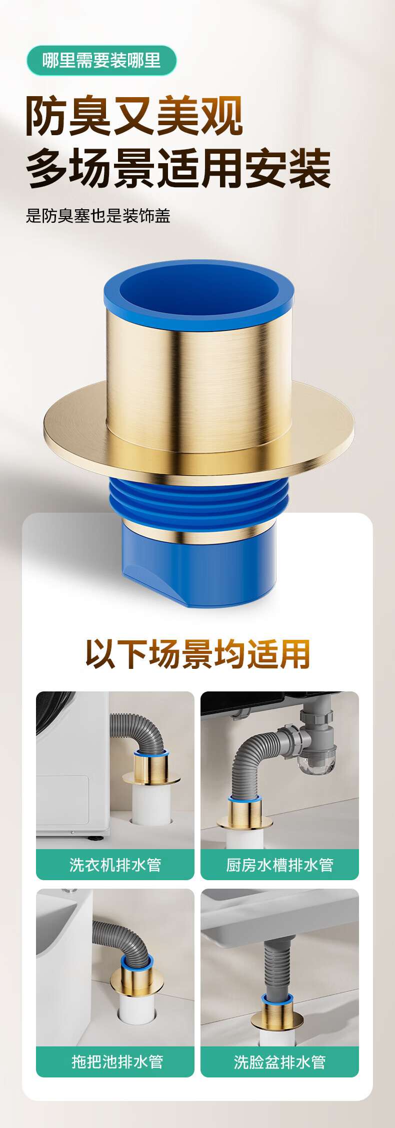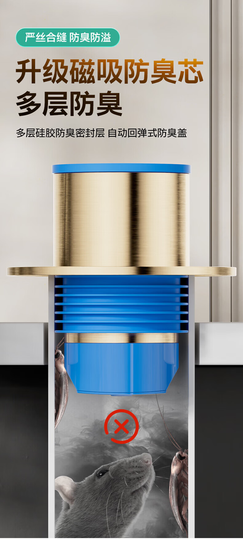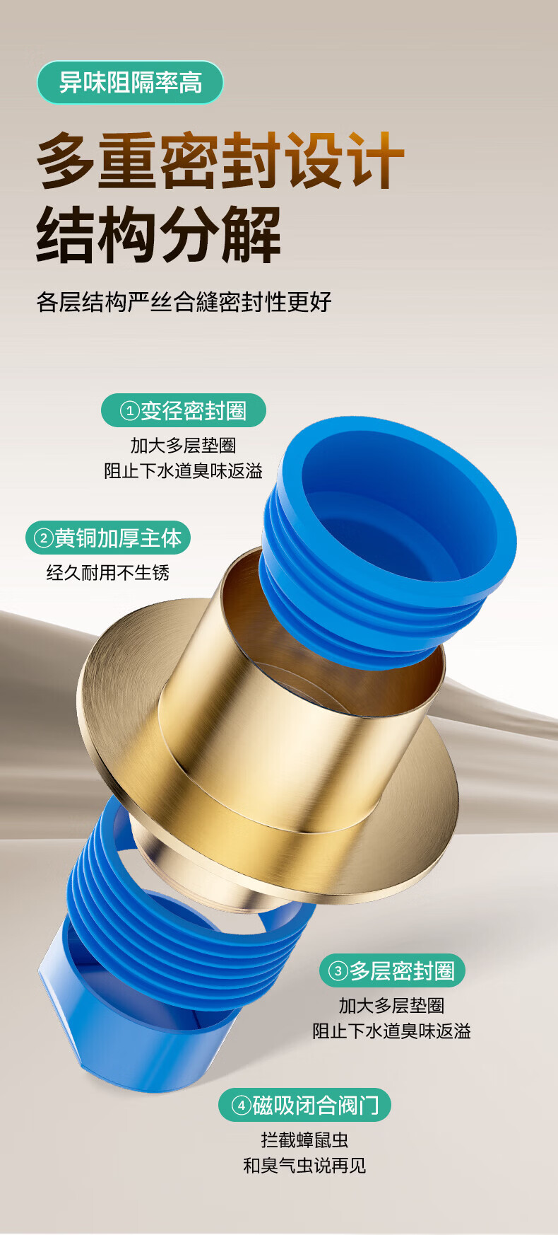 九牧地漏黄铜奶油风干湿区地漏卫生间厨房密封防臭大排量地漏92448