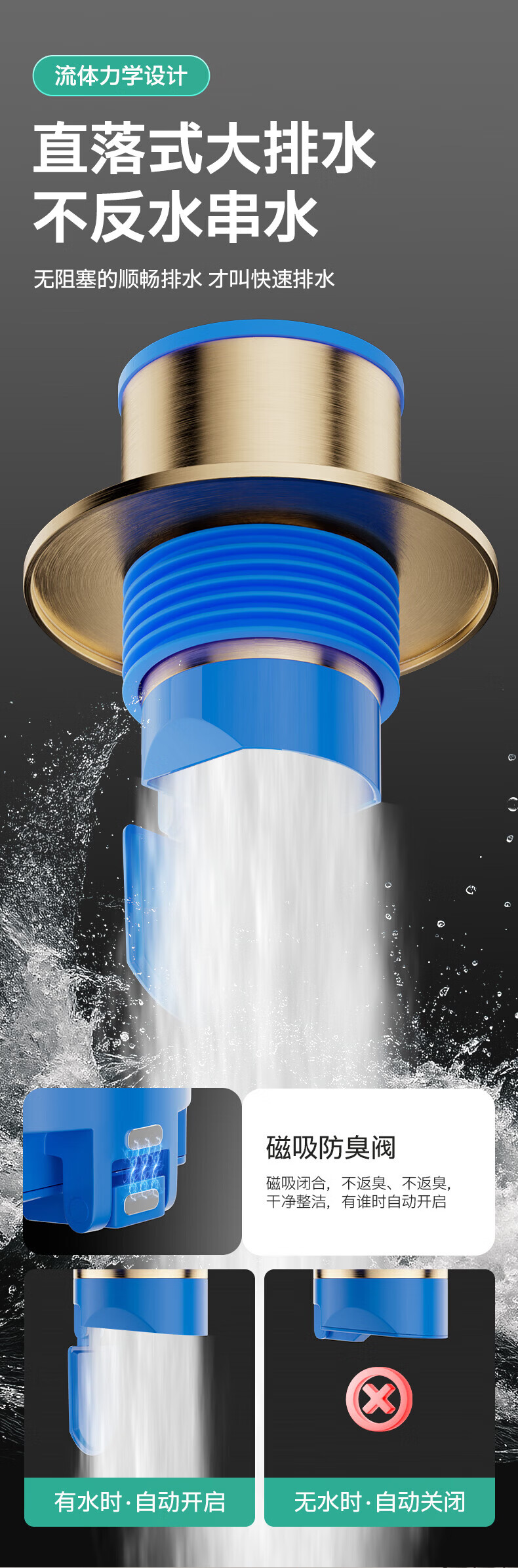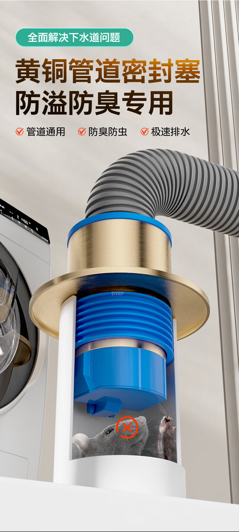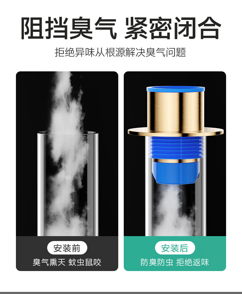 Jeonestan德国黄铜下水管道防返臭厨房洗菜盆止逆阀排水封口盖密封塞圈 【枪灰色】不锈钢防臭塞-1个装