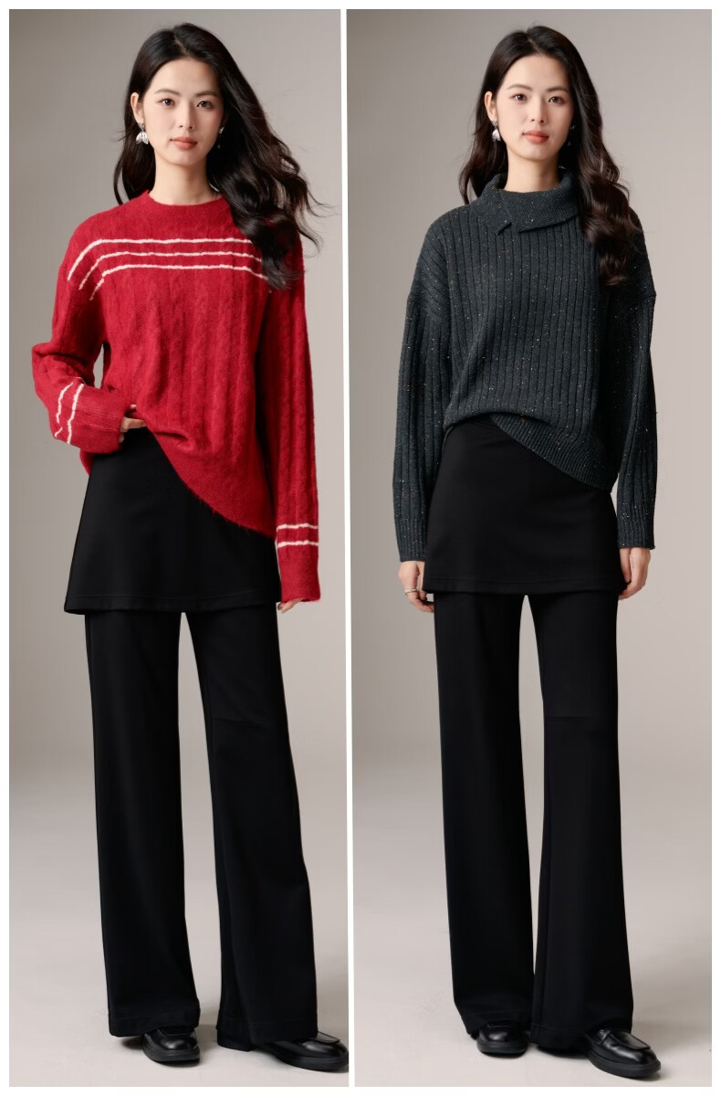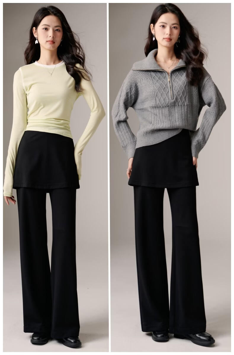 晚白【新品】遮胯显瘦屁帘裙裤2026春款假两件裙帘时髦洋气休闲裤 黑色 28
