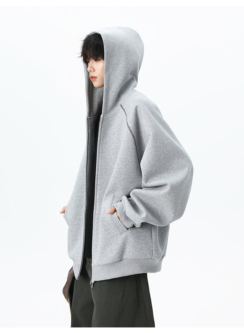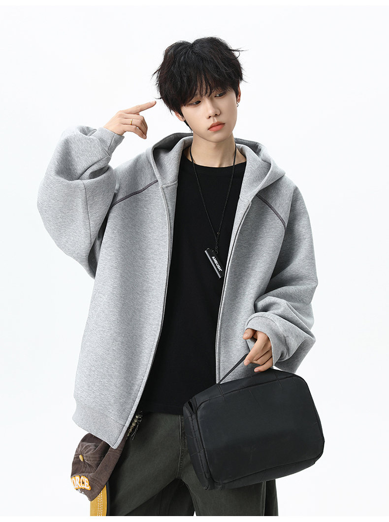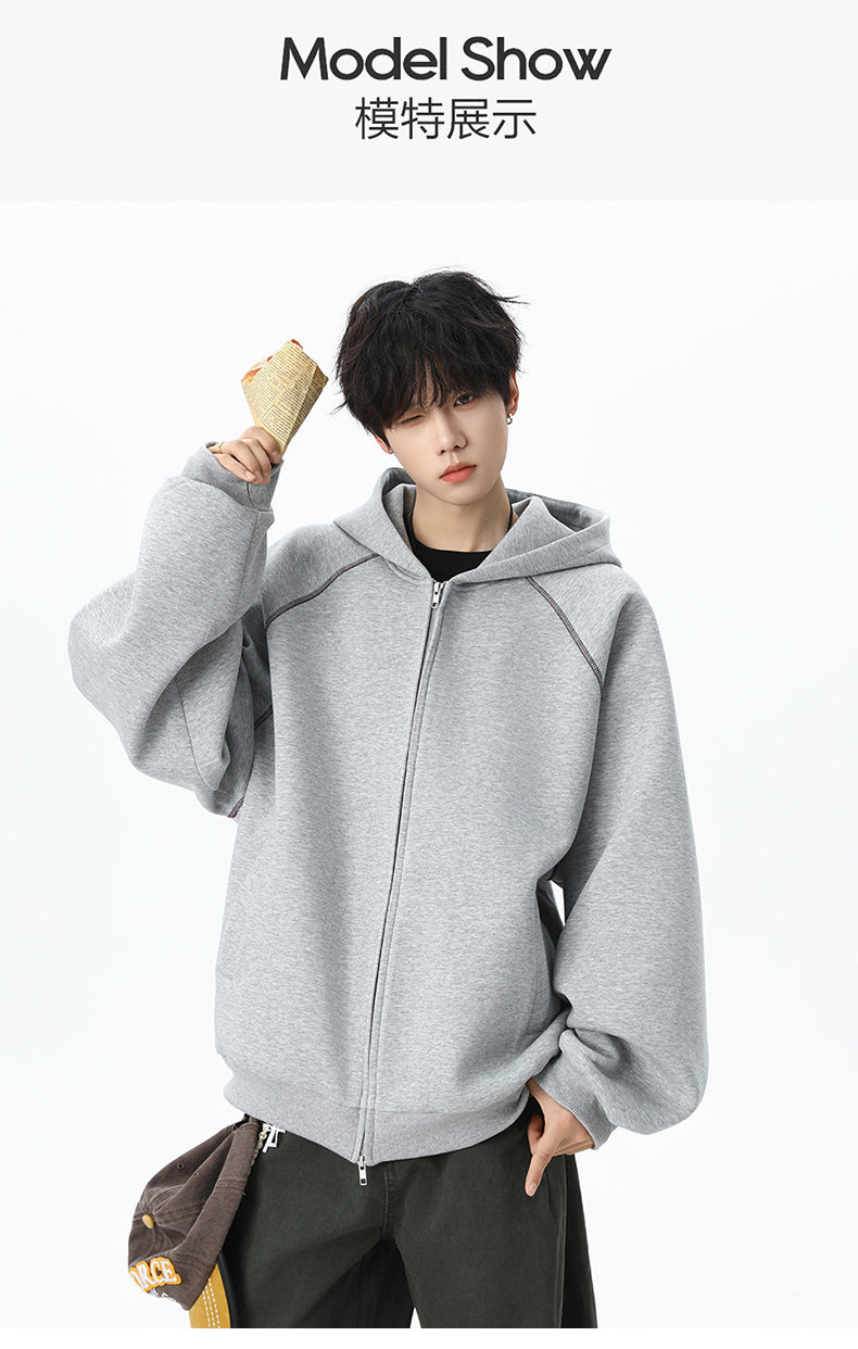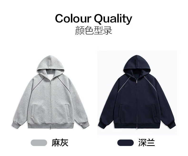 NEW OR MODE潮牌重磅开衫连帽卫衣男春季新款高街宽松拼接帽衫休闲情侣夹克衫 深兰色【高品质】 XL 【建议125-145斤】