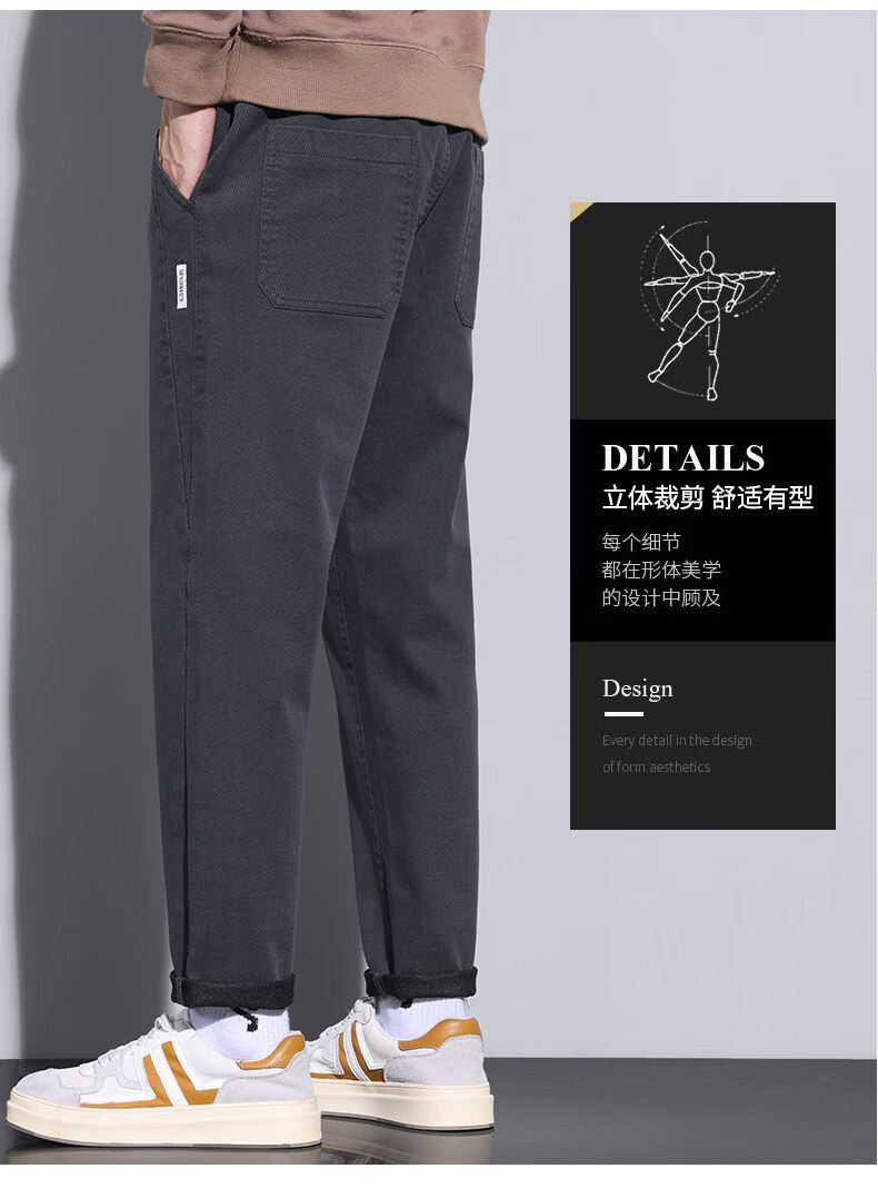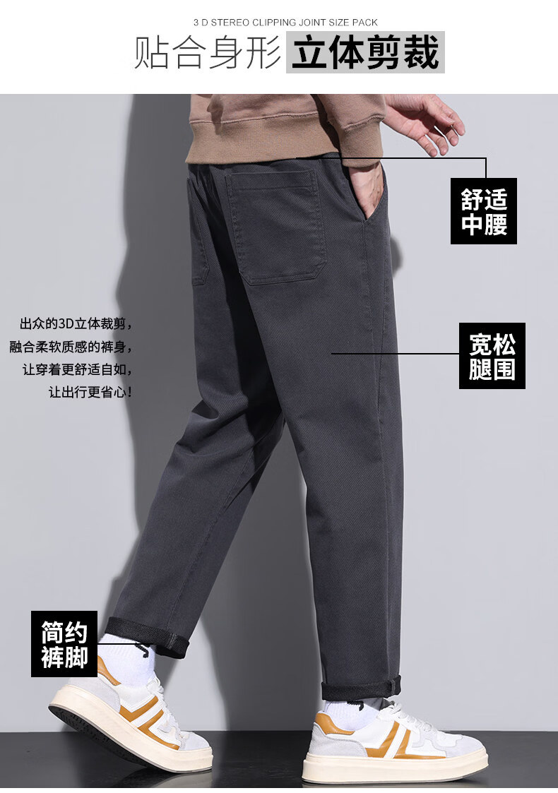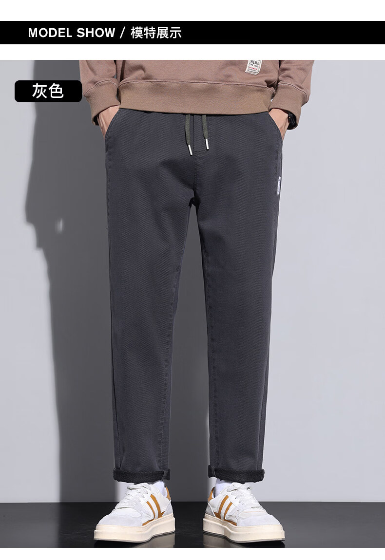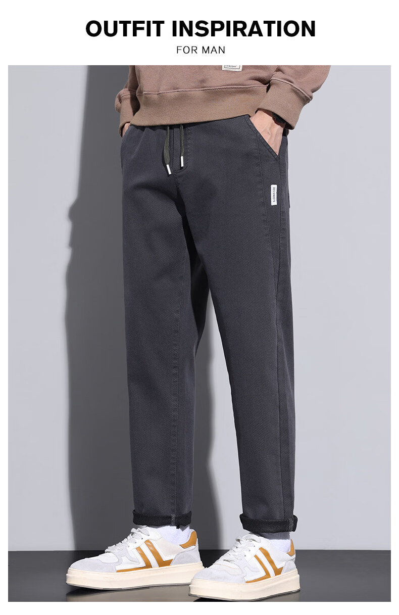 真维斯(Jeanswest)2026新款宽松男士休闲裤直筒裤子男百搭简约舒适抗皱棉弹休闲长裤 灰色 【官方正品】 M 【建议95-110斤】