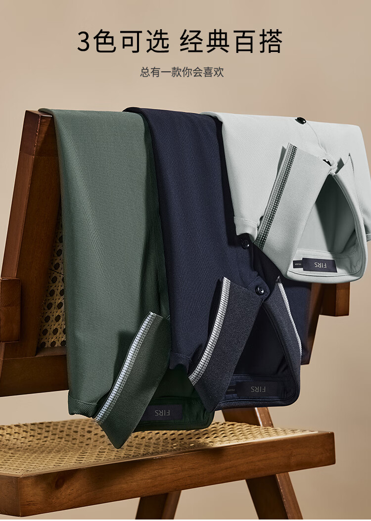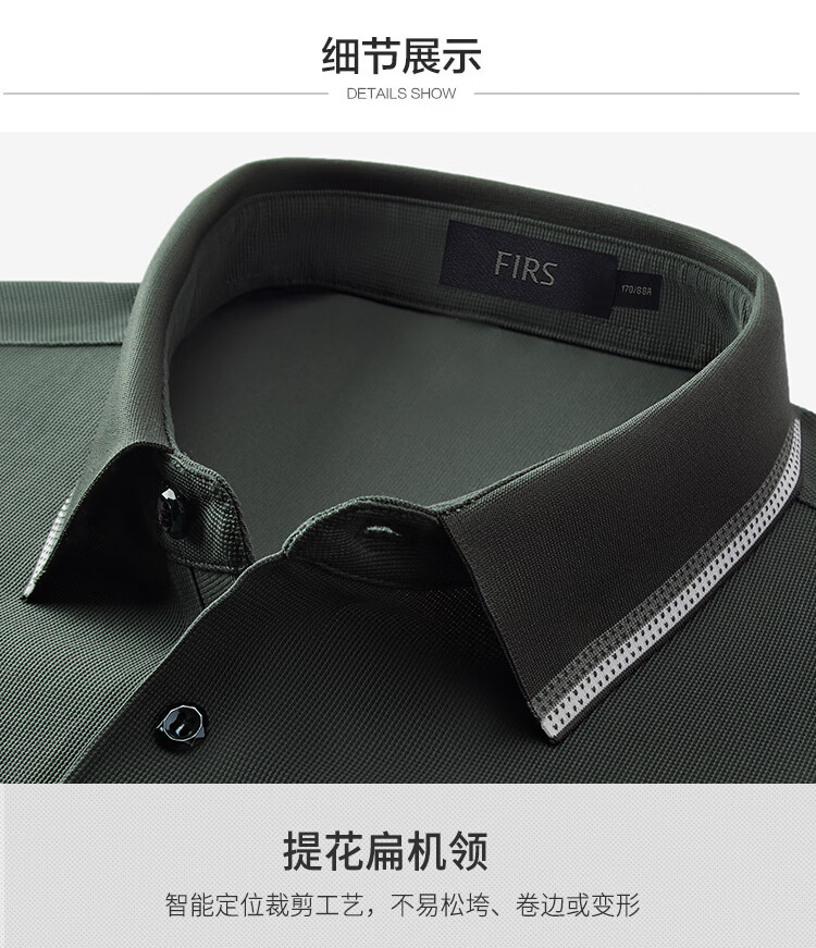 杉杉(FIRS)【定织凉感肌理】男装夏季款领袖撞色修身短袖男式Polo衫T恤男 浅灰 M 170/88A