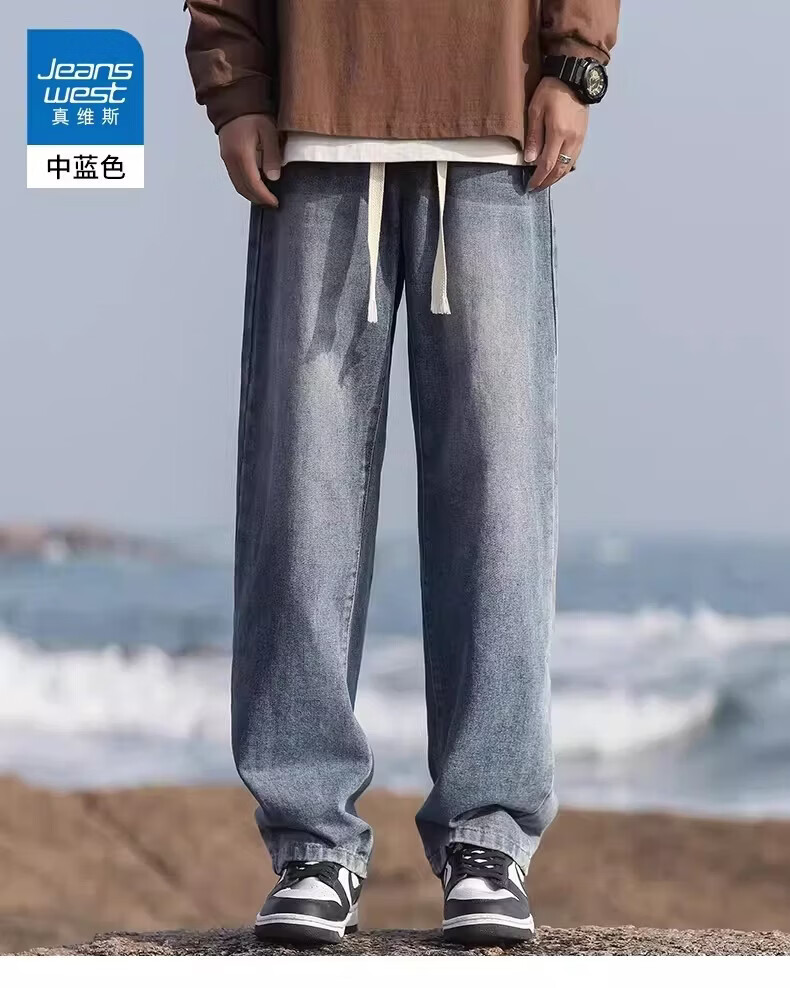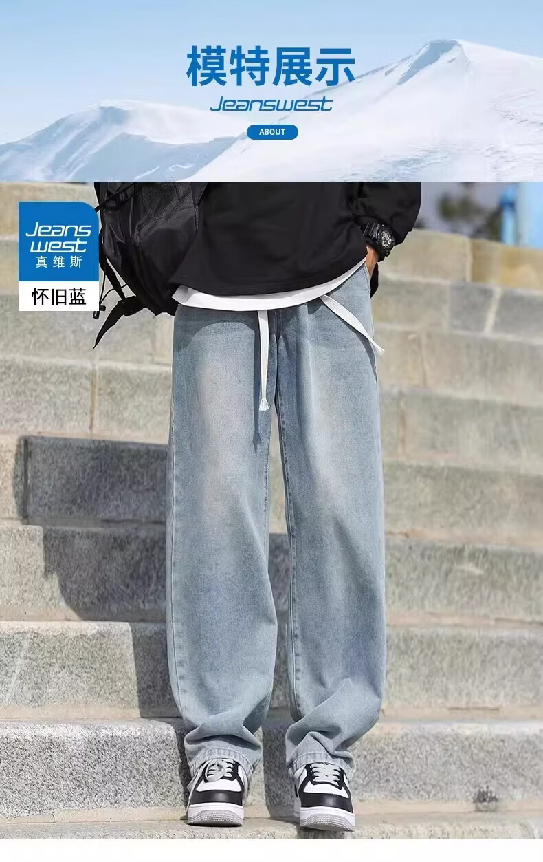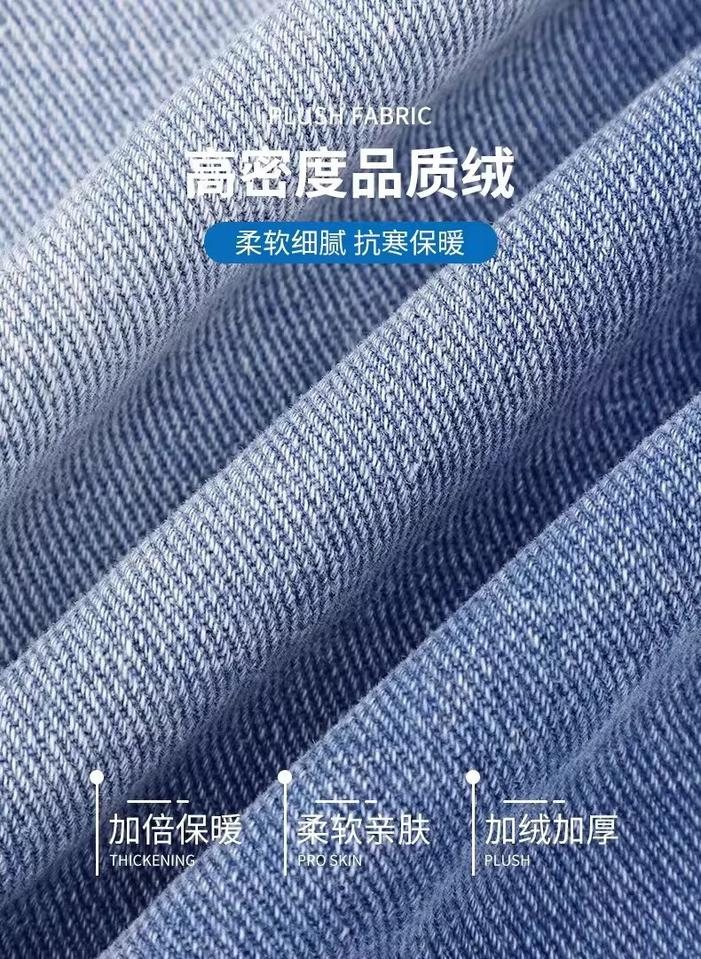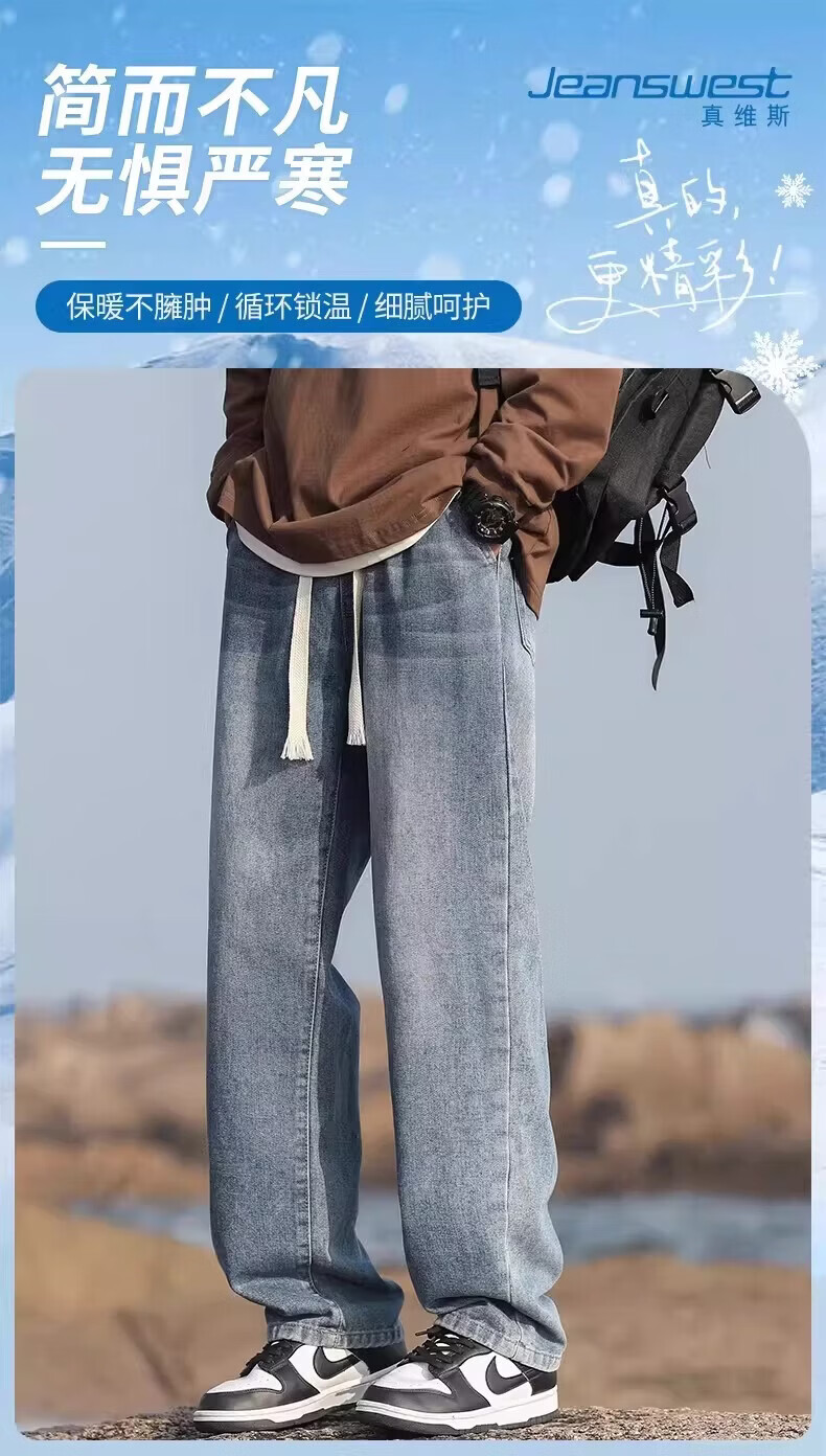 真维斯(Jeanswest)加绒牛仔裤男士冬季新款宽松直筒长裤美式复古休闲加厚裤子 复古蓝常规 S 【建议90-105斤】