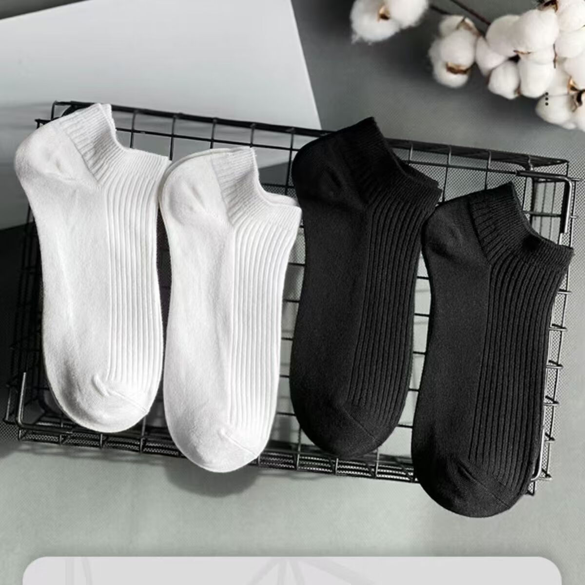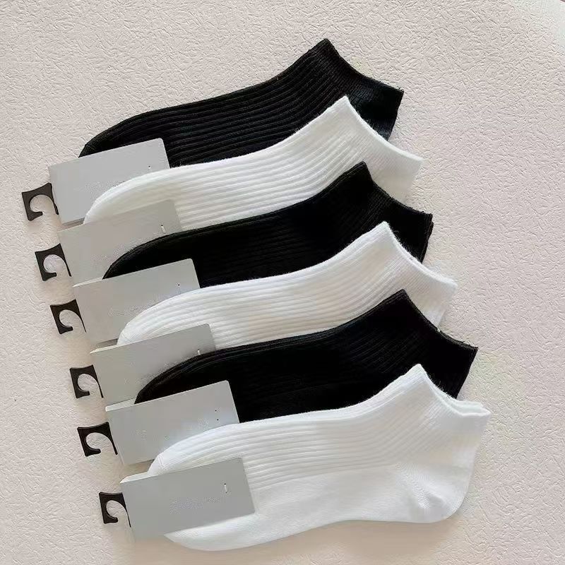 caramella男女短中长筒袜子黑白灰纯色舒适棉袜情侣袜四季款透气袜子 全白 5双 均码 (短筒,男女同款)