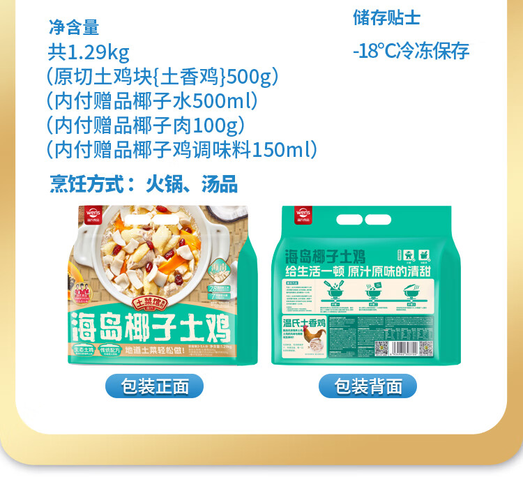 温氏110天椰子鸡火锅套餐2-3人份2.5斤 鸡块净重1斤散养广东土鸡 冷冻