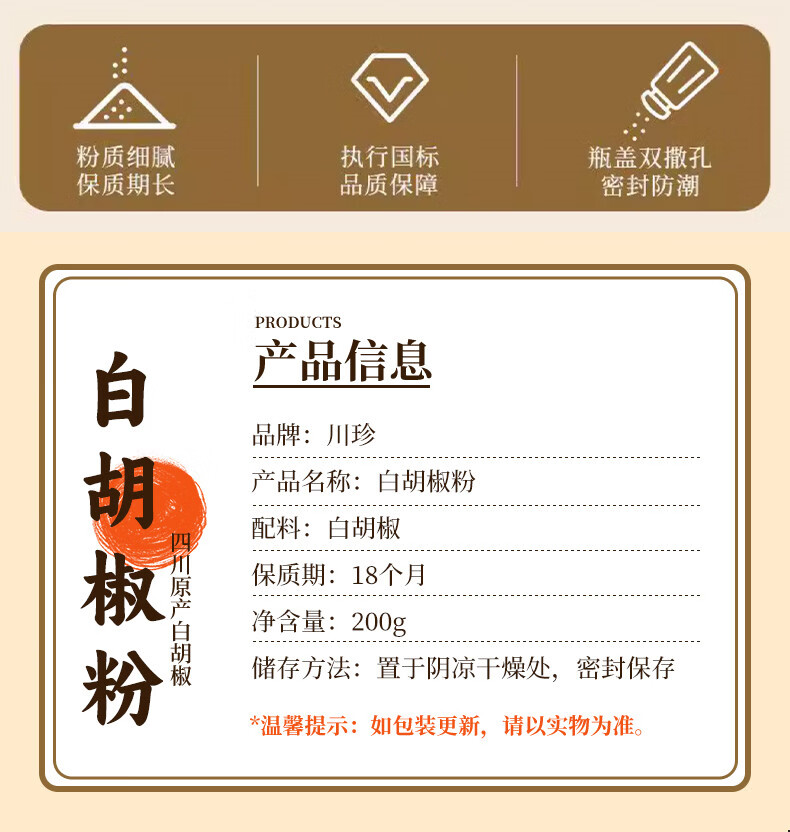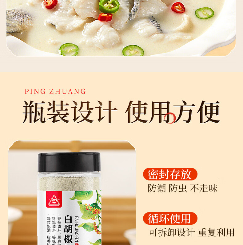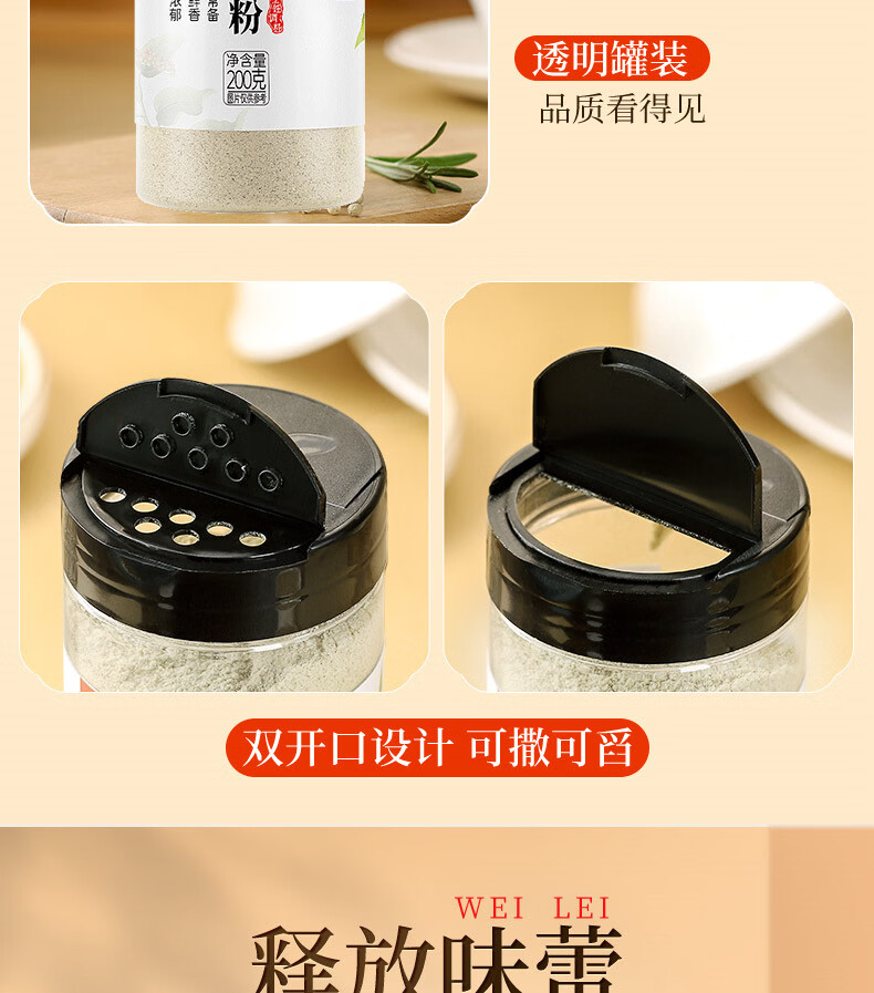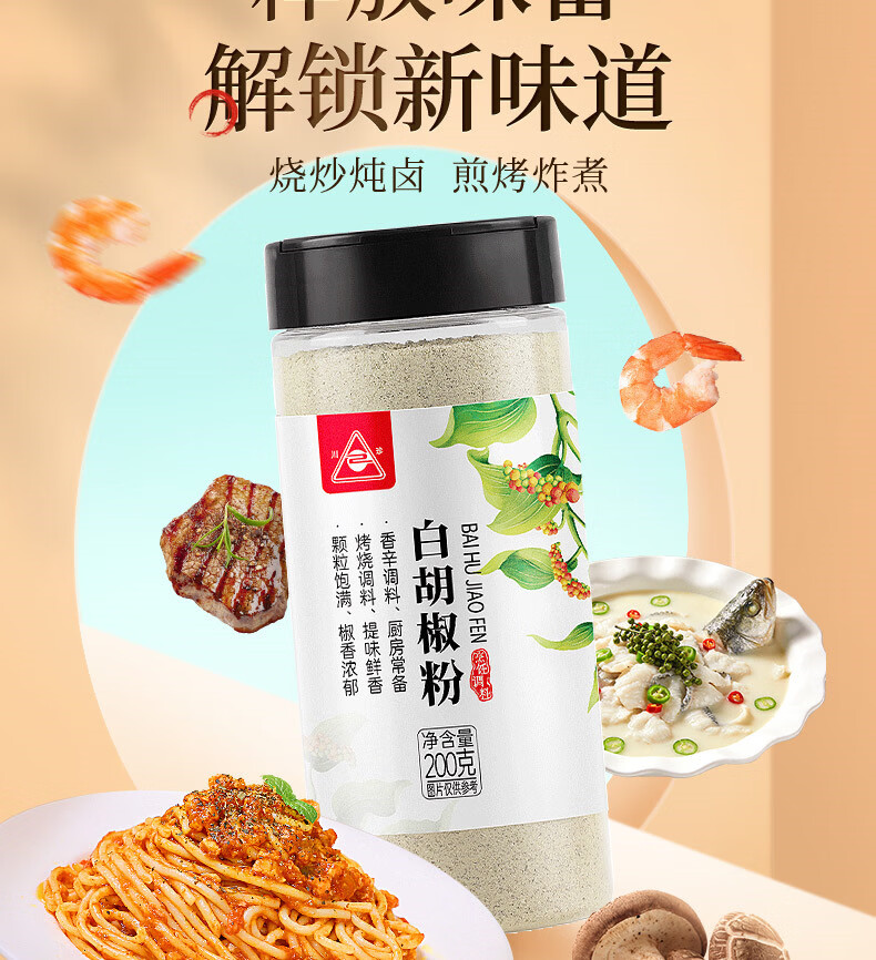 川珍白胡椒粉200g罐装 海南胡椒 烧烤料烹饪煲汤炒菜胡辣汤香辛调料