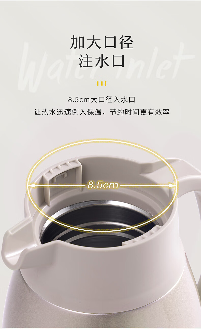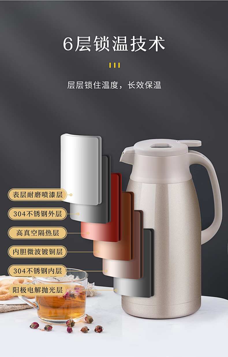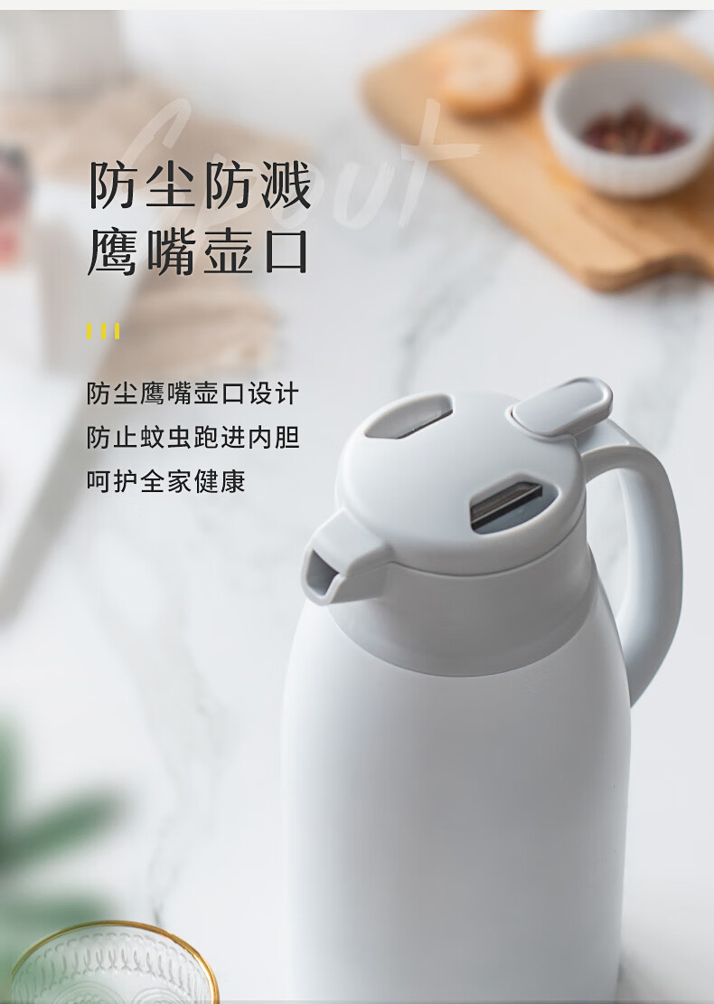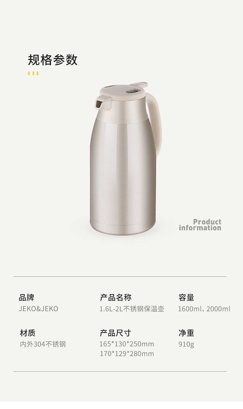 JEKO&JEKO保温壶家用304不锈钢热水瓶暖壶宿舍办公室大容量水壶 2L香槟金
