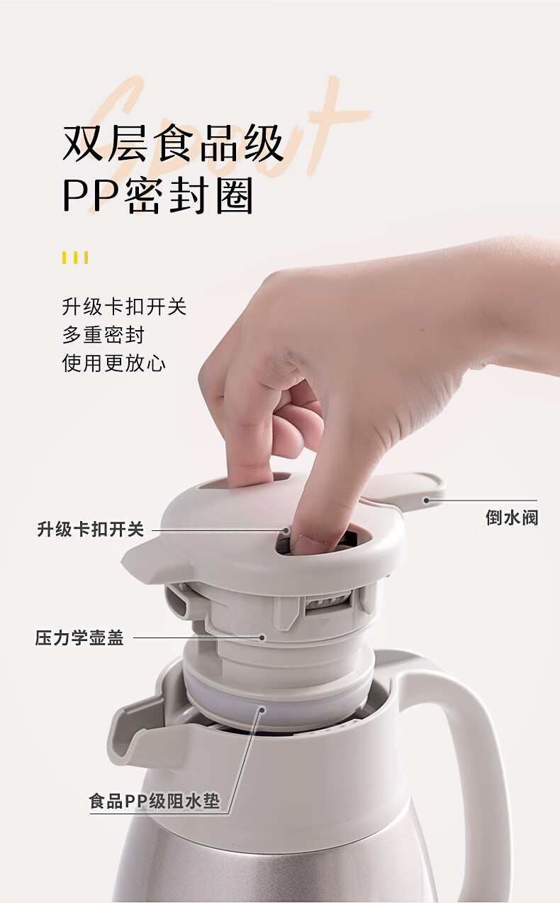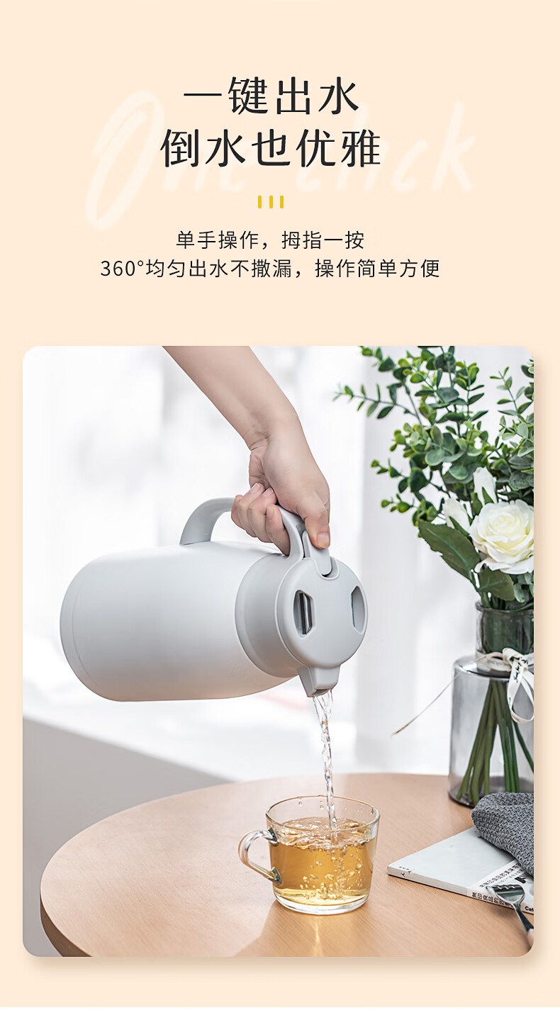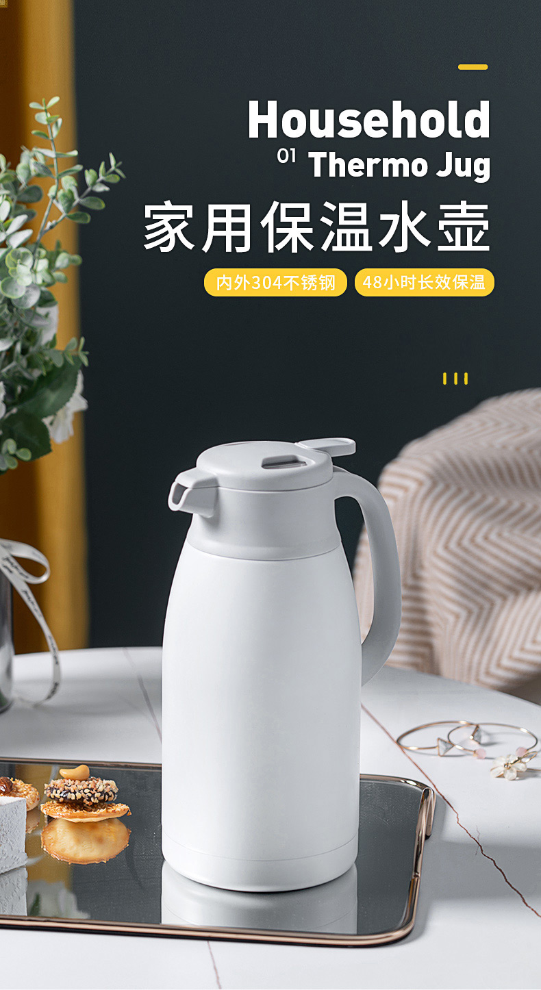JEKO&JEKO保温壶家用304不锈钢热水瓶暖壶宿舍办公室大容量水壶 2L香槟金