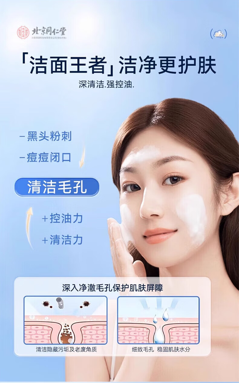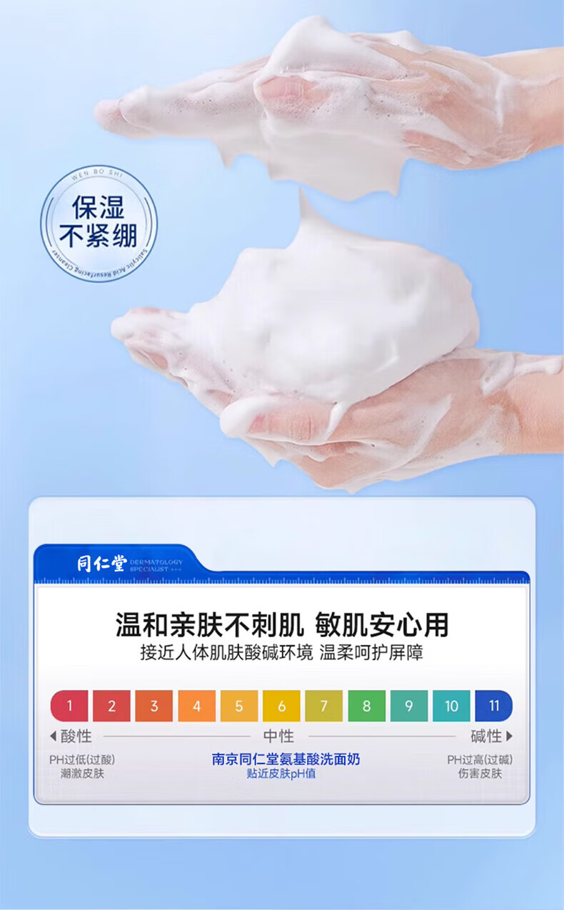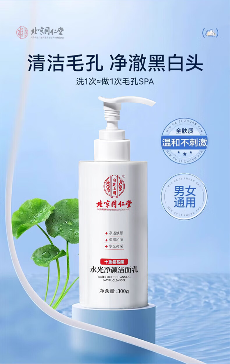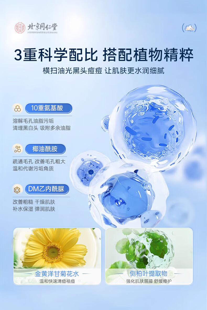 同仁堂氨基酸洗面奶男女深层清洁去黑头祛痘控油收缩毛孔洁面乳 3瓶装