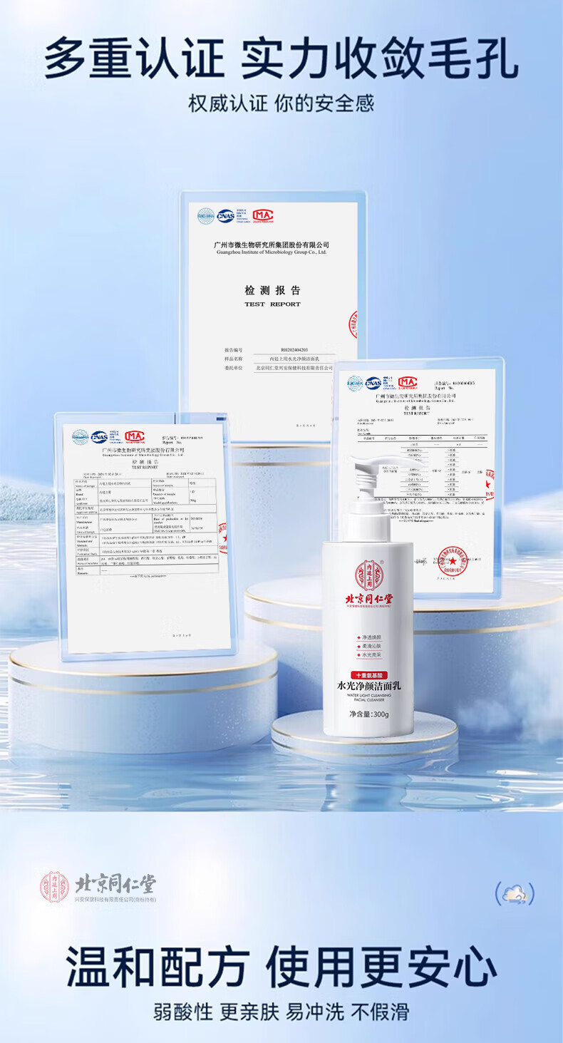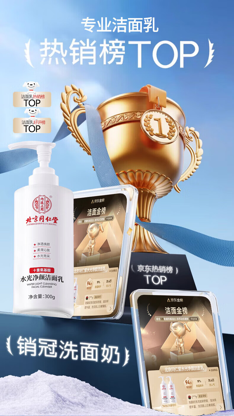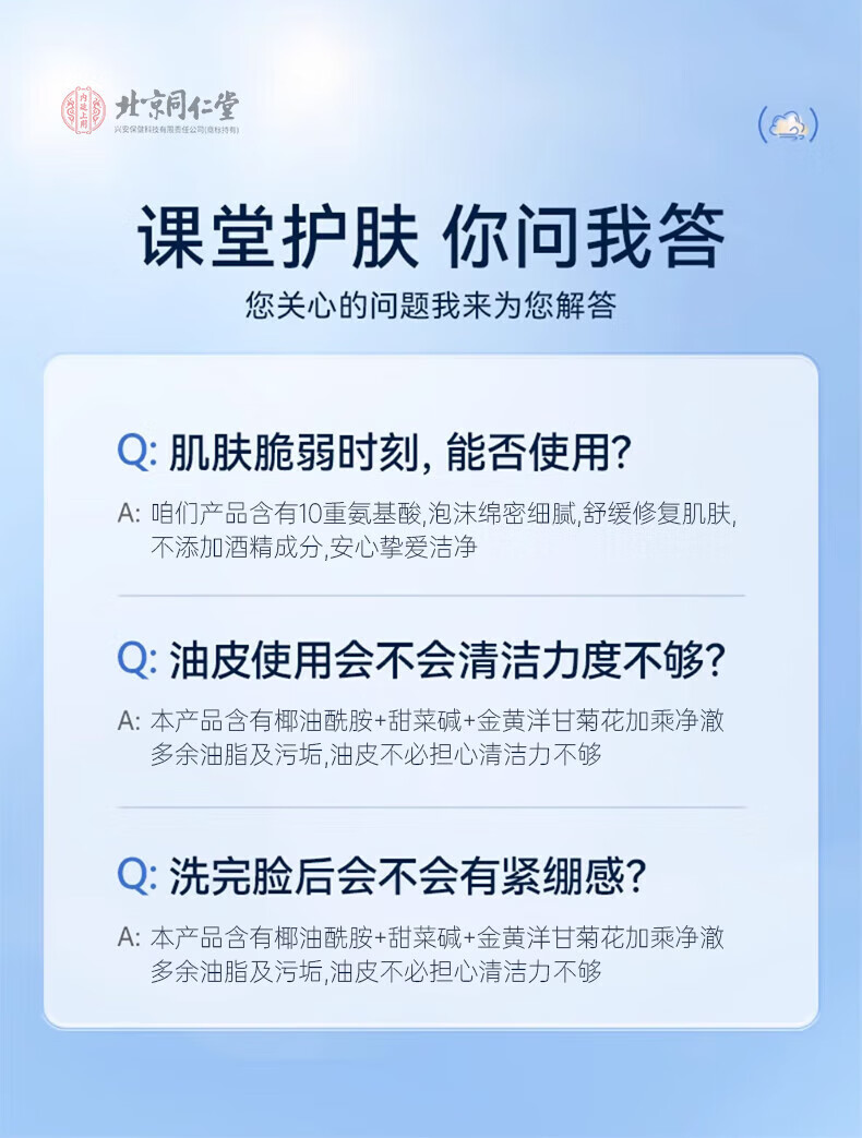 同仁堂氨基酸洗面奶男女深层清洁去黑头祛痘控油收缩毛孔洁面乳 3瓶装