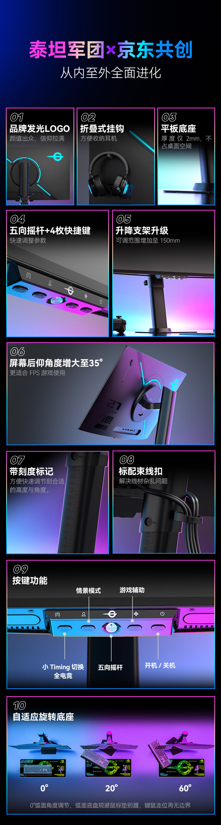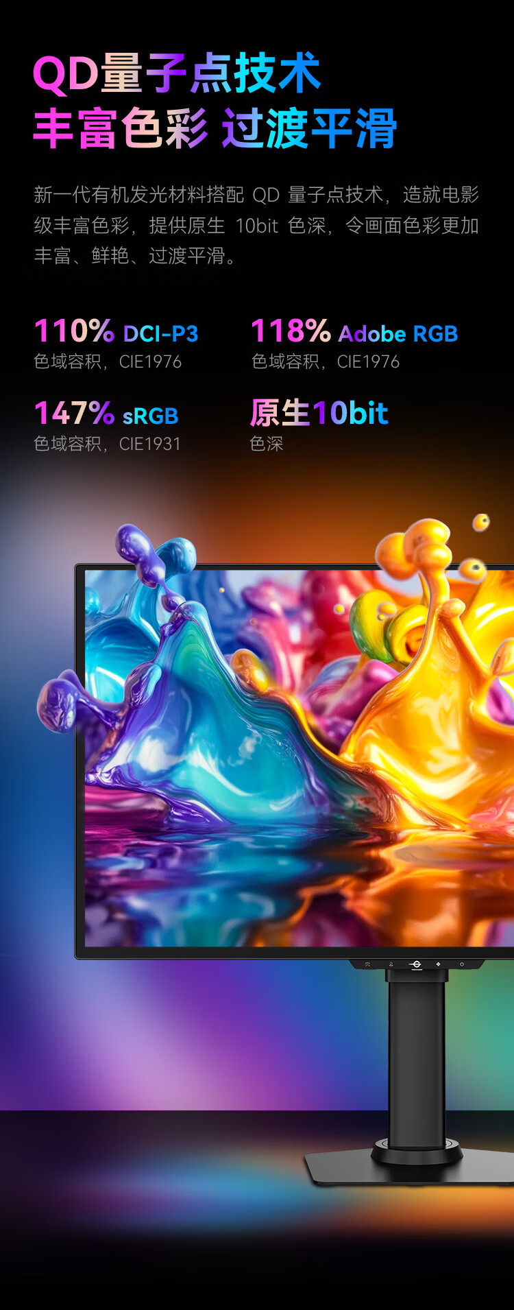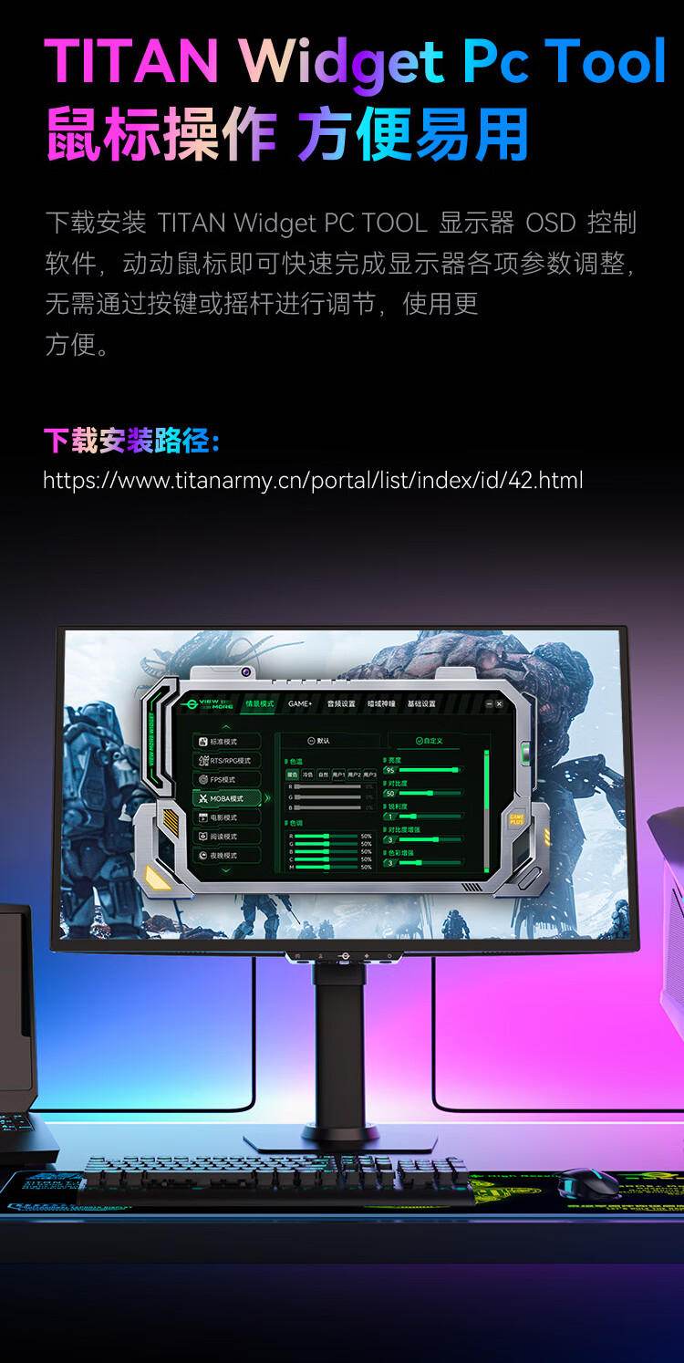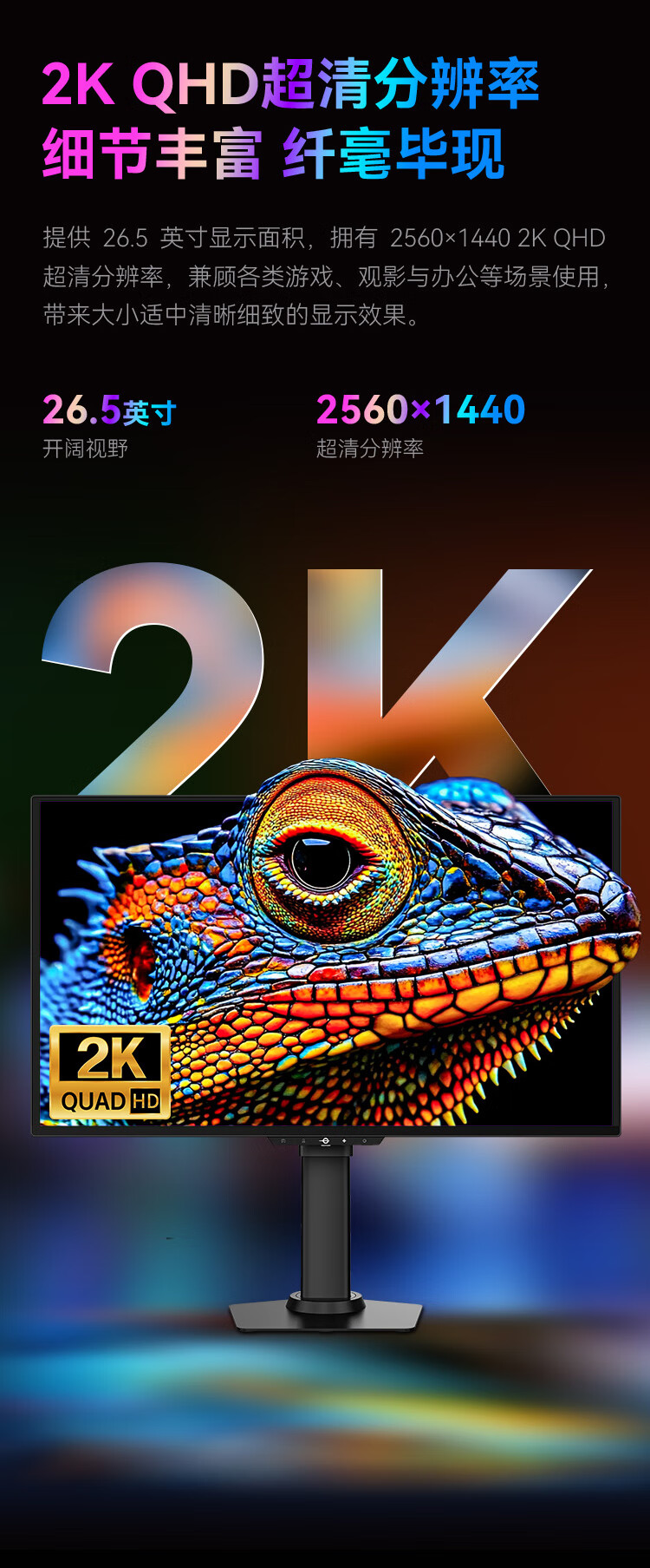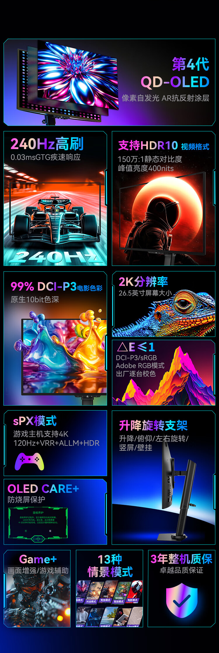 泰坦军团 26.5英寸 QD-OLED 2K 240Hz 原生10bit DeltaE≤1 硬件级低蓝光 升降旋转底座 元战 显示器G2785S