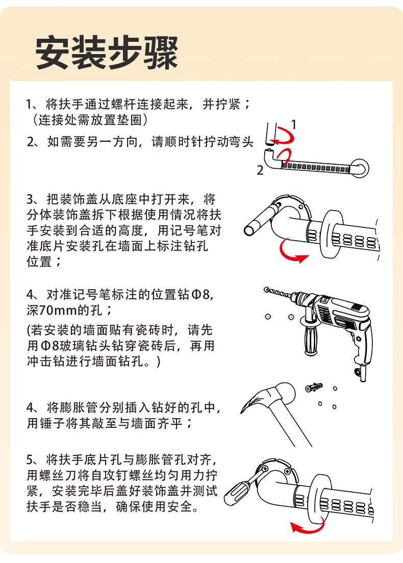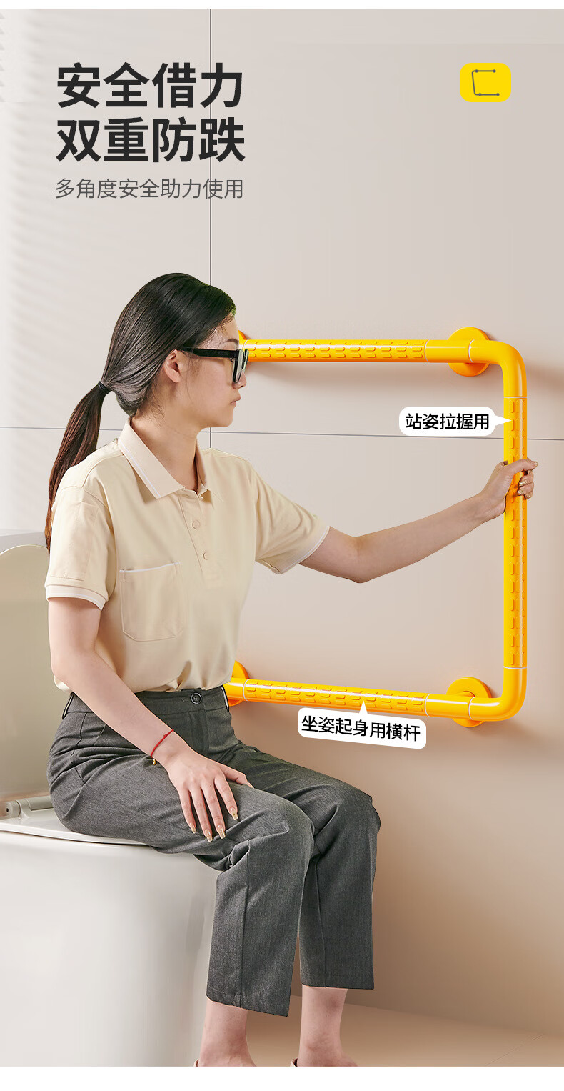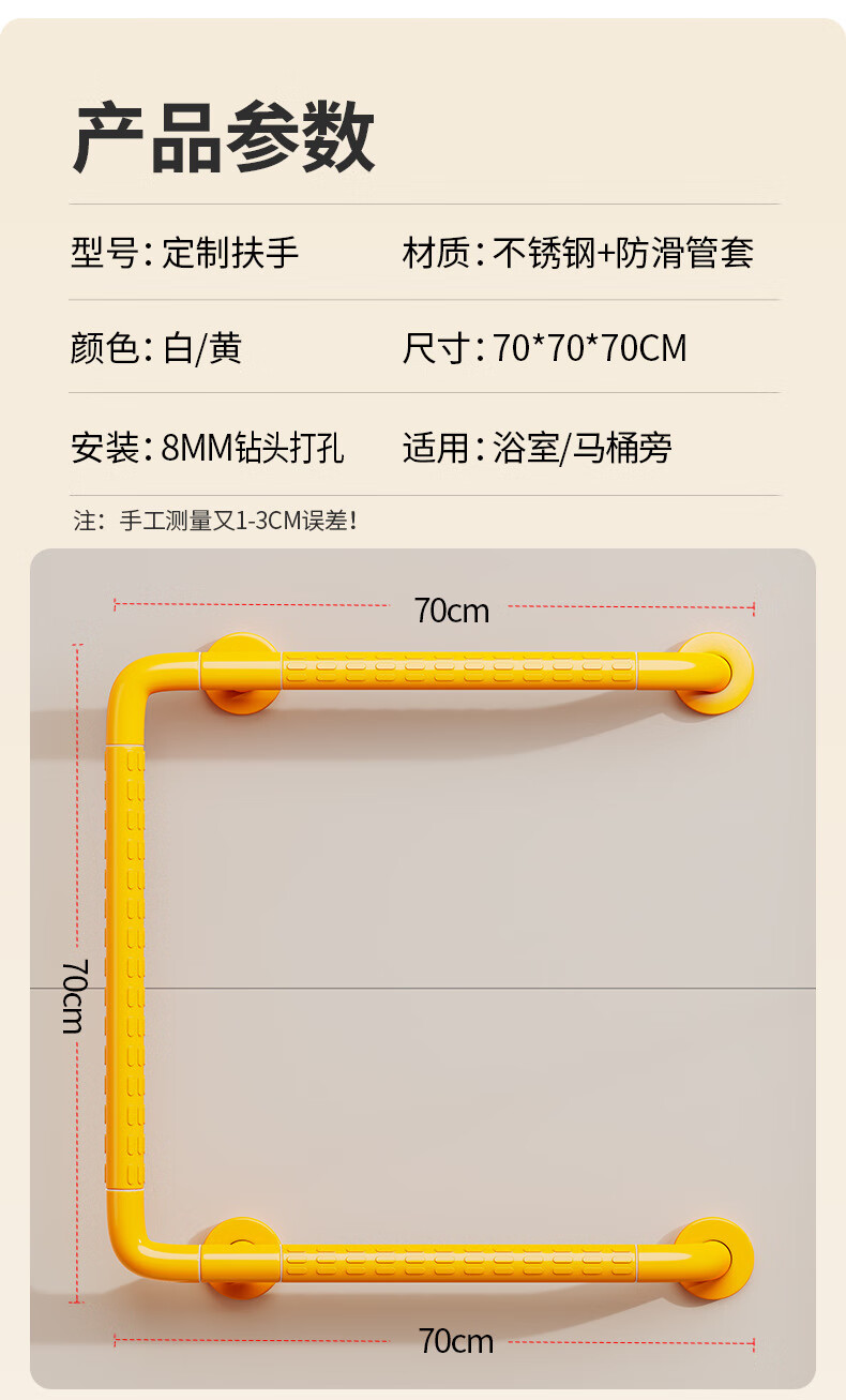 家文化(JIAWENHUA)无障碍套装卫生间马桶扶手栏杆老人安全扶手适老化改造浴室拉把手 70*70*70cm-白色 定制尺寸(不退换)