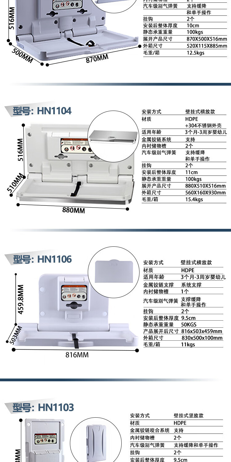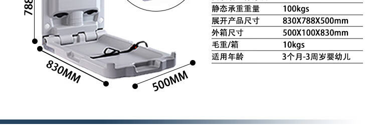 家文化(JIAWENHUA)第三卫生间儿童换尿布台床可折叠婴儿床母婴室婴儿护理台安全座椅 1101婴儿护理台灰白(横款)