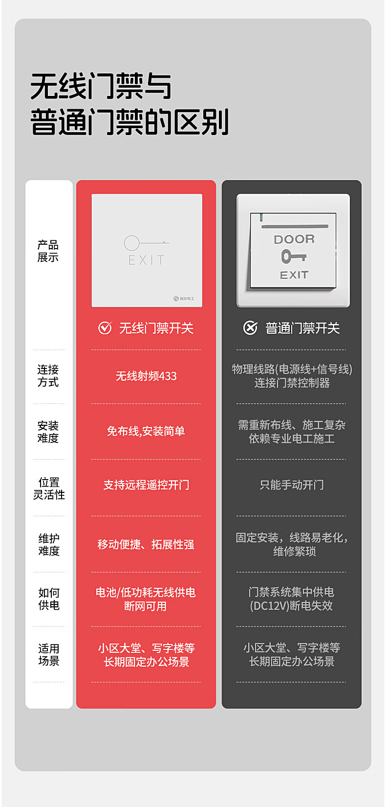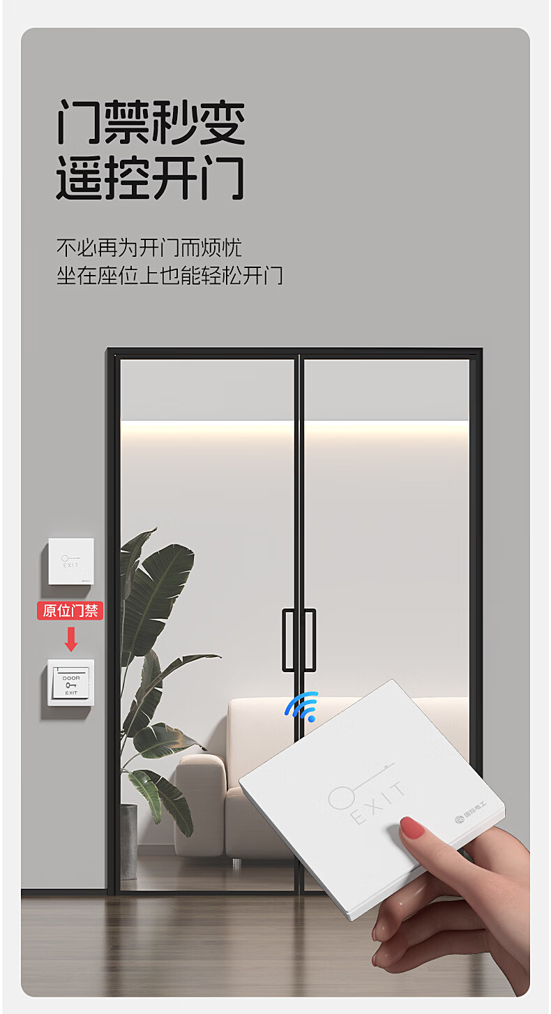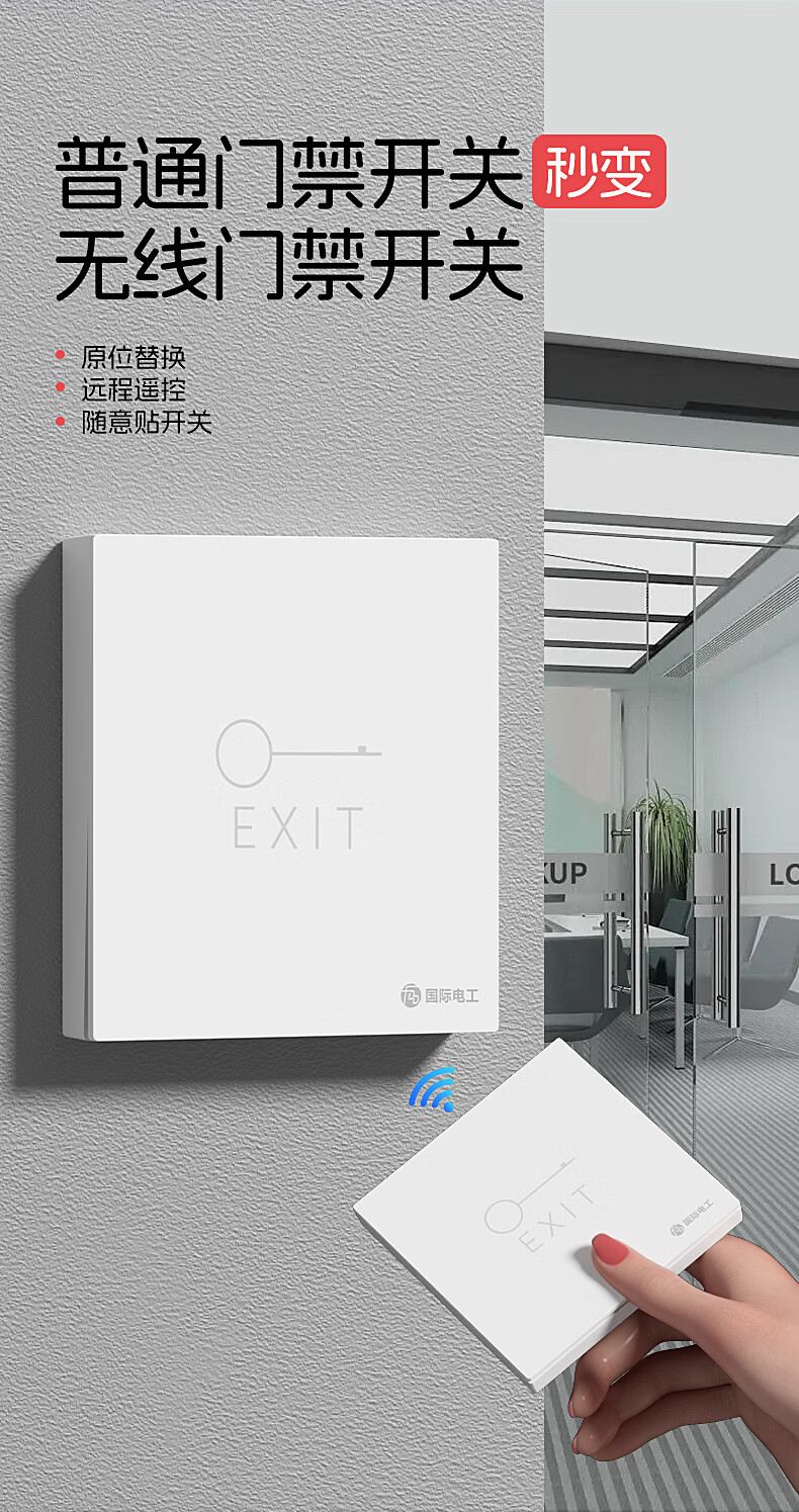 国际电工(FDD)单元门小区门禁无线遥控开关免布线220V远程智能双控随意贴面板 白色门禁暗装(1个主机开关 + 1个随意贴开关)