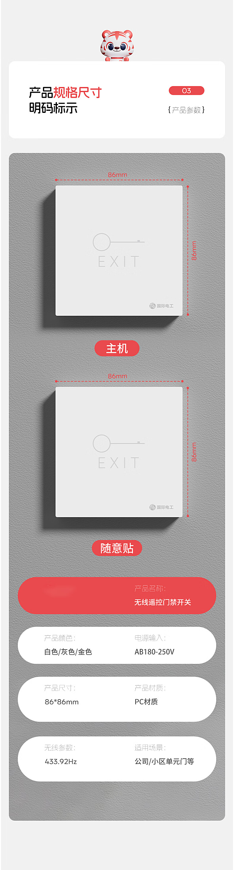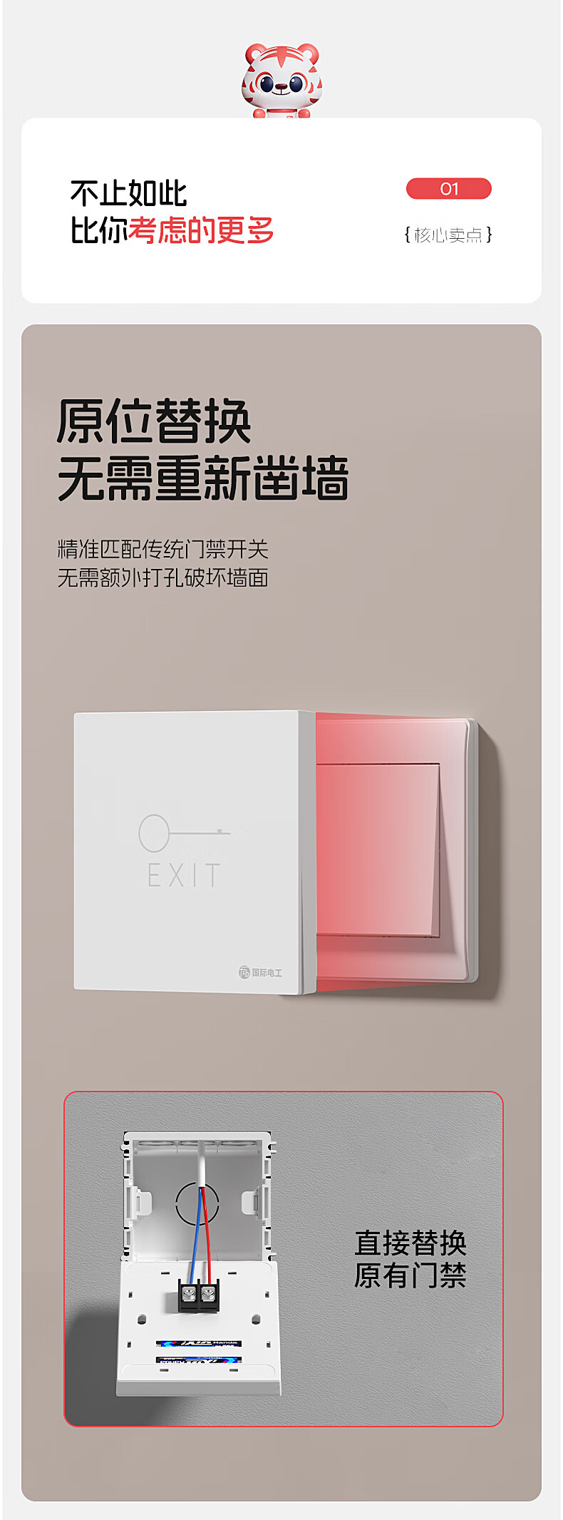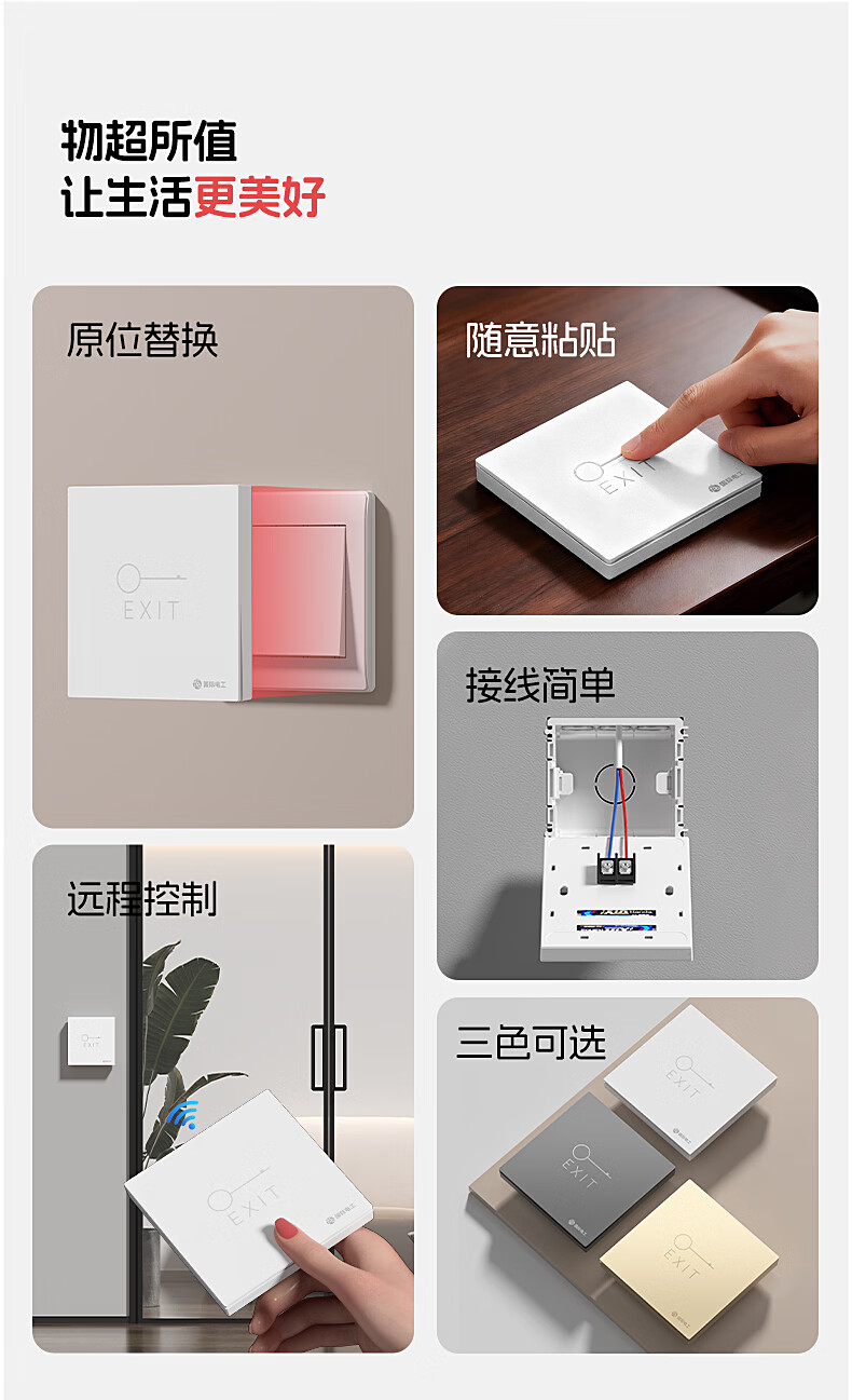 国际电工(FDD)单元门小区门禁无线遥控开关免布线220V远程智能双控随意贴面板 白色门禁暗装(1个主机开关 + 1个随意贴开关)