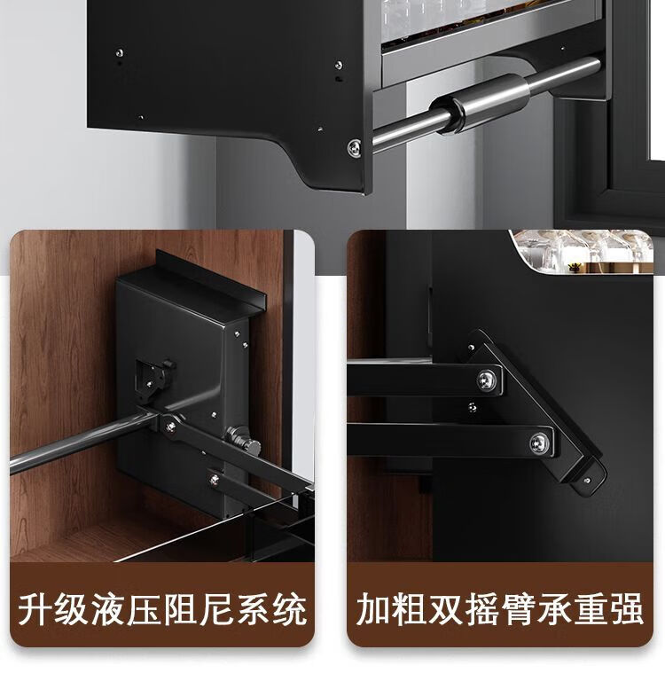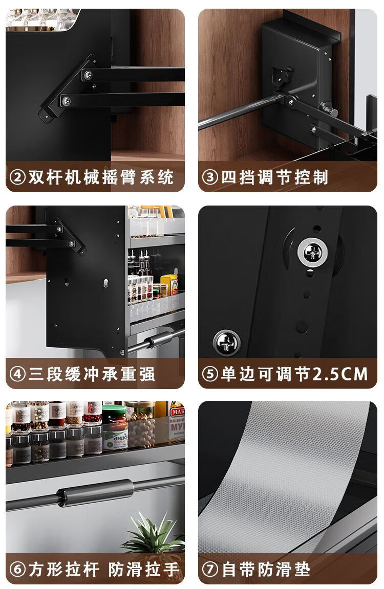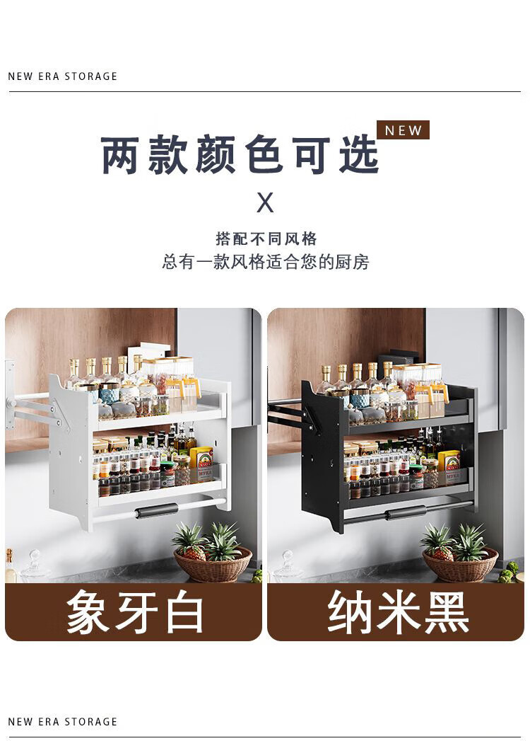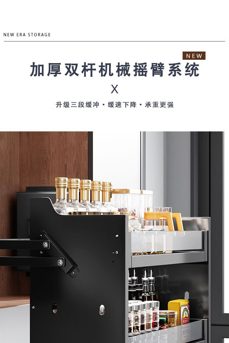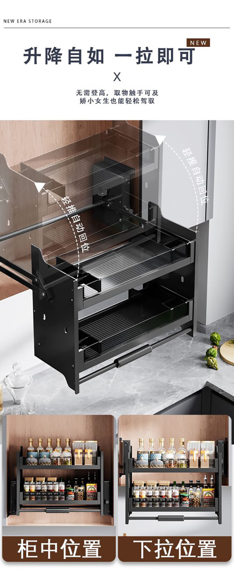 德米莫单层矮柜厨房吊柜拉篮铝合金下拉式手动调味篮多层置物架 【升级2.0双层400柜】钢化玻璃挡板款纳米黑