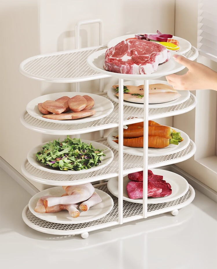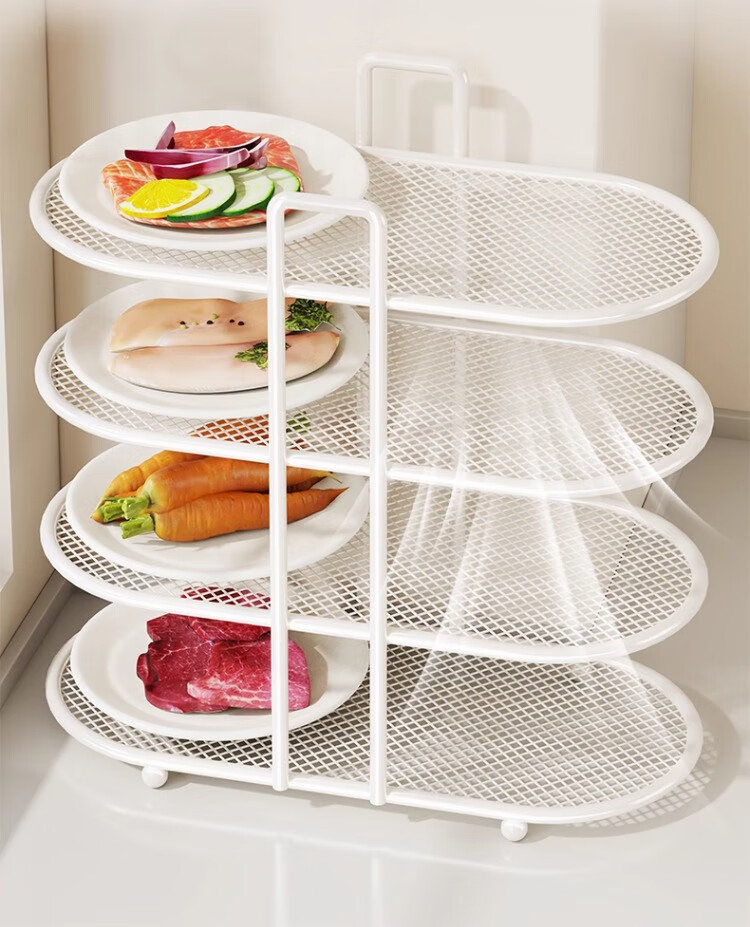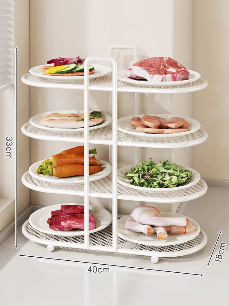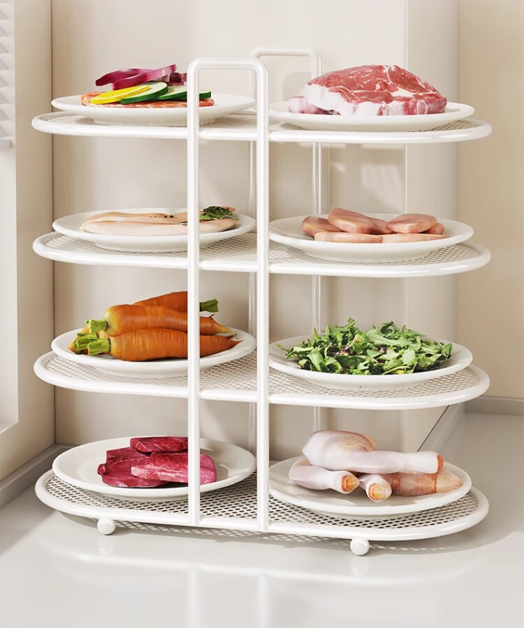尔思家厨房置物架备菜多功能配菜盘碗碟多层收纳神器台面食材放置架子 白色四层