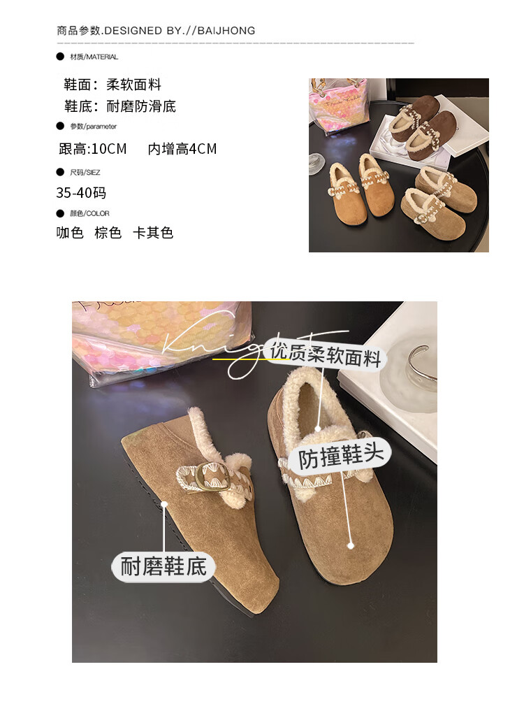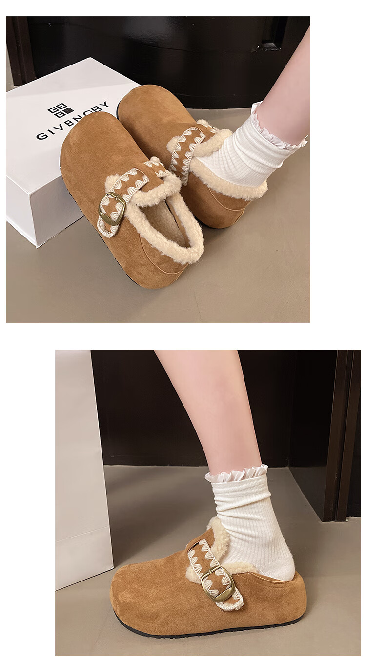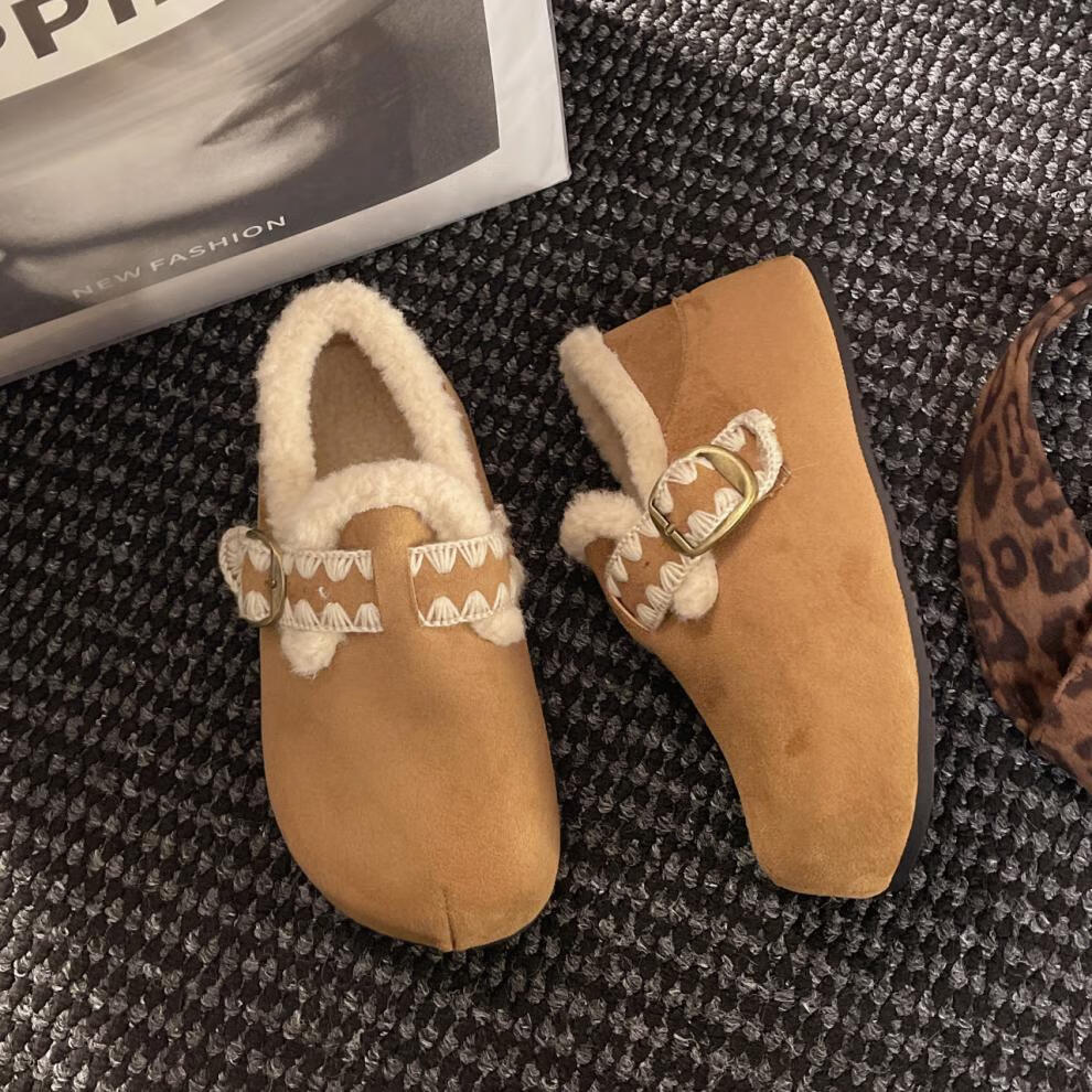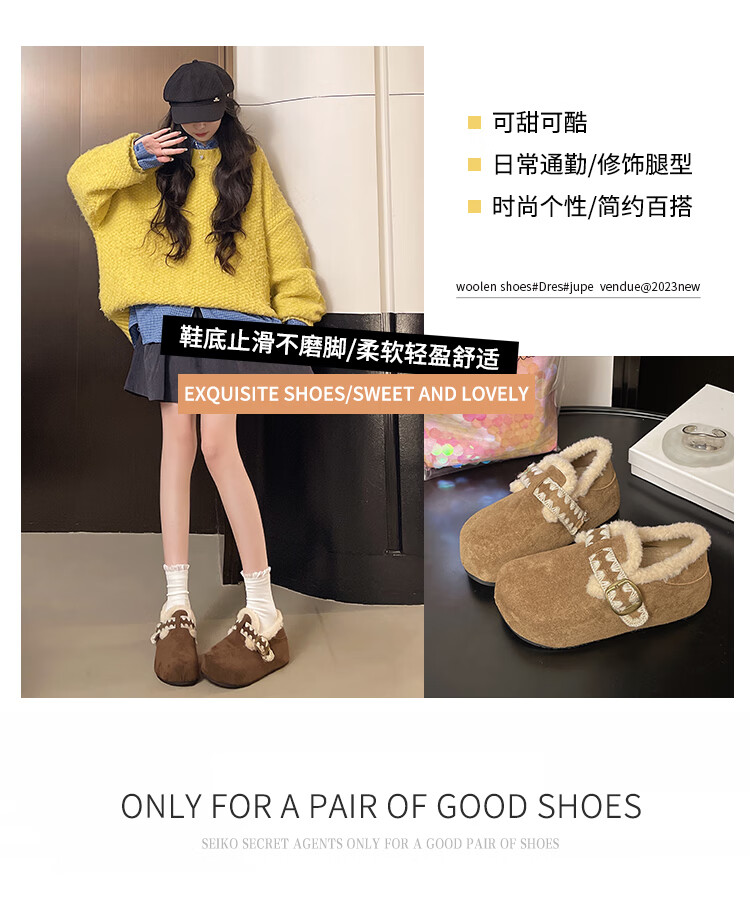 稻草人(MEXICAN)大码女鞋41到43勃肯鞋加绒厚底复古毛毛鞋2026新款冬保暖低帮棉鞋 驼色 35